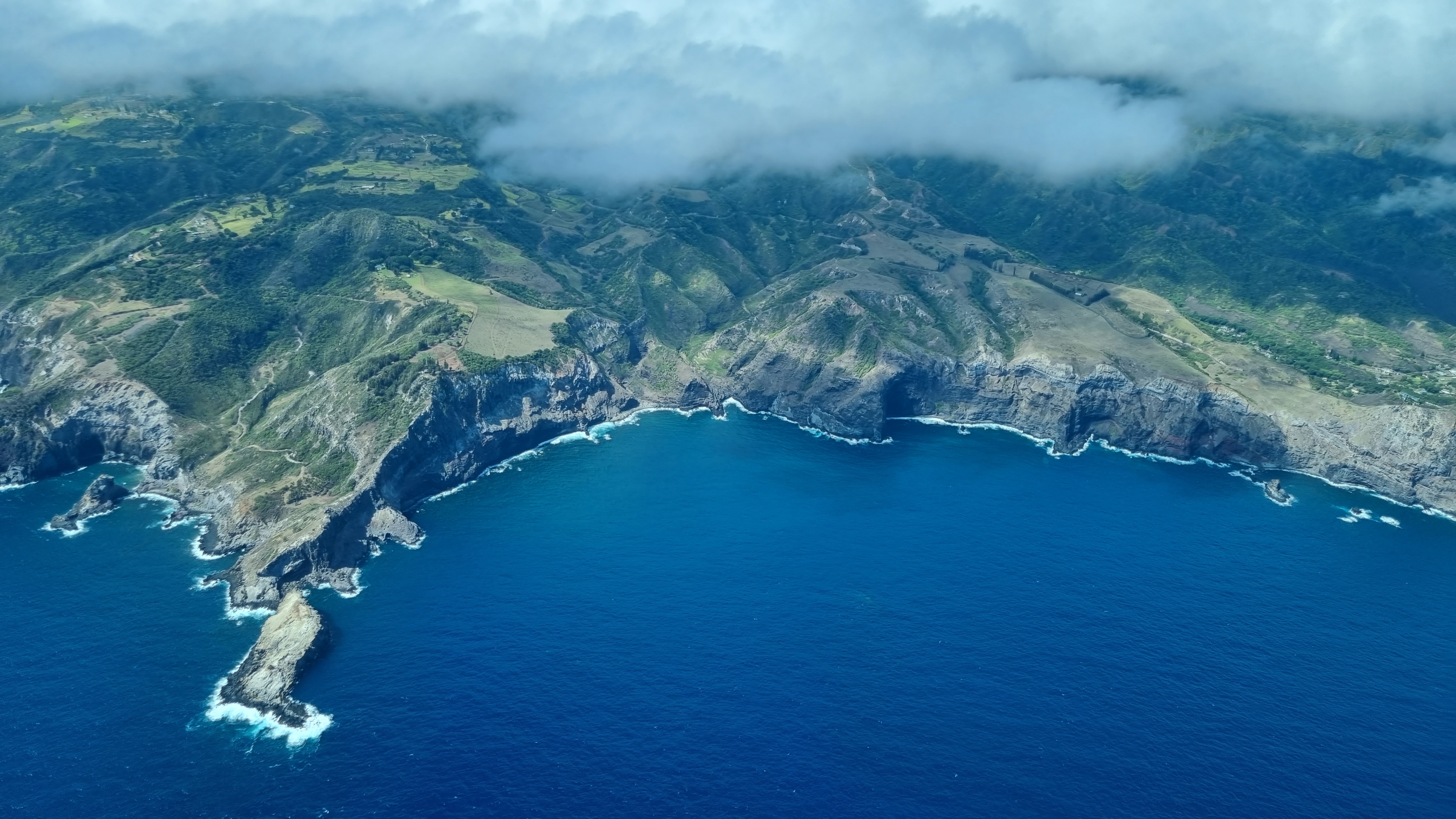 Das Bording am Commuter Airport von Maui fand 5 Minuten vor dem Abflug statt. Wir waren nur zu dritt in der 9‑sitzigen Maschine. Für die 20‑Sekunden-Sicherheitsbelehrung hat sich der Pilot nur kurz umgedreht und am Ende gefragt: „Any questions?“ Nach einem Shaka ging es gleich auf die Startpiste. Der Flug war für die kleine Maschine ruhig. Wir hatten mit der Nordküste von West-Maui und Molokai dann auch gleich etwas Sightseeing für das man ansonsten tief in die Tasche greifen muss. Die Klippen an der Nordküste von Molokai sollen die höchsten der Welt sein.