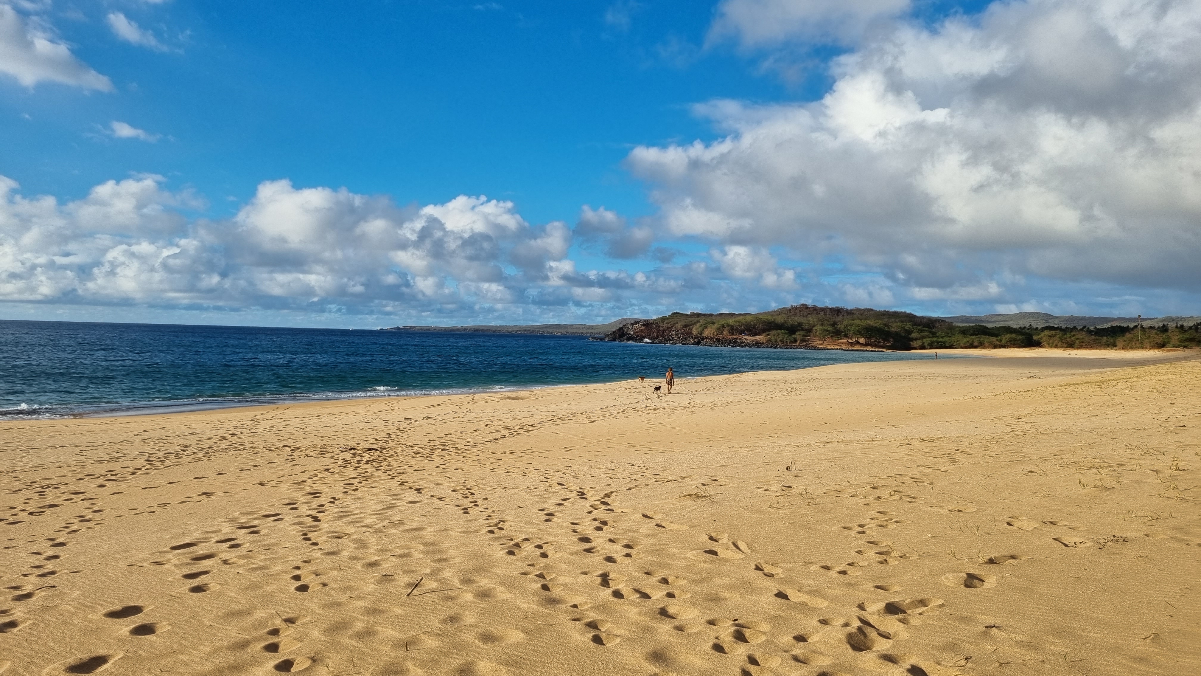 Die restliche Zeit bis zum Sonnenuntergang sahen wir uns den Westen von Molokai an. Wir besuchten insgesamt drei Beaches. Am letzten erreichbaren öffentlichen Strand waren wir auch baden und bewunderten im Rainbow State wieder einmal einen Regenbogen. Es ist sehr wenig Verkehr. Nur Wild Turkeys, ein Hirsch und ein paar Rehe überquerten die Straße. Die Geschäfte schließen hier schon um 18 Uhr. Zu erwähnen ist noch, dass wir auf der ganzen Insel noch keine Ampel entdeckt haben.