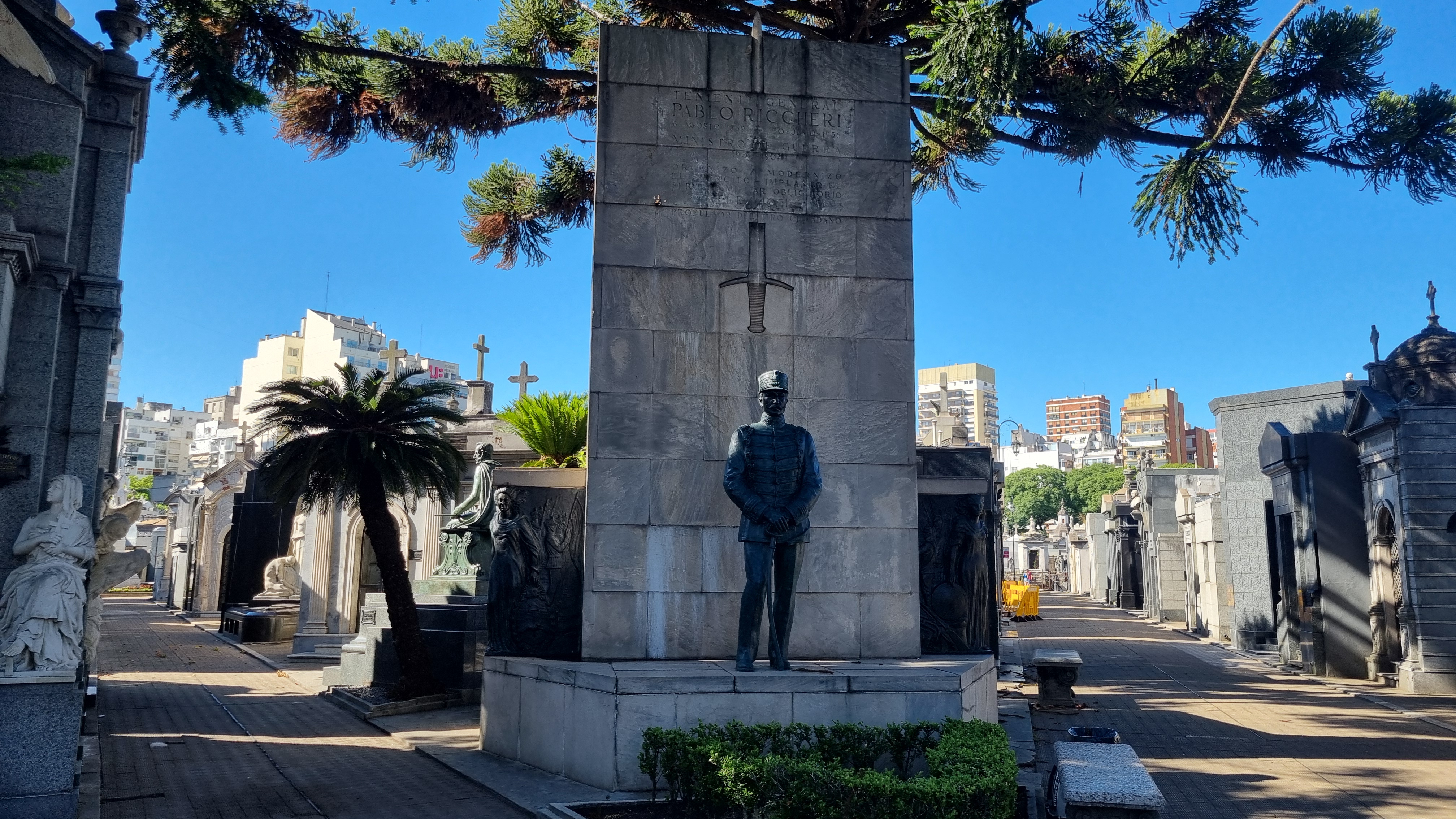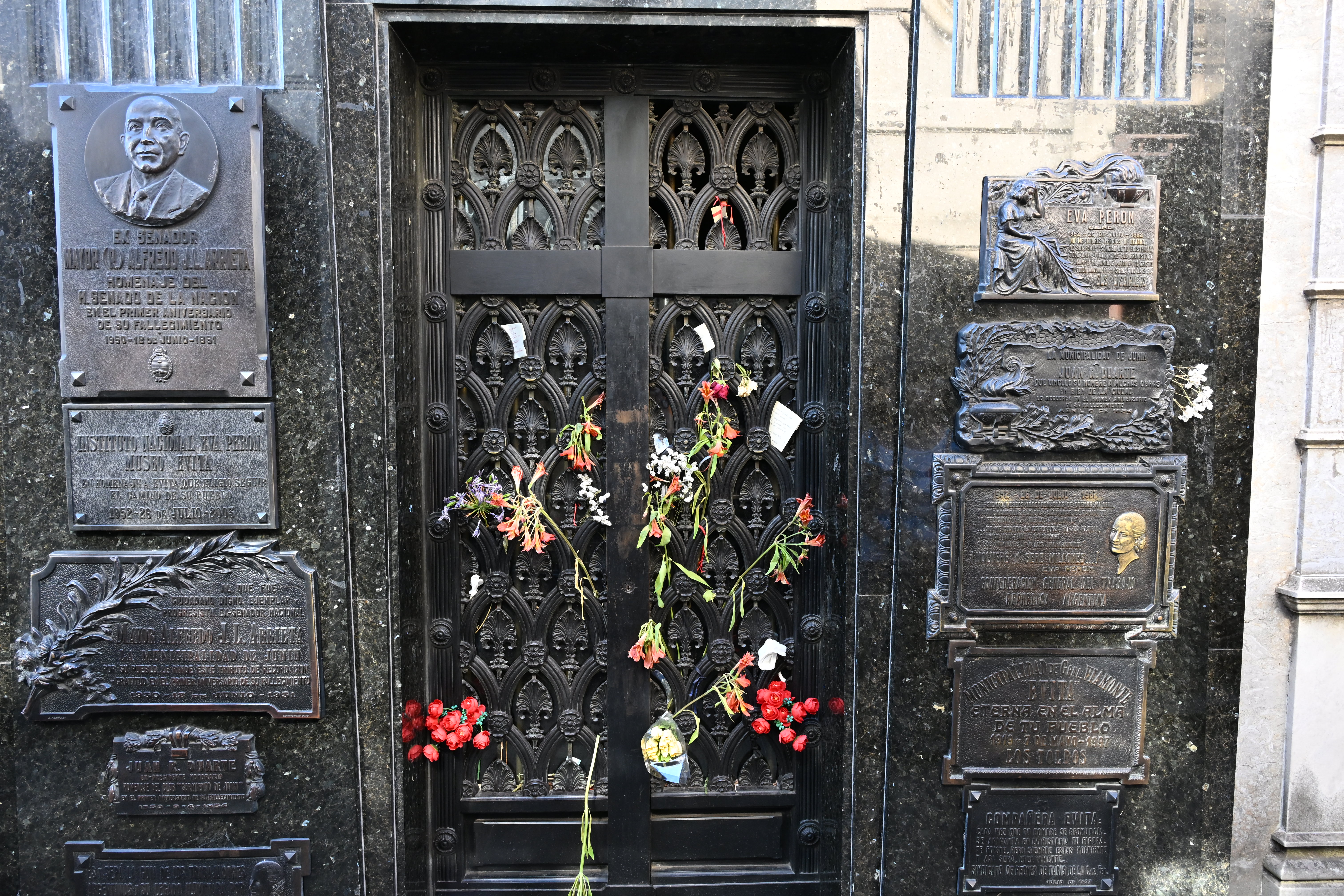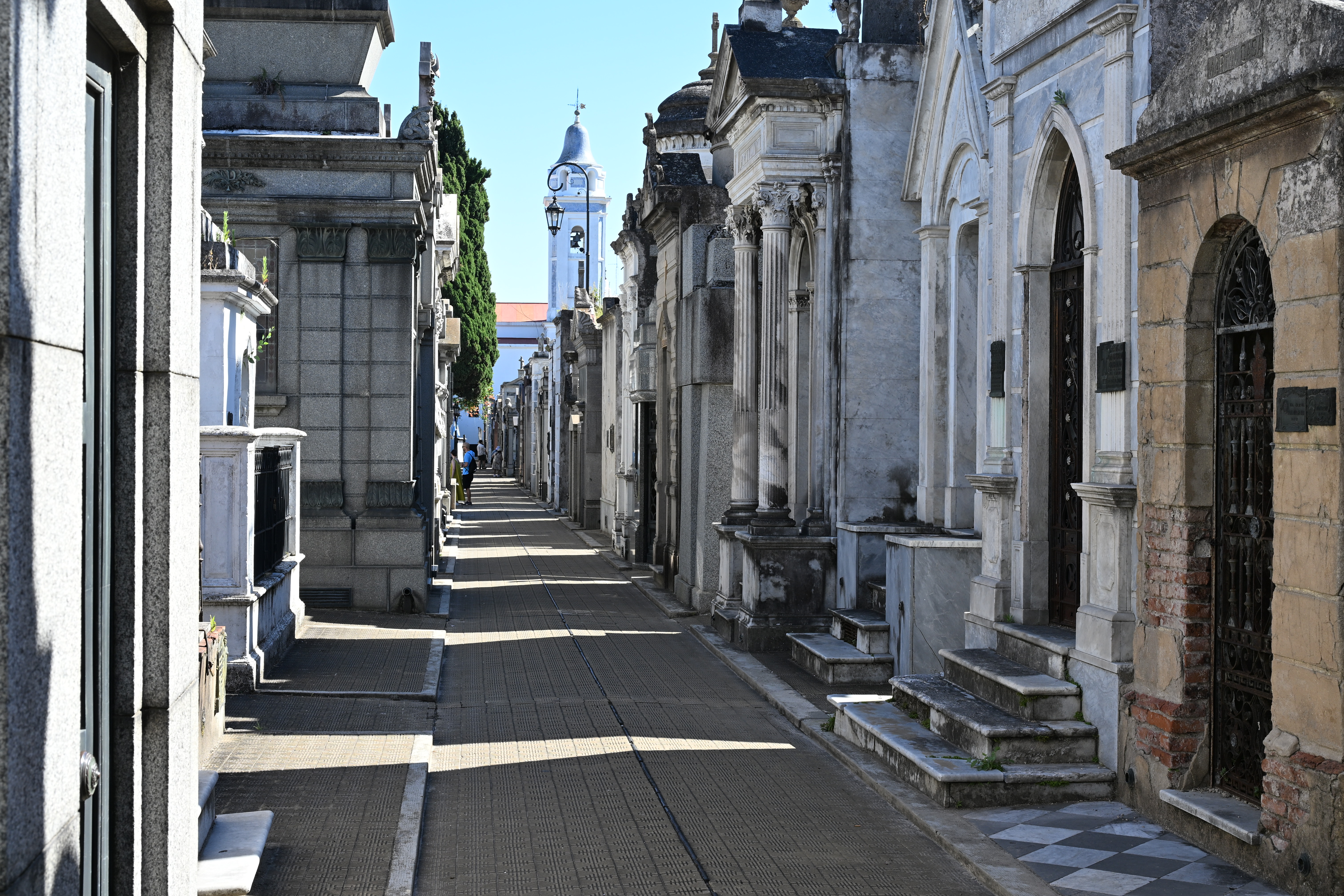 Unser Transfer zum Flughafen war für 11:15 geplant, d.h. wir hatten noch genug Zeit um zum Friedhof „Cementerio de la Recoleta“ zu spazieren. Wir haben mehrmals Hundesitter getroffen, die jeweils mit bis zu 10 Hunden unterwegs waren. Da wir zu früh dran waren, nahmen wir einen Espresso (nicht ganz in heimischer Qualität) im „La Biela Recoleta“. Danach spazierten wir durch den Friedhof, der ausnahmsweise frei zugänglich war. Selbstverständlich besuchten wir auch das Mausoleum von Evita Peron.