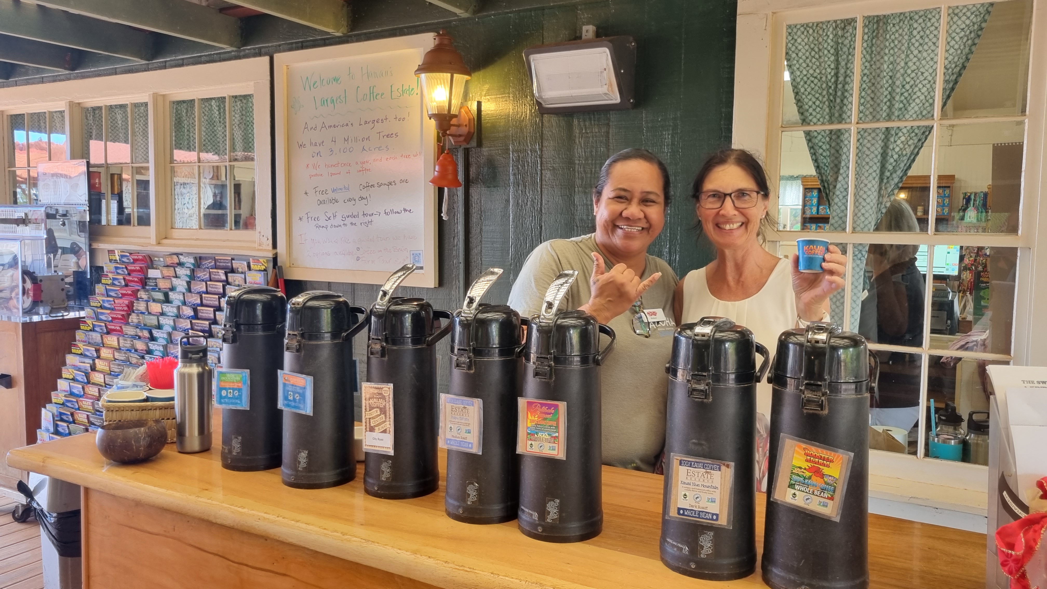 Einen kleinen Lunch nahmen wir im Kuuleis Gourmet mit California Roles und Karotten-Kokosnus-Suppe. Da noch etwas Zeit bis zum Check-in in unserem nächsten Quartier war, besuchten wir auch noch die Kaua´i Coffee Company. Wir verkosteten sechs verschiedenen Röstungen – alle 100% Arabica. Wir kauften die frische leichte City Roast, die nur am Mittwochmorgen geröstet wird ($30 plus Steuern für 10oz). Danach ging sich noch ein kurzer Abstecher zum Salt Pond Beach Park aus, wo man neben den sehr kleinen Salinen auch nett Baden kann.