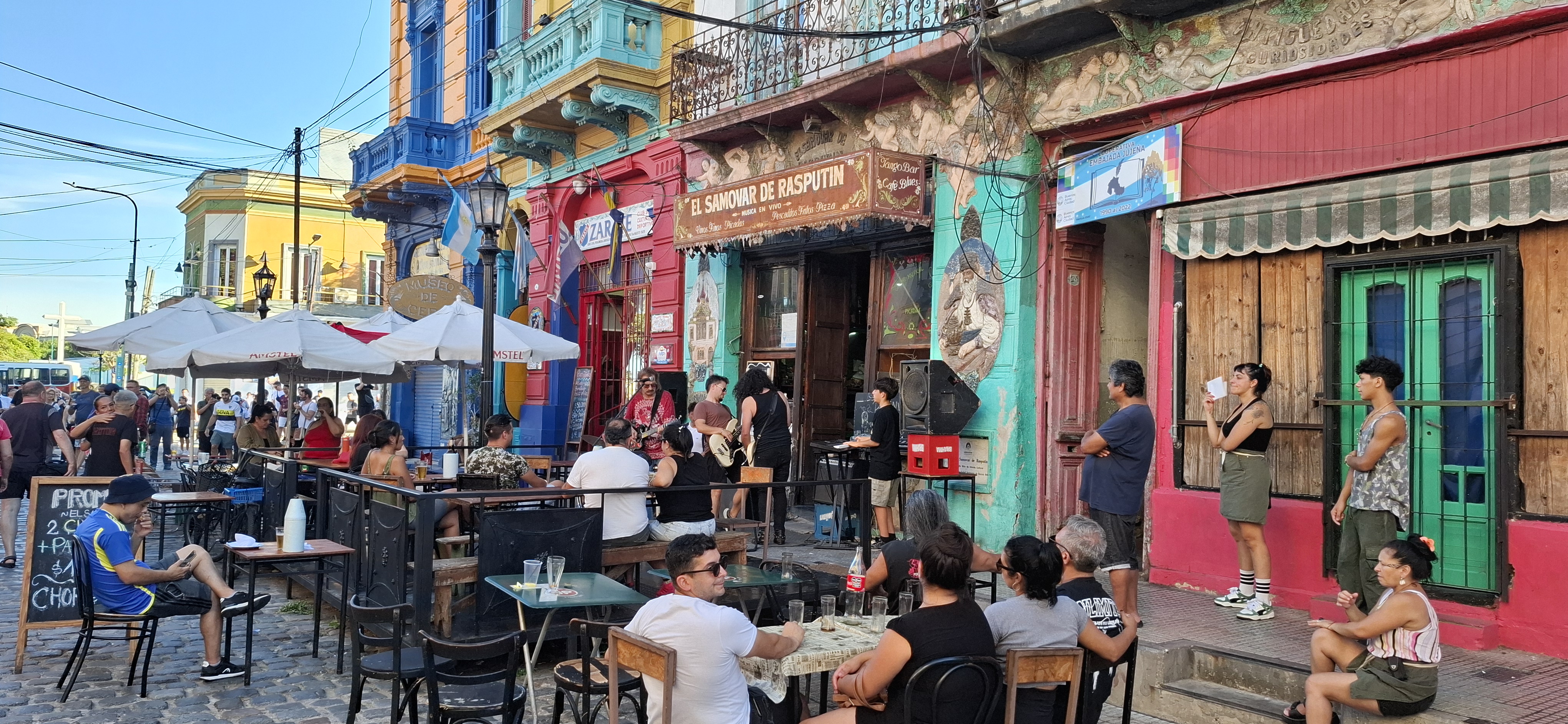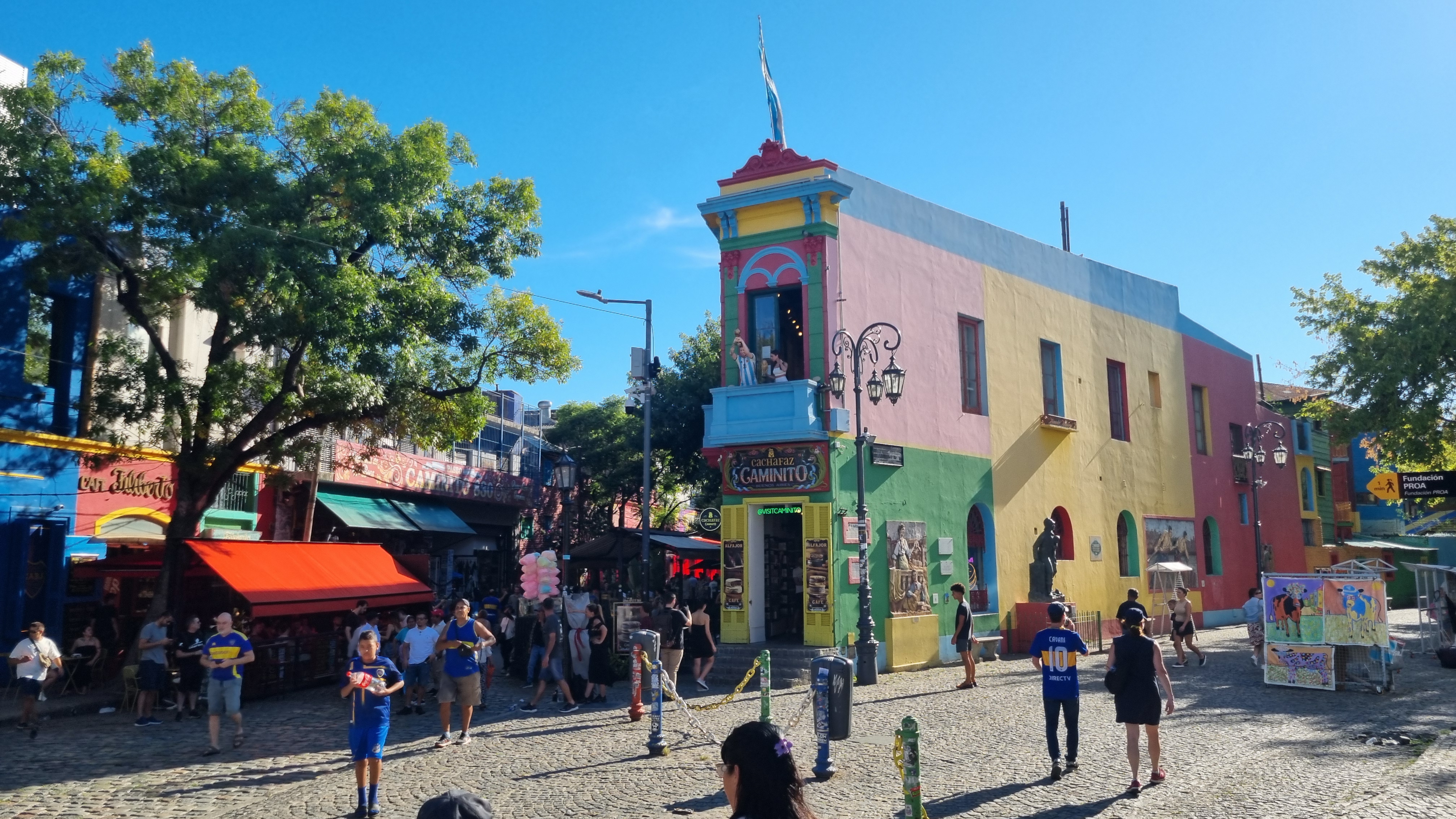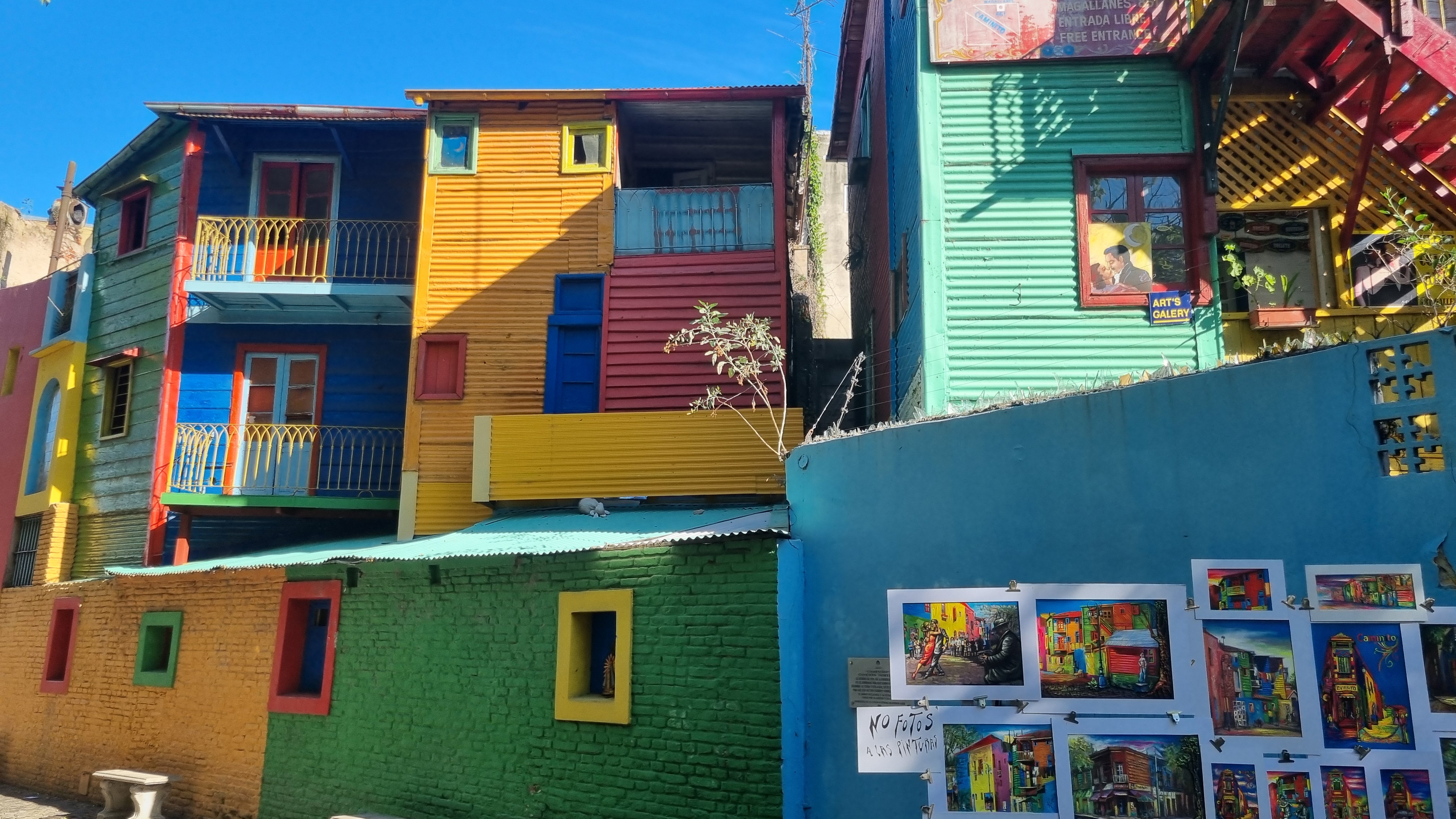 Da wir noch fast 3 Stunden Zeit hatten, besuchten wir das touristische Zentrum La Boca. In den letzten Jahren hat man in ein paar wenigen Blocks viele Wellblechfassaden bunt bemalt und Restaurants, Bars sowie Tangoshows sind mittlerweile an allen Ecken präsent.