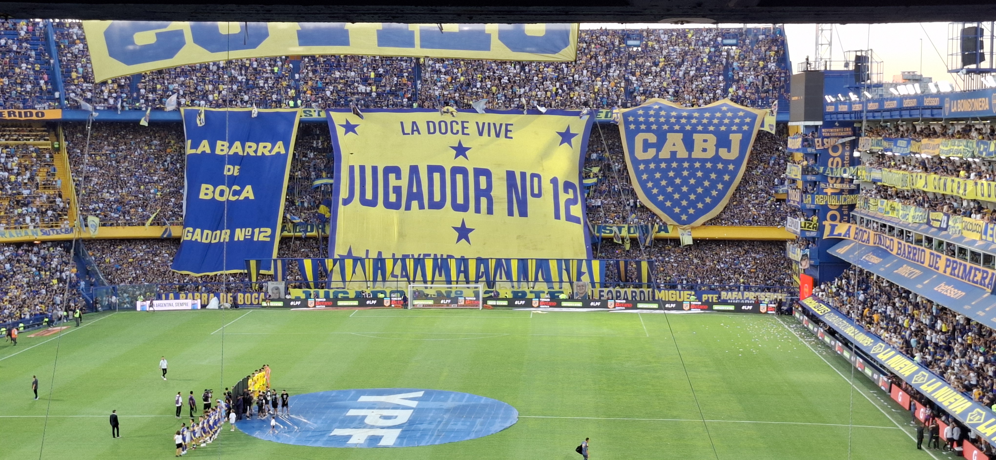 Nach dem wir eine Stunde durch La Boca spaziert waren und einen Drink genommen hatten, ging es ins Stadion. Es ist fast unbegreiflich, dass ein 50.000 Besucher-Stadion 3 Gehminuten vom Touristenzentrum entfernt ist. Als wir unseren Sektor erreicht hatten, mussten wir feststellen, dass wir im Stehplatzzentrum gelandet waren. Als Sturmfans hat das aber gepasst. Wir waren in der Südkurve und Boca Juniors ist der Verein der Arbeiter und kleinen Leute. River Plate hat seinen Ursprung auch in La Boca, ist aber irgendwann ausgezogen und hat sich dem Großbürgertum zugewandt.