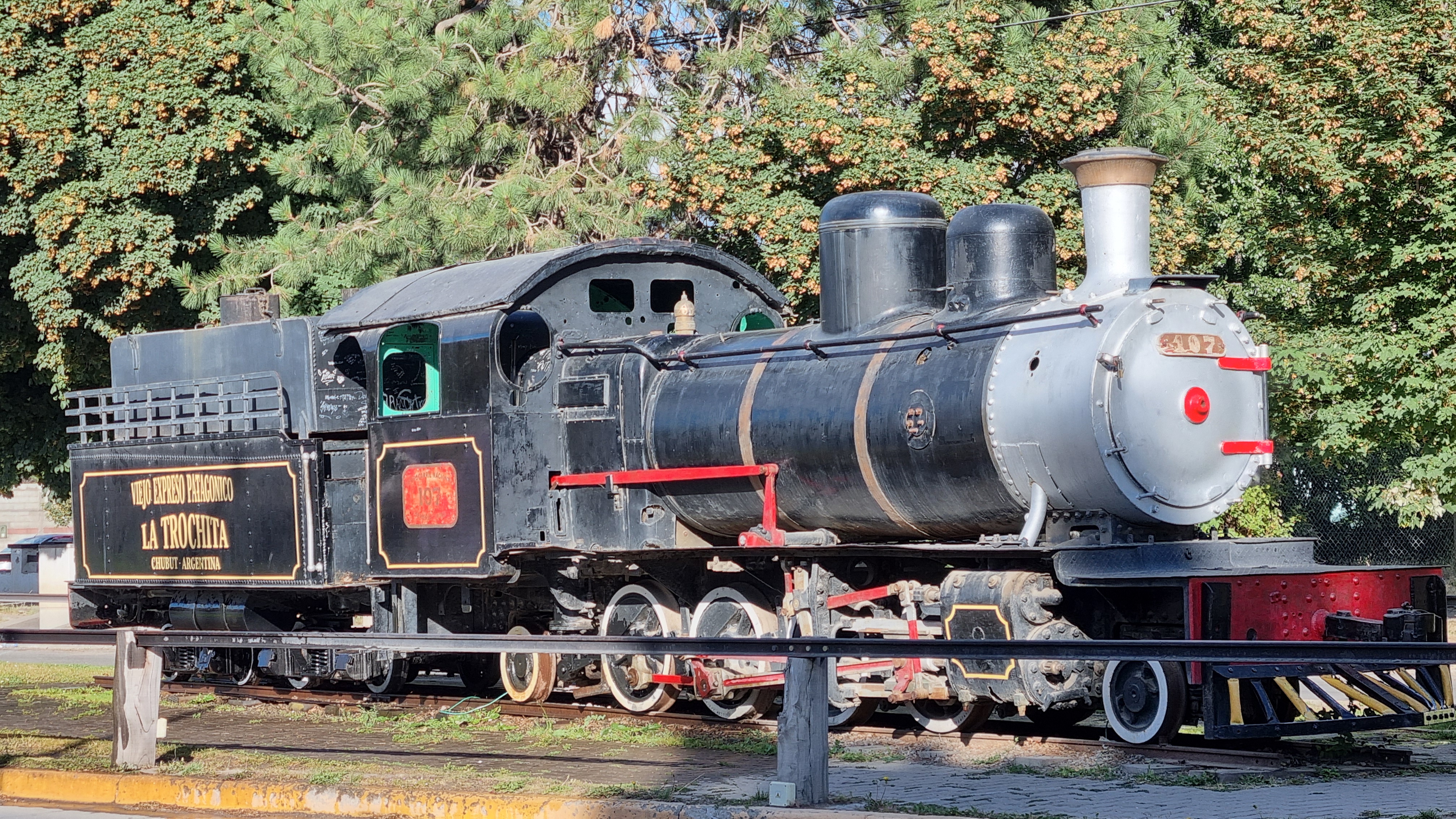 Bei der Ausfahrt von Esquel sahen wir noch eine alte Lokomotive der berühmten Schmalspureisenbahn von Esquel „La Trochita“. Die nächsten 100 Kilometer waren wieder einmal argentinische Steppe auf einer Hochebene in bis zu 1000 m Höhe ohne Orte oder Häuser, dieses Mal auch ohne Tiere.