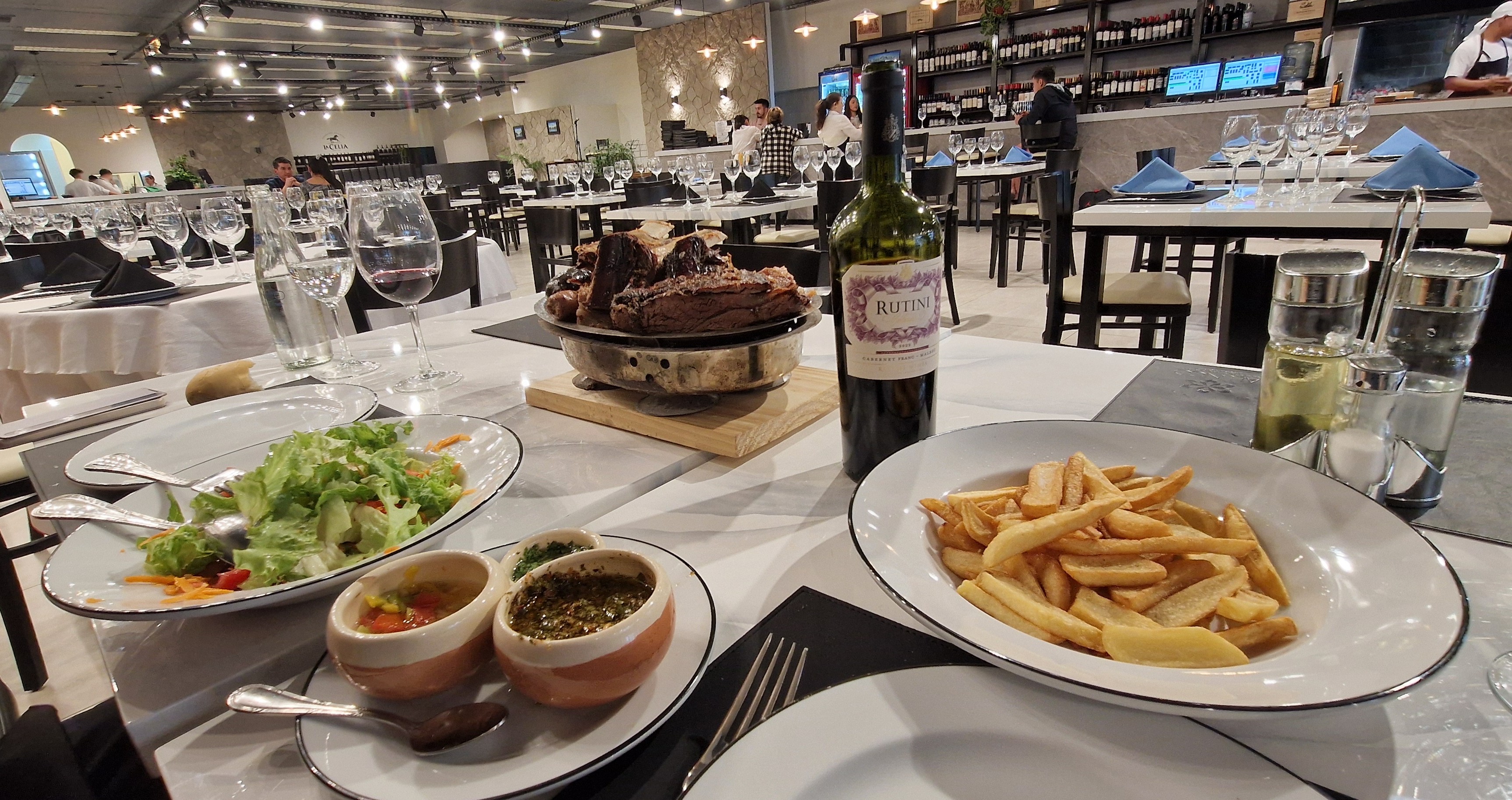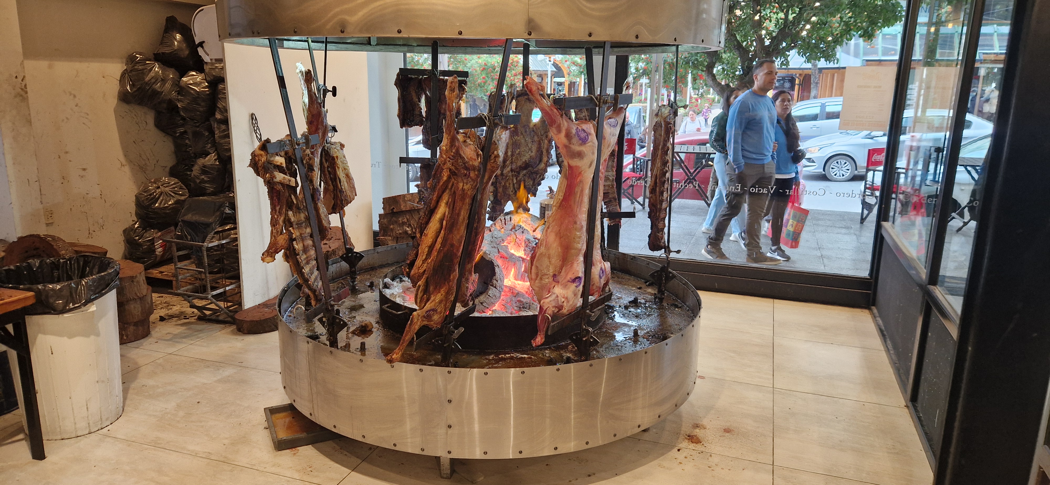 Als nächstes suchten wir nach einem Lokal für unser Abendessen. Ein gut Bewertetes war wieder einmal nicht auffindbar. Wir entschieden uns dann für das Restaurante del Fuego und bestellten eine Asadoplatte. Die 6 verschiedenen Fleischstücke (Brüstel, Ripperl vom Rind, Lamm, Rindfleisch, Schweins- und Blutwurst) waren von sehr unterschiedlicher Qualität. Beim Lamm wusste der Kellner sofort, was das Problem war. Frisch zubereitet auf der Estancia ist eine andere Liga. Die Blutwurst mit Nelken und Zimt kennt man aus Spanien. In Teneriffa ergänzt man sie noch durch Walnüsse. Vom servierten Fleisch aßen wir höchstens die Hälfte und wir vermieden weitgehend das gute (fette) Zeug.