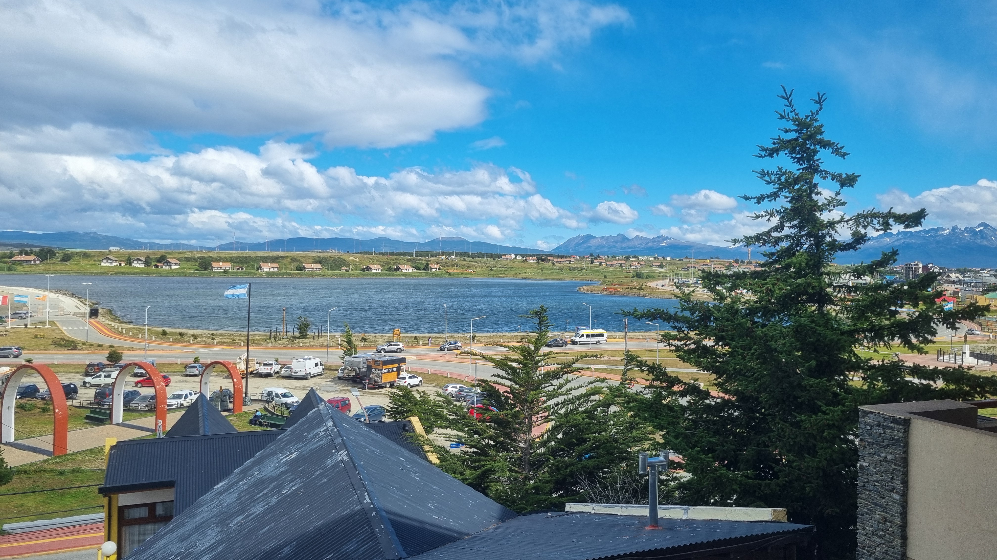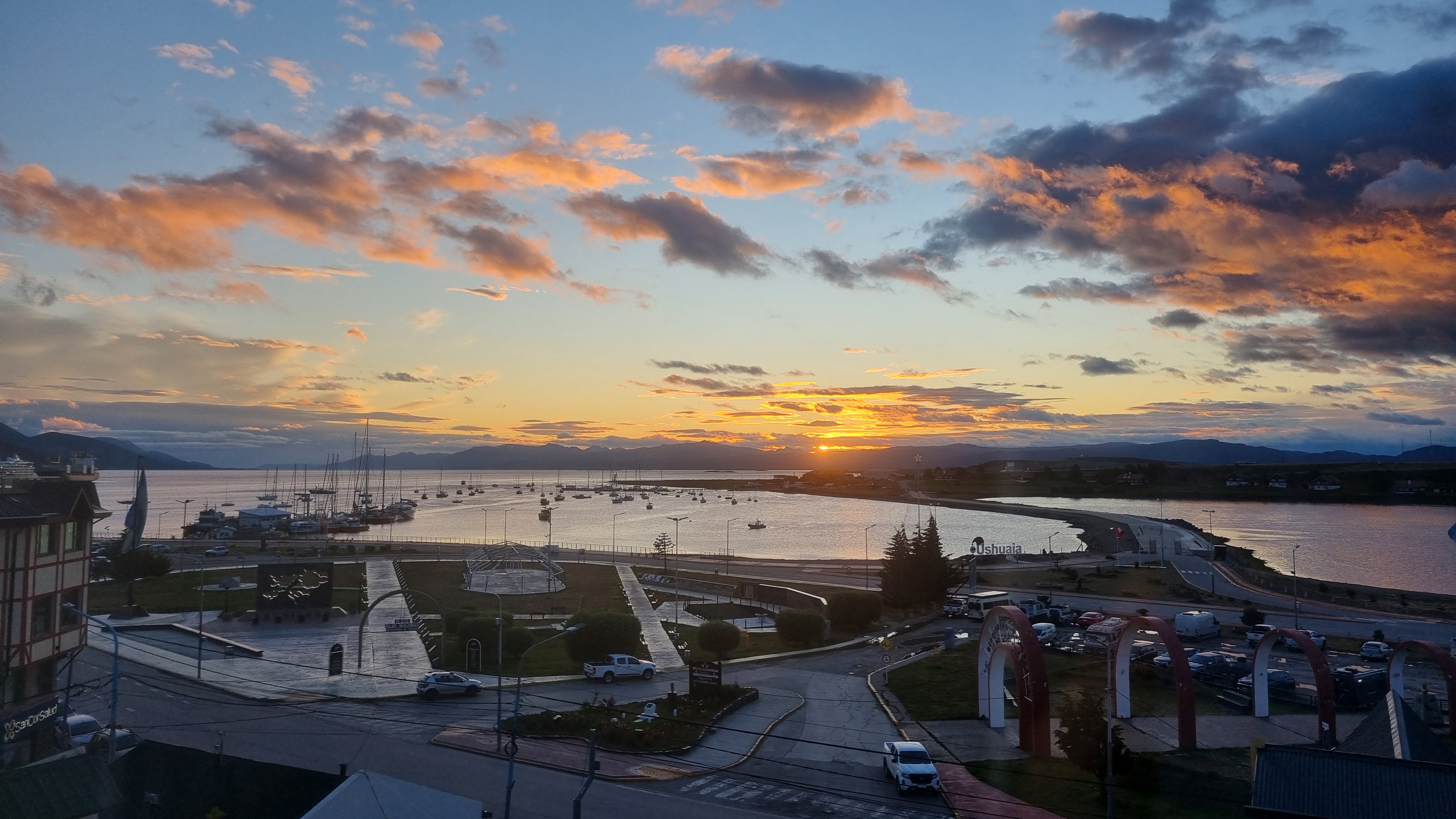 Früh wach konnte Helga den Sonnenaufgang (5:03 Uhr) mit Blick aus dem Hotelfenster festhalten. Um 8:25 waren wir bei „Canoeros Catamaranes“, um die gebuchte Halbtagesbootsfototour auf dem Beagle Canal anzutreten. Wieder mussten wir zum Checkin Schlange stehen, um die Tickets zu erhalten.
