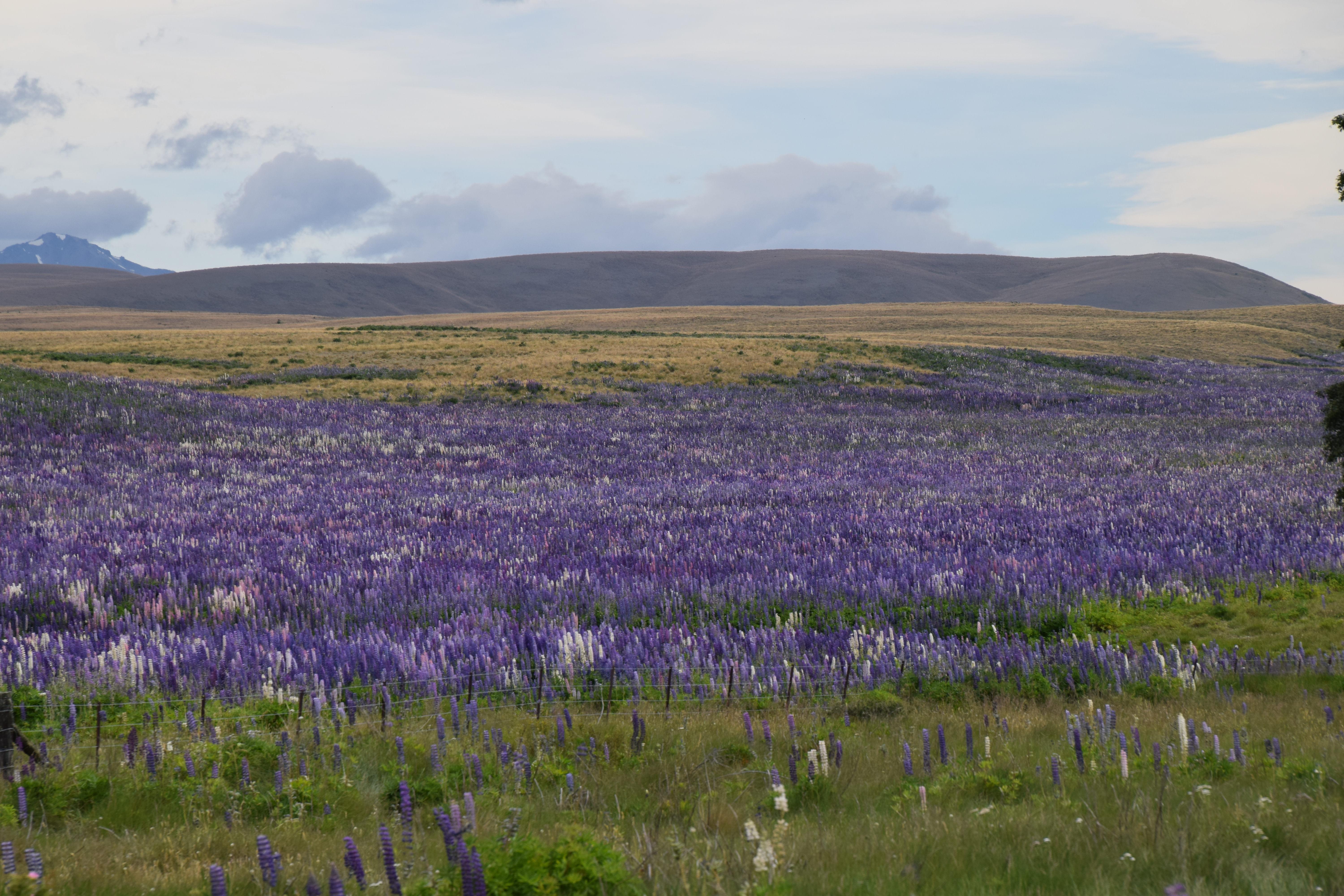 Am heutigen Tag ging es von Twizel vorbei am Lake Tekapo bis Geraldine und dann über die Inland Scenic Road nach Christchurch. Zumeist ging die Straße gerade dahin durch einige Lupinen, Felder und Weiden.