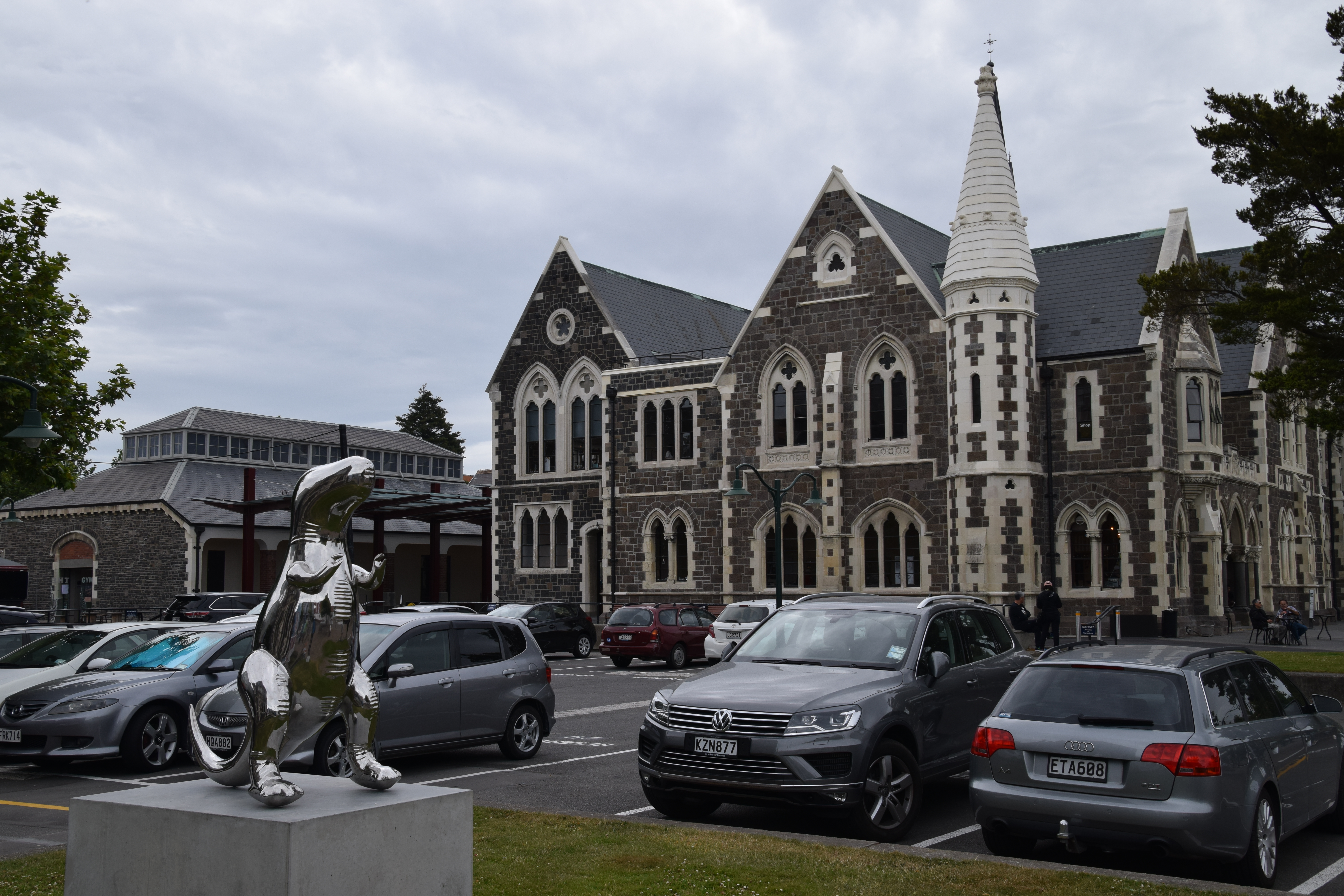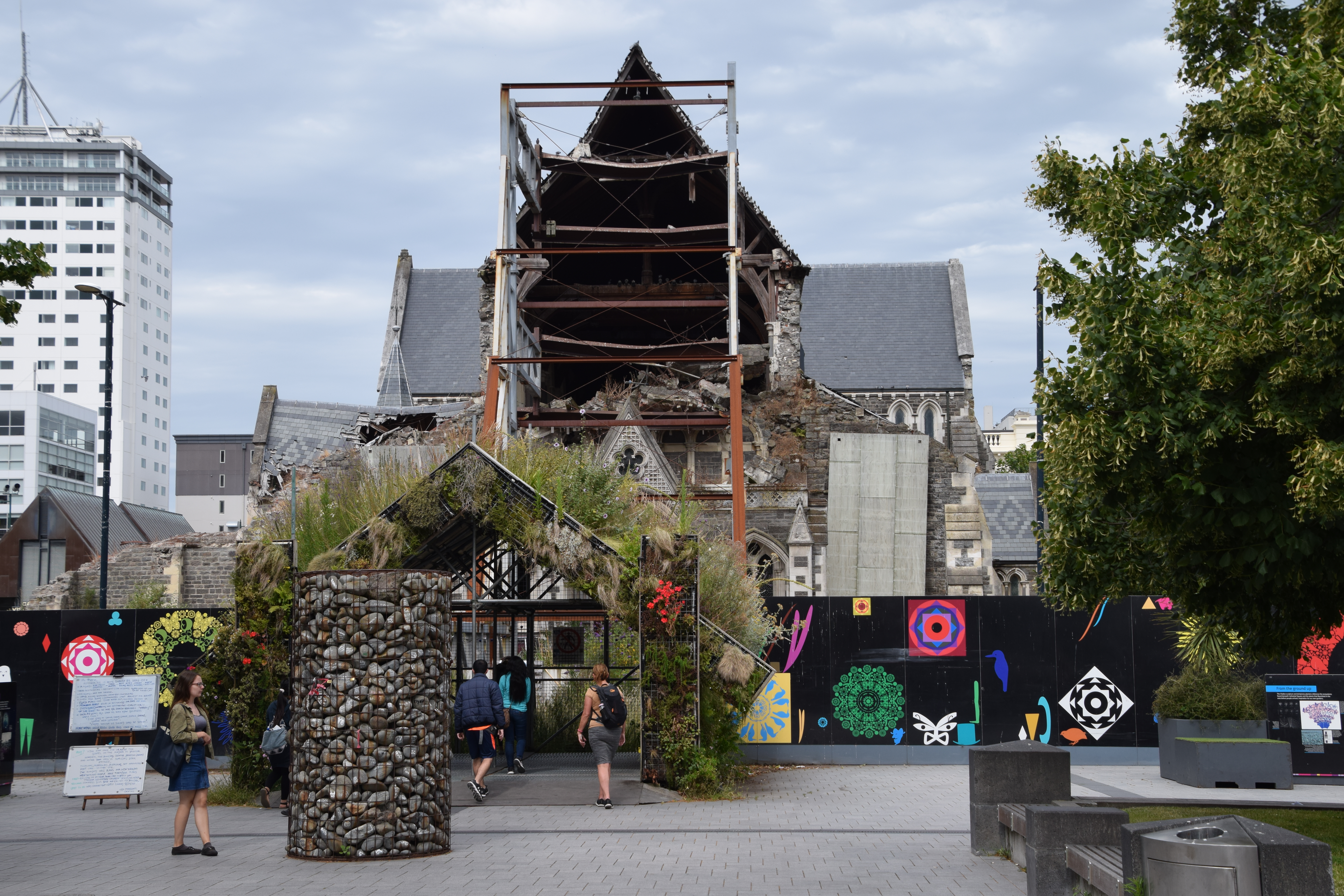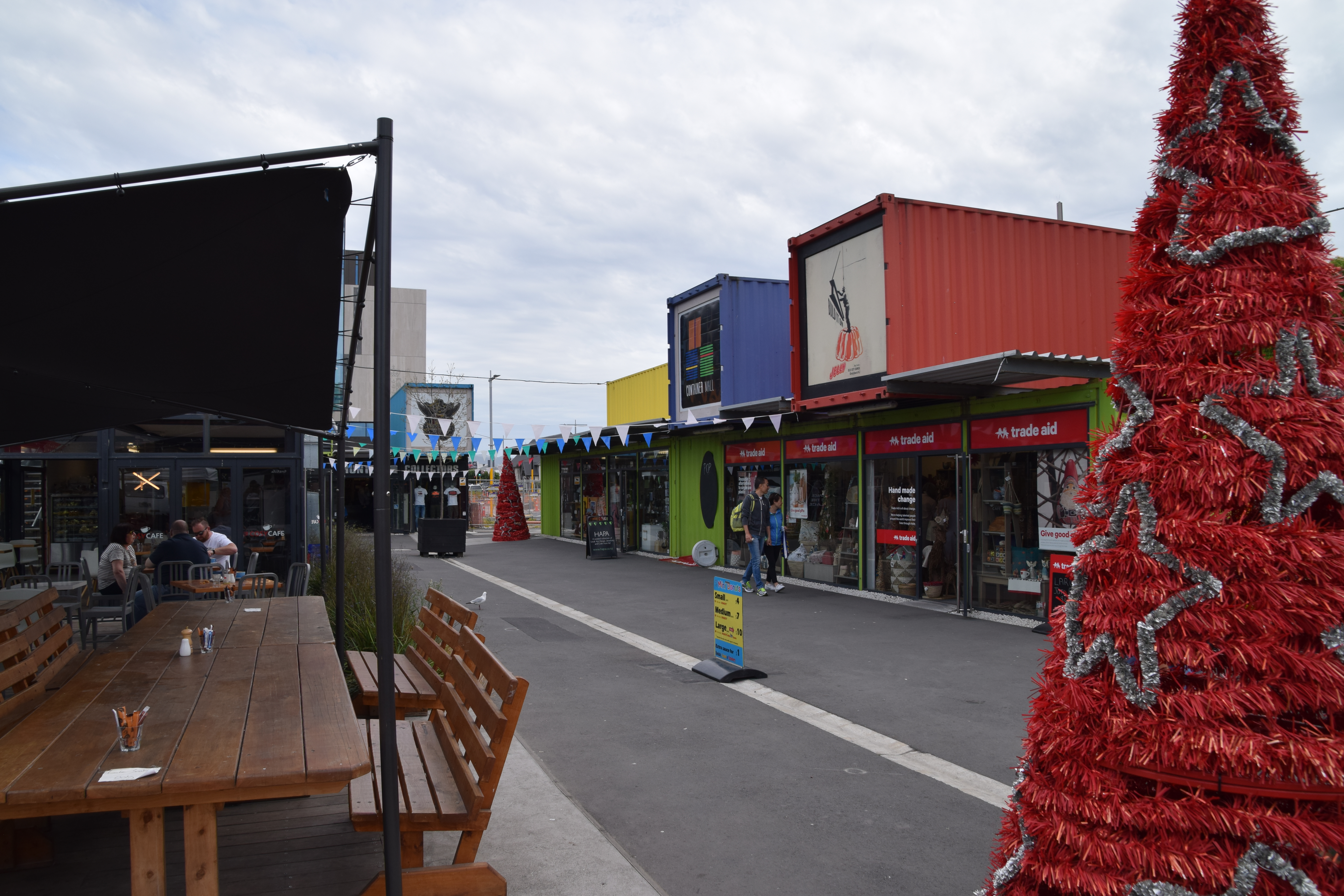 In Christchurch gingen wir das Zentrum ab, wo es wirklich noch viele Baustellen nach dem Erdbeben 2011 gibt. Man sieht zwar schon viele neu gepflasterte Straßen und riesige neu angelegte Plätze sowie Bauten, aber auch noch viele Reste von eingestürzten Häusern und Freiflächen, die noch immer als Parkplätze dienen. Die großen und vor allem sehr rasch umgesetzten Anstrengungen im Wiederaufbau erkennt man an der Re:Start Mall nahe der Bridge of Rememberance, in der die einzelnen Geschäfte in Schiffscontainern untergebracht sind.
