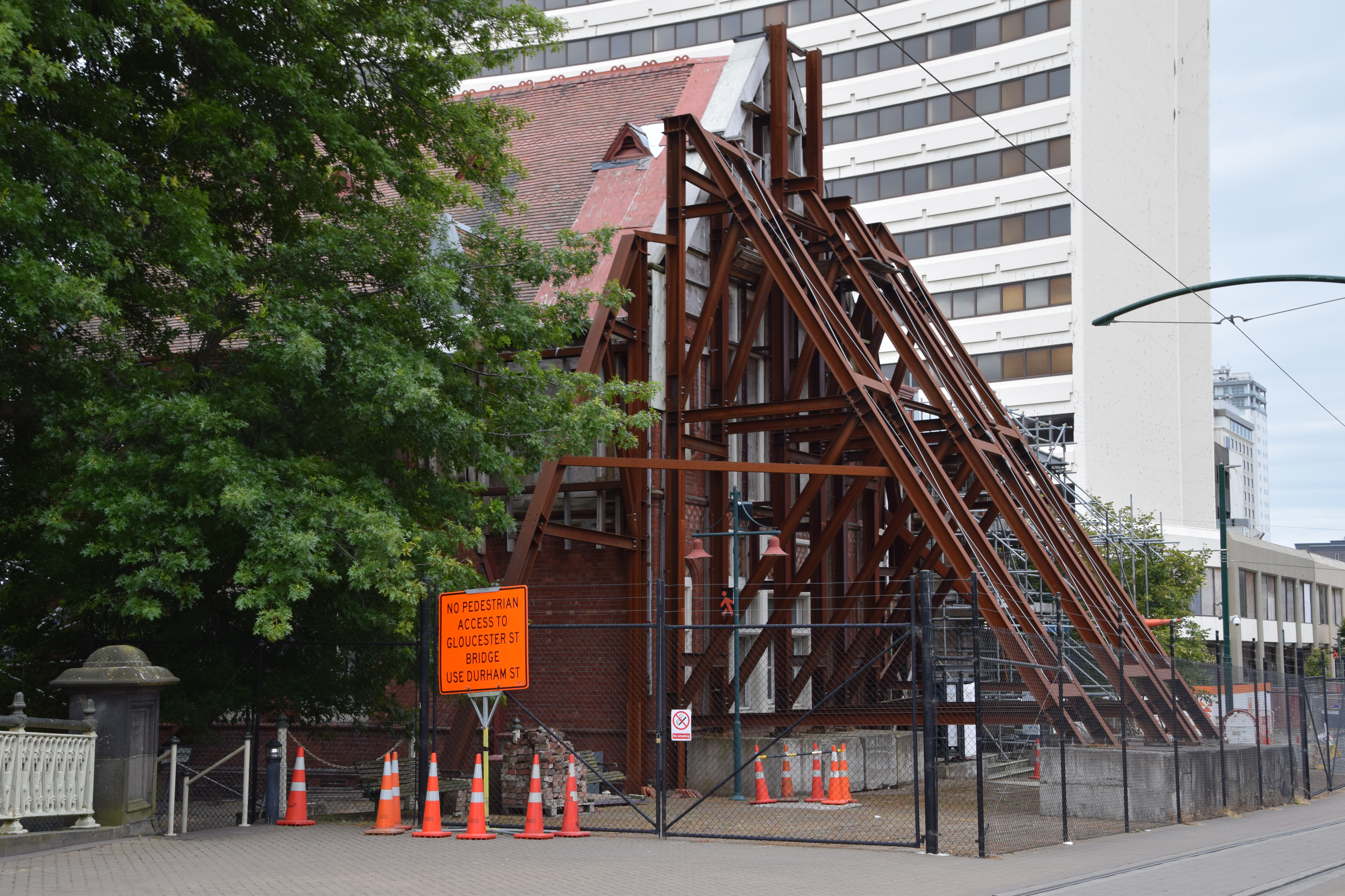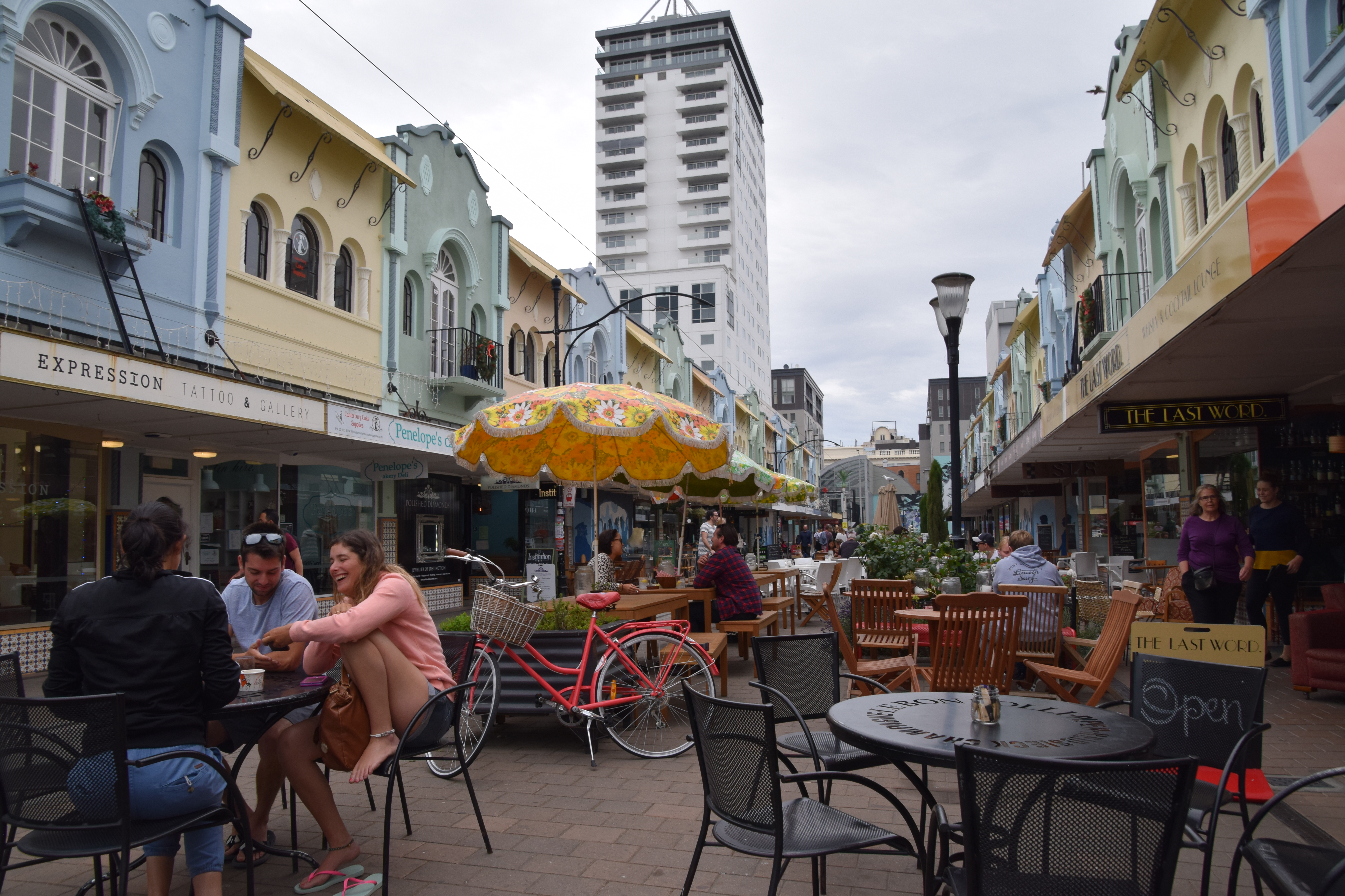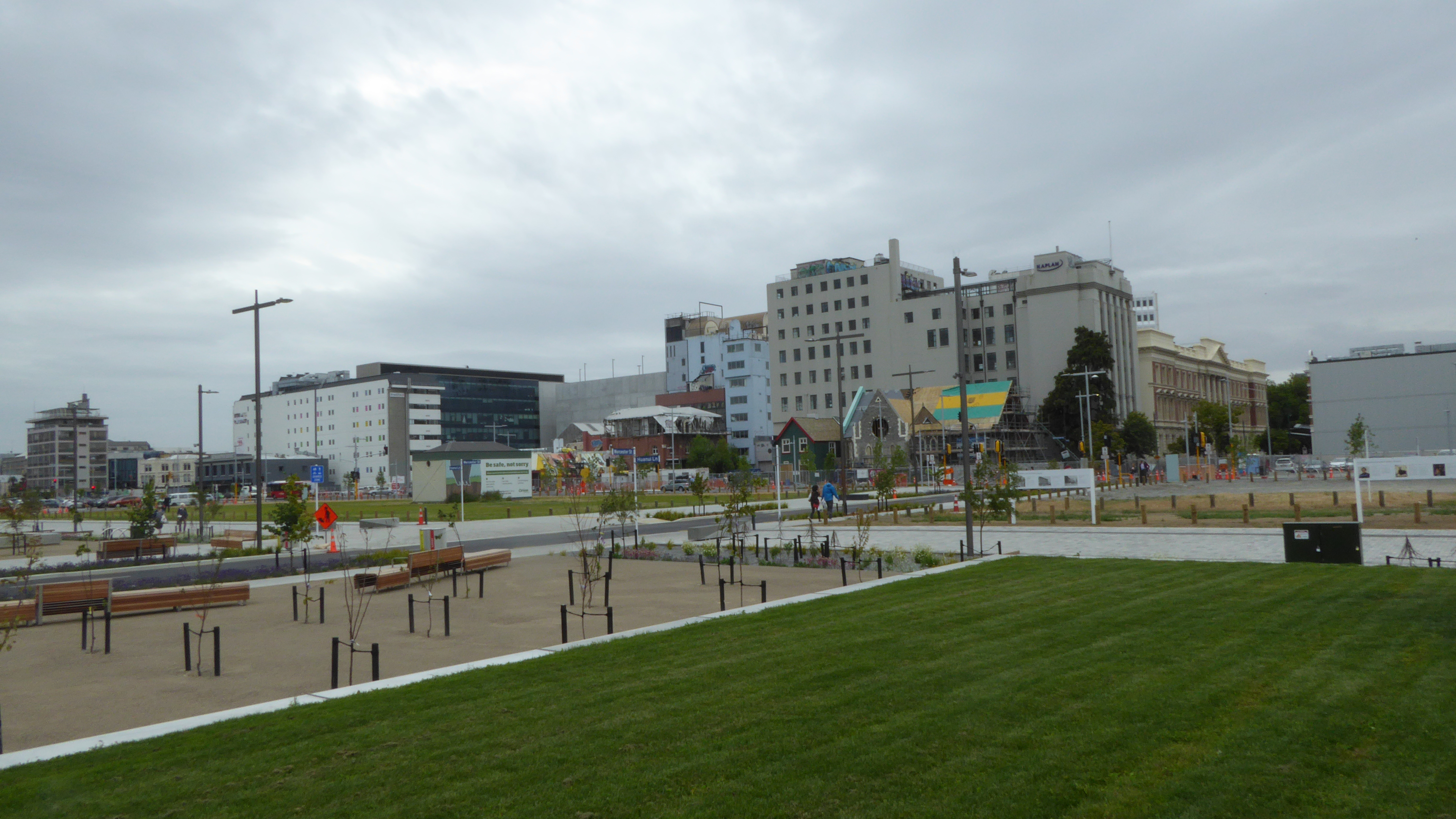 In Christchurch gingen wir das Zentrum ab, wo es wirklich noch viele Baustellen nach dem Erdbeben 2011 gibt. Man sieht zwar schon viele neu gepflasterte Straßen und riesige neu angelegte Plätze sowie Bauten, aber auch noch viele Reste von eingestürzten Häusern und Freiflächen, die noch immer als Parkplätze dienen. Die großen und vor allem sehr rasch umgesetzten Anstrengungen im Wiederaufbau erkennt man an der Re:Start Mall nahe der Bridge of Rememberance, in der die einzelnen Geschäfte in Schiffscontainern untergebracht sind.