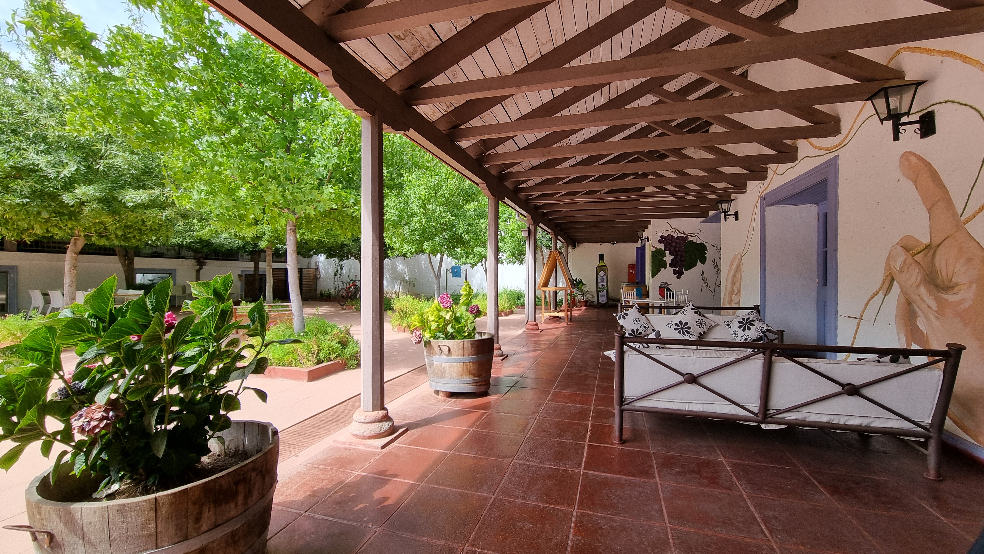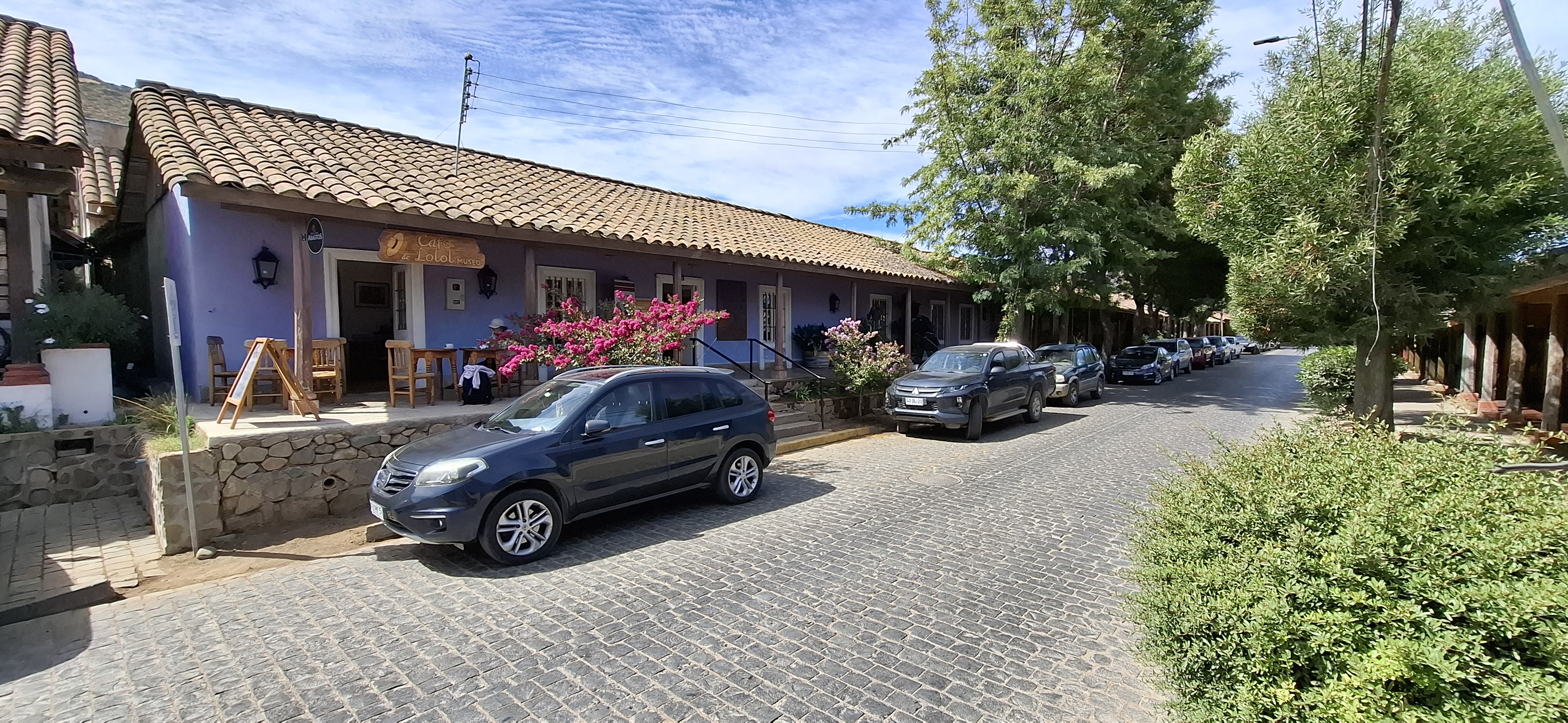 Das Frühstück wird hier serviert. Der angebotene Wassermelonensaft wurde für Stefan sofort gegen einen Erdbeerdrink getauscht. Nach dem Frühstück besuchten wir den zentralen Ort Santa Cruz. Da aber wenig Interessantes zu erkennen war, ging es ohne Stop nach Lolol weiter. Lolol liegt ebenfalls im Colchagua Tal und wird wegen seiner Innenstadt im Kolonialstil gepriesen. Die „Innenstadt“ besteht aus 2 Straßen zu jeweils 100m. Das Ambiente ist recht nett.