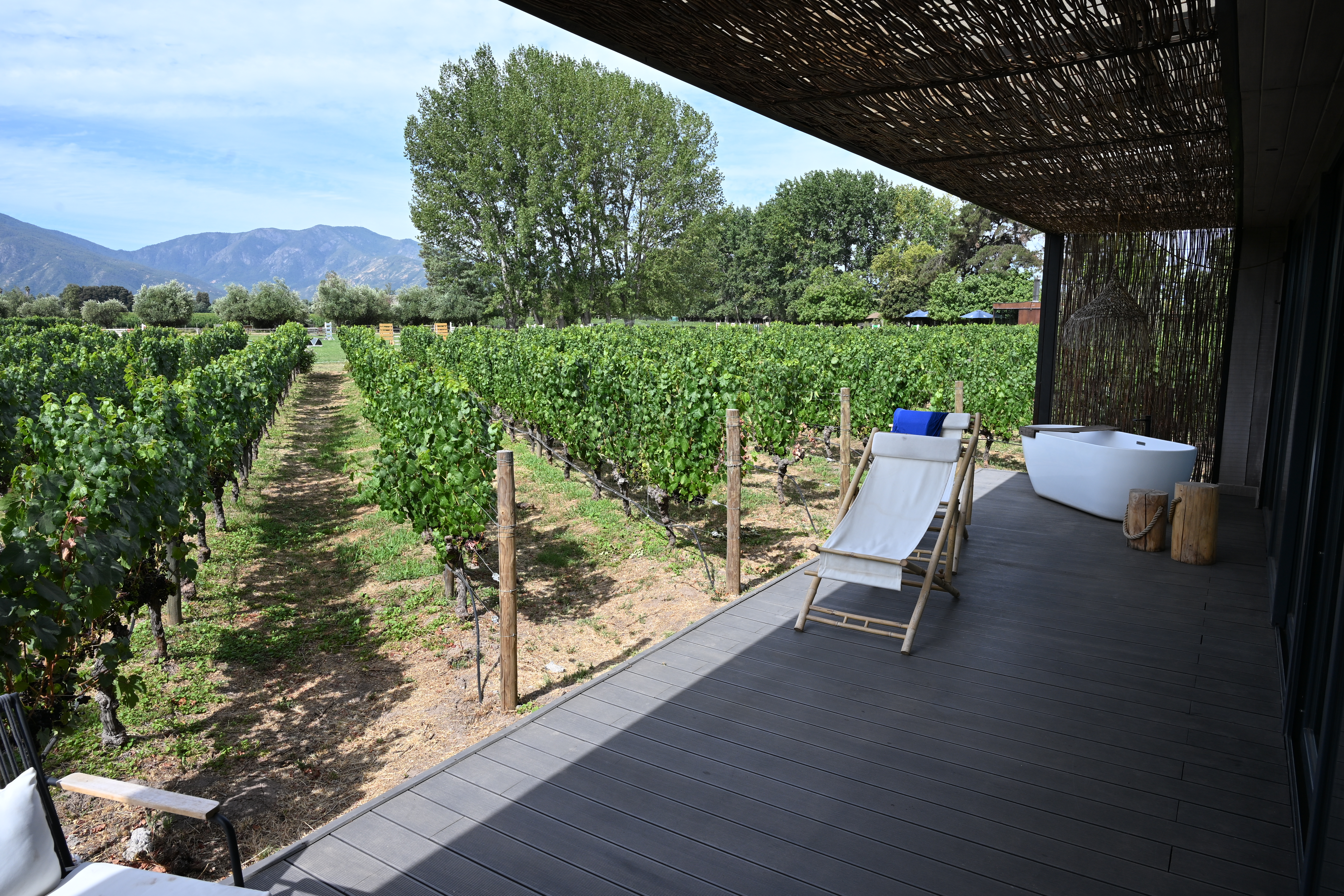 Den restlichen Tag verbrachten wir dann gemütlich am Pool. Der kurze Weg zum Pool führt durch den Malbec-Weingarten, wobei die Drahtziehung den Weg naturgemäß etwas verlängern. Mitten im Sommer haben diverse Vögel bereits ihre Freude mit den Trauben. Wir waren für eineinhalb Stunden die einzigen Gäste am Pool. Wasser und Luft mit leichter Priese hatten angenehme 27 bzw. 32 Grad. Auch trieben wir unsere Planung für unsere restlichen 17 Tage in Argentinien weiter.