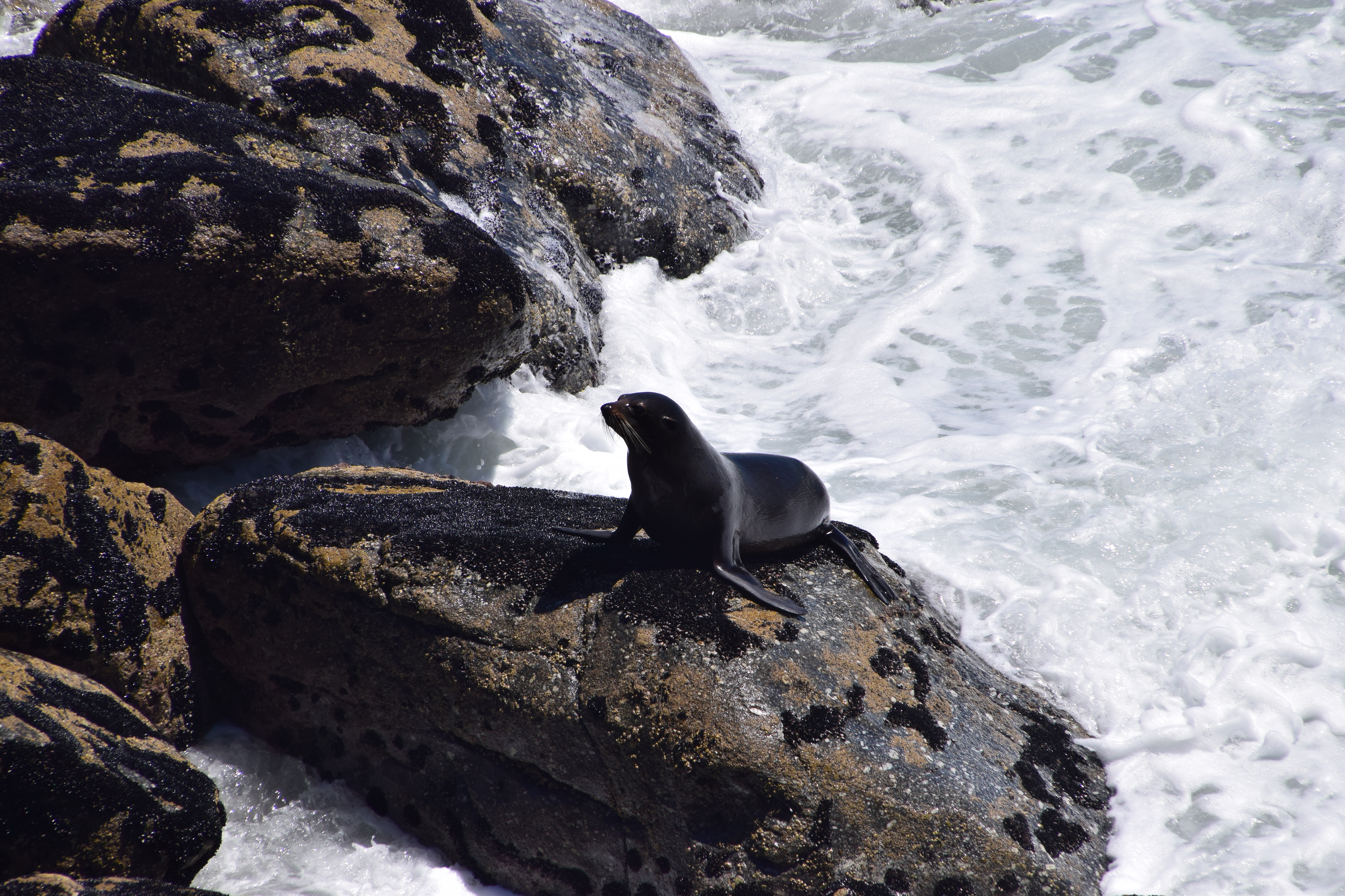 Dann überzeugte uns ein Werbeplakat von Westport und wir bogen vom Highway 6 in Richtung Ort ab. Während Stefan bereits zwei doppelte Espresso (a 3,50 NZD) bestellte, holte sich Helga noch ein paar Informationen aus dem Visitor Center. Ein wesentlicher Punkt dabei war das Cape Foulwind, wo wir wieder einmal Robben sichteten. Die Grotte vom Plakat haben wir aber nirgends entdeckt.