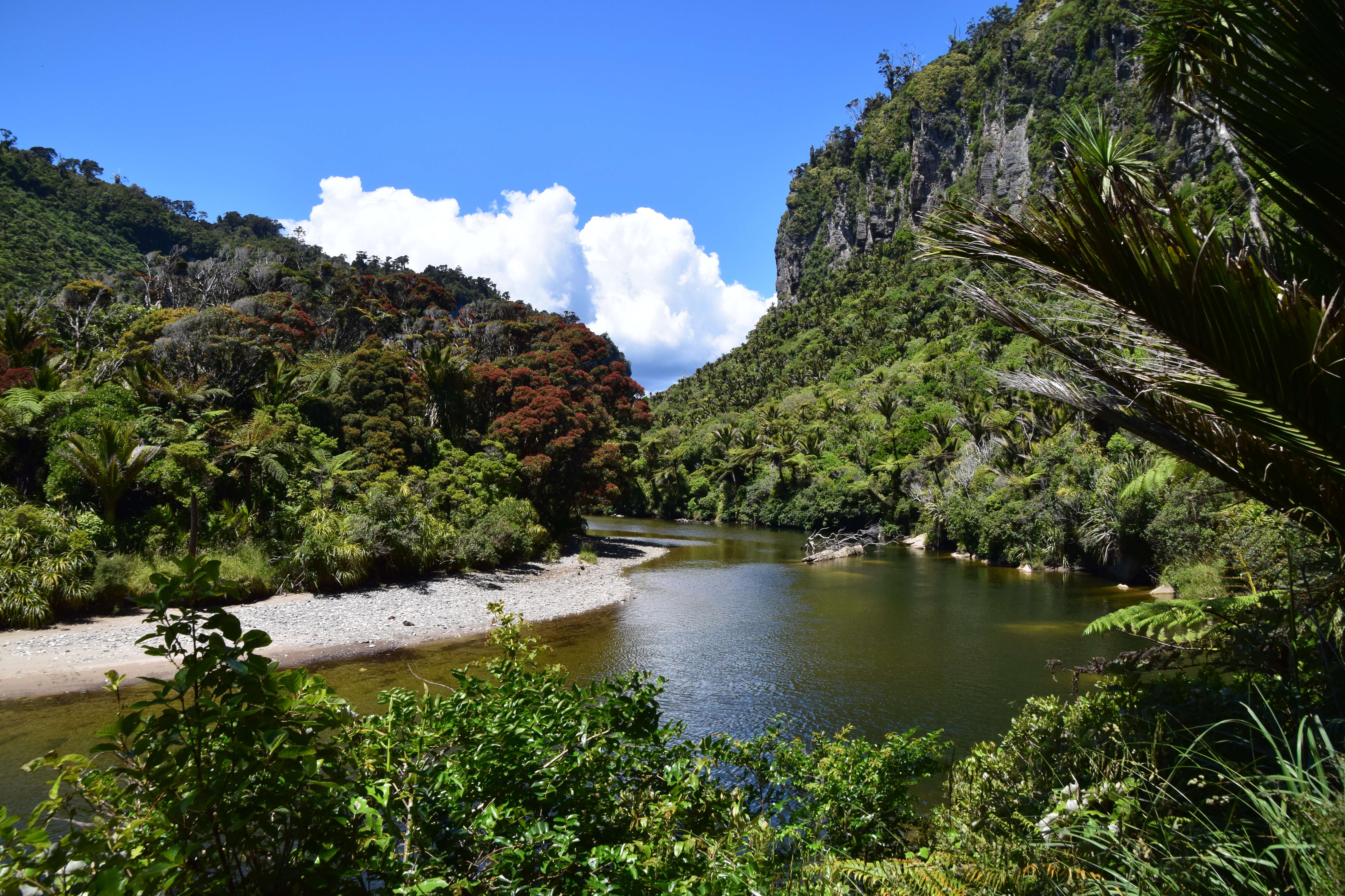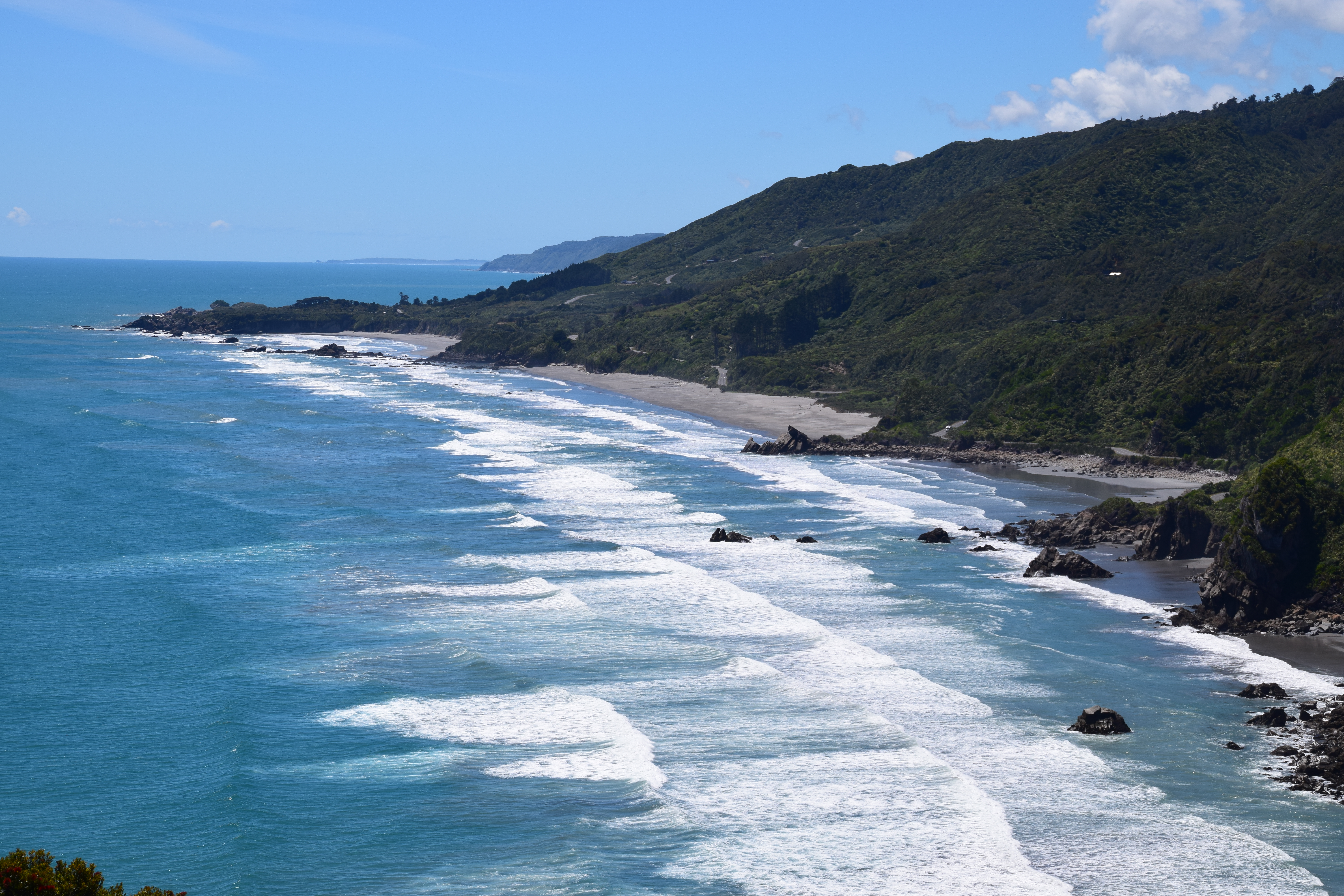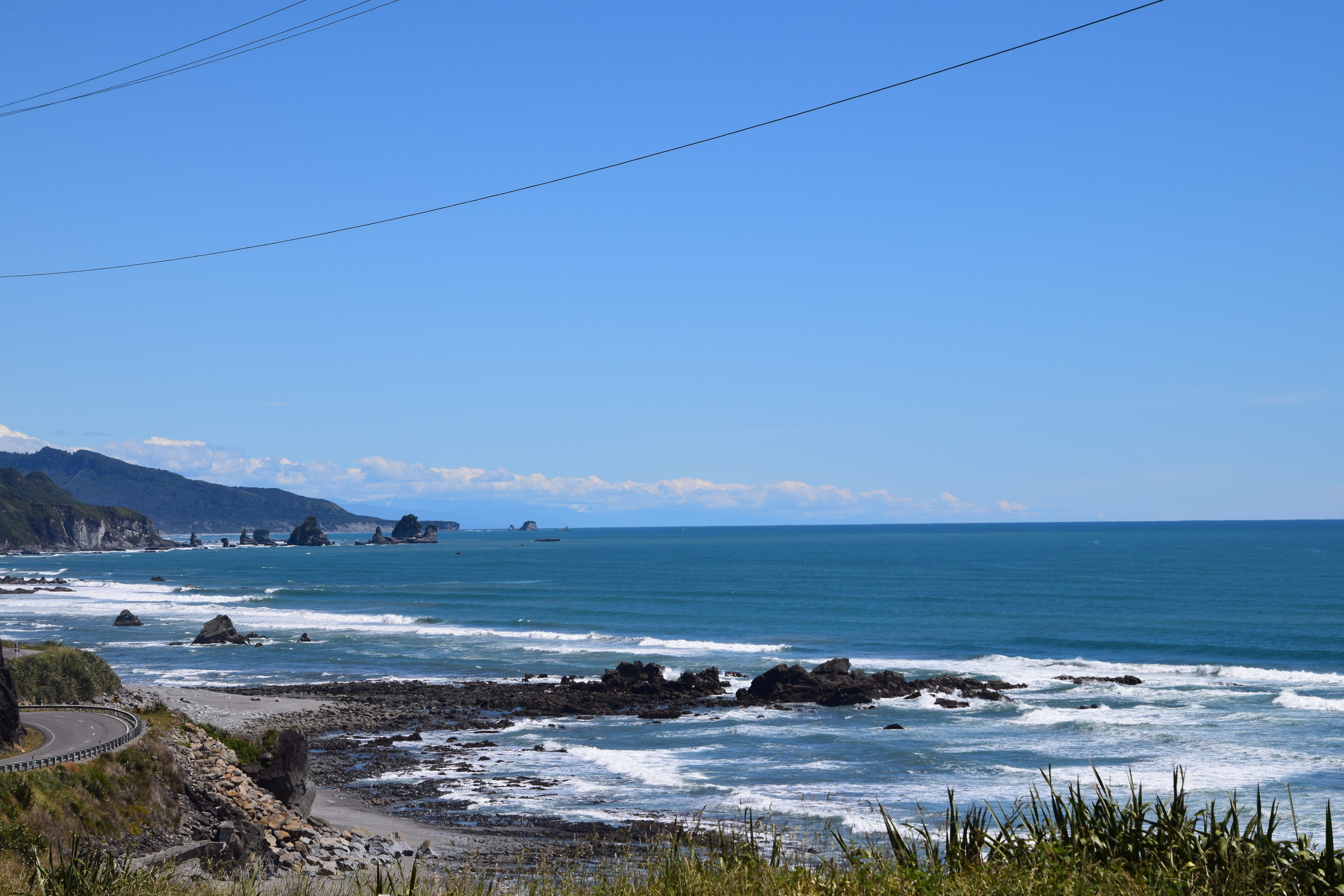 Am heutigen Tag ging es vor allem darum, an die Westküste zu kommen. Es ging dabei südlich vom Kahurangi Nationalpark vorbei, bergauf- und bergab, zum Teil gab es wieder „one way“- Passagen, bei Brücken und auch wieder ein paar Baustellen. Unterwegs sahen wir einige Hopfenfelde, neben Schaf- und Rinderherden, und vielen Wäldern.