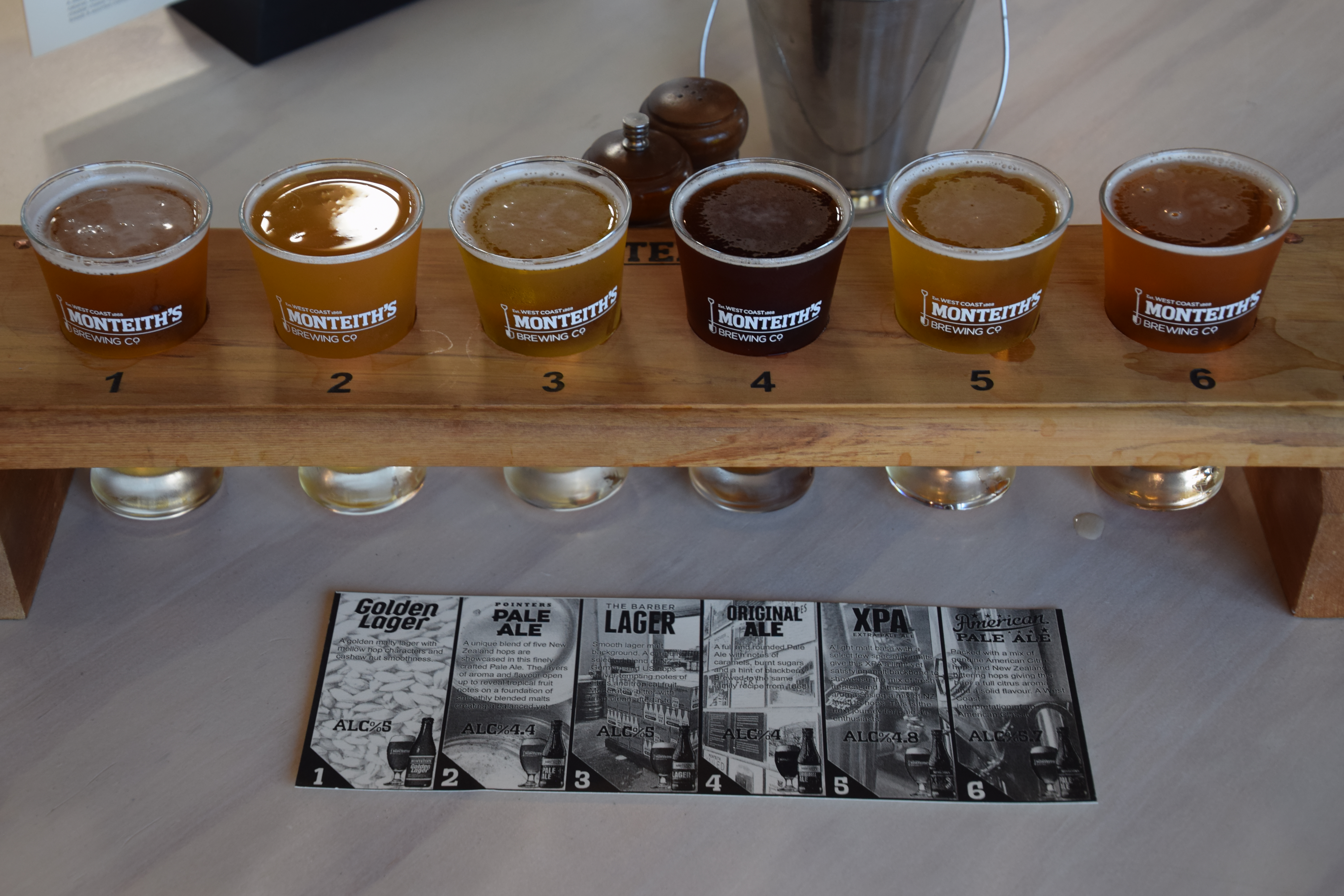 Unsere heutige Reise ging bis Greymouth und nach dem Einchecken begaben wir uns in die Monteith’s Brewing. Dort nahmen wir ein 6 beers tasting tray und aßen kleine Burger mit Wildfleisch als Vorspeise, dann Green Lipped Mussels und Lammfilets. War alles sehr gut und die Biere auch interessant. Danach fuhren wir noch bis ans Meer vor, bevor wir unsere restlichen Aufgaben (Emails, Blog, Planung des morgigen Tages etc.) erledigten.
