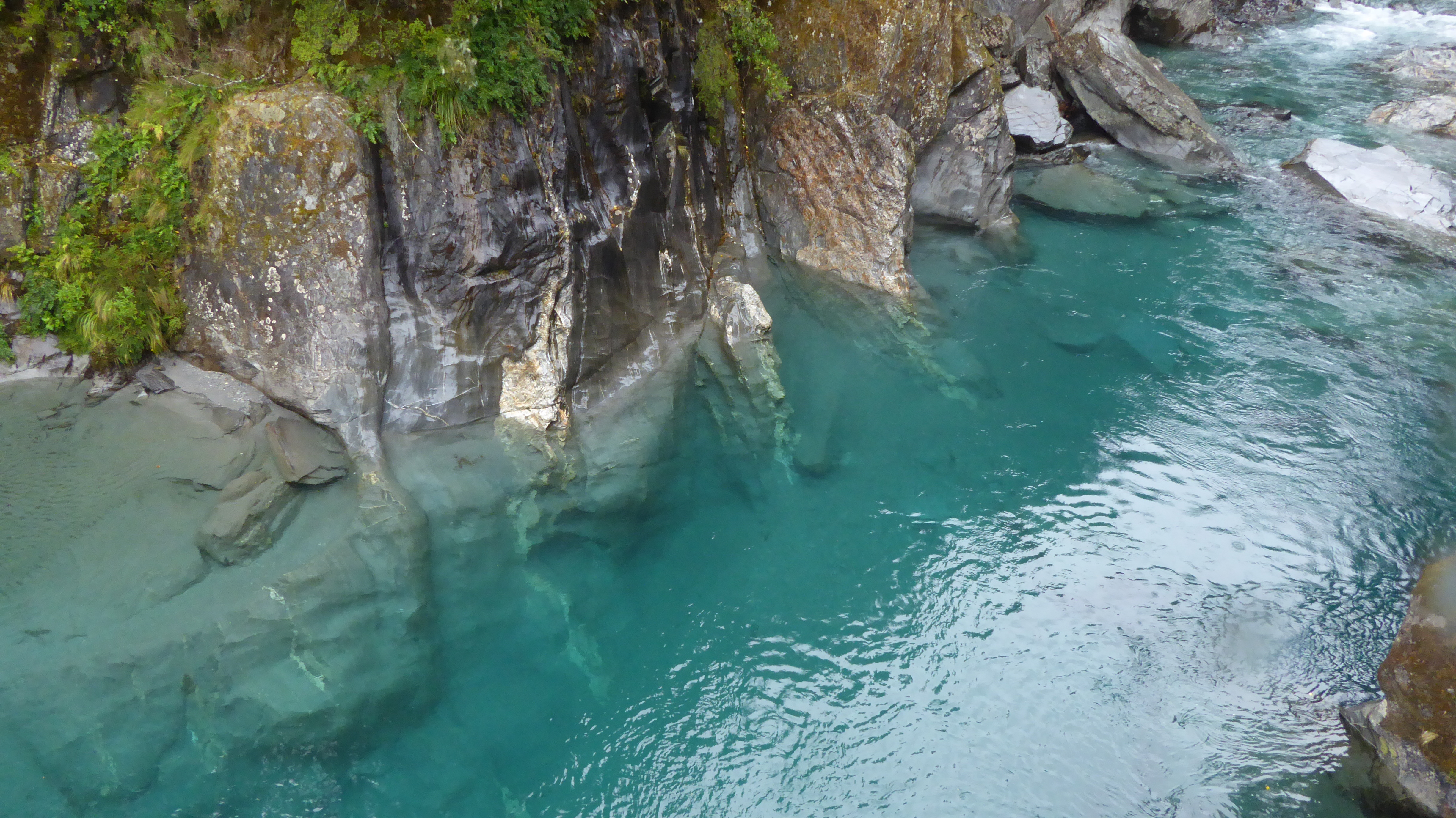 Weitere schöne Stopps waren die Thunder Creek Falls und die Blue Pools. Die Wege zu den Aussichtspunkten sind durchwegs sehr kurz. Dadurch trafen wir auch wieder, trotzt des anhaltenden Regens, auf einige andere Touristen. Die Menge an Touristen ist überschaubar, aber Helga wünscht sich immer exklusive Besichtigungen.