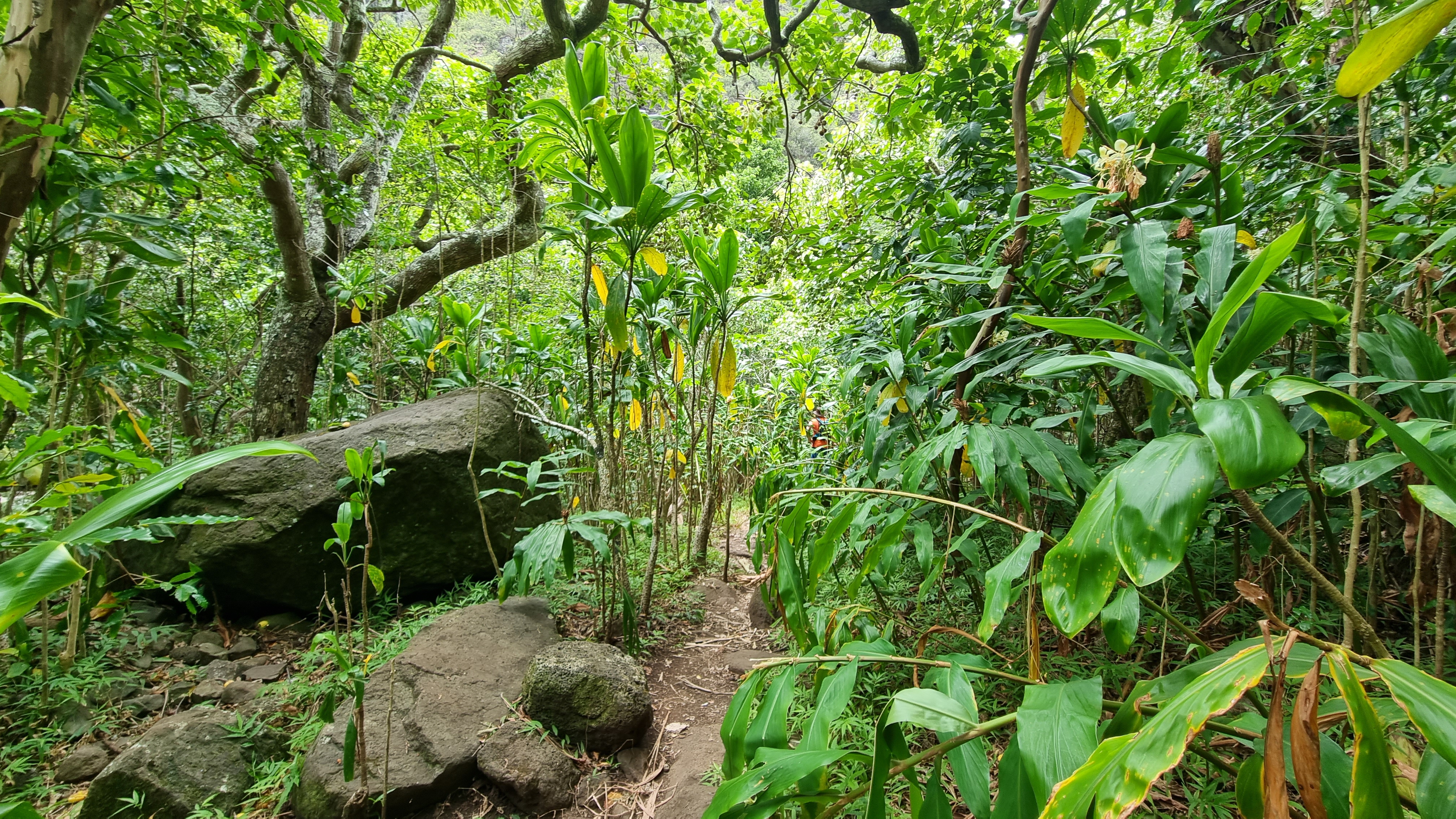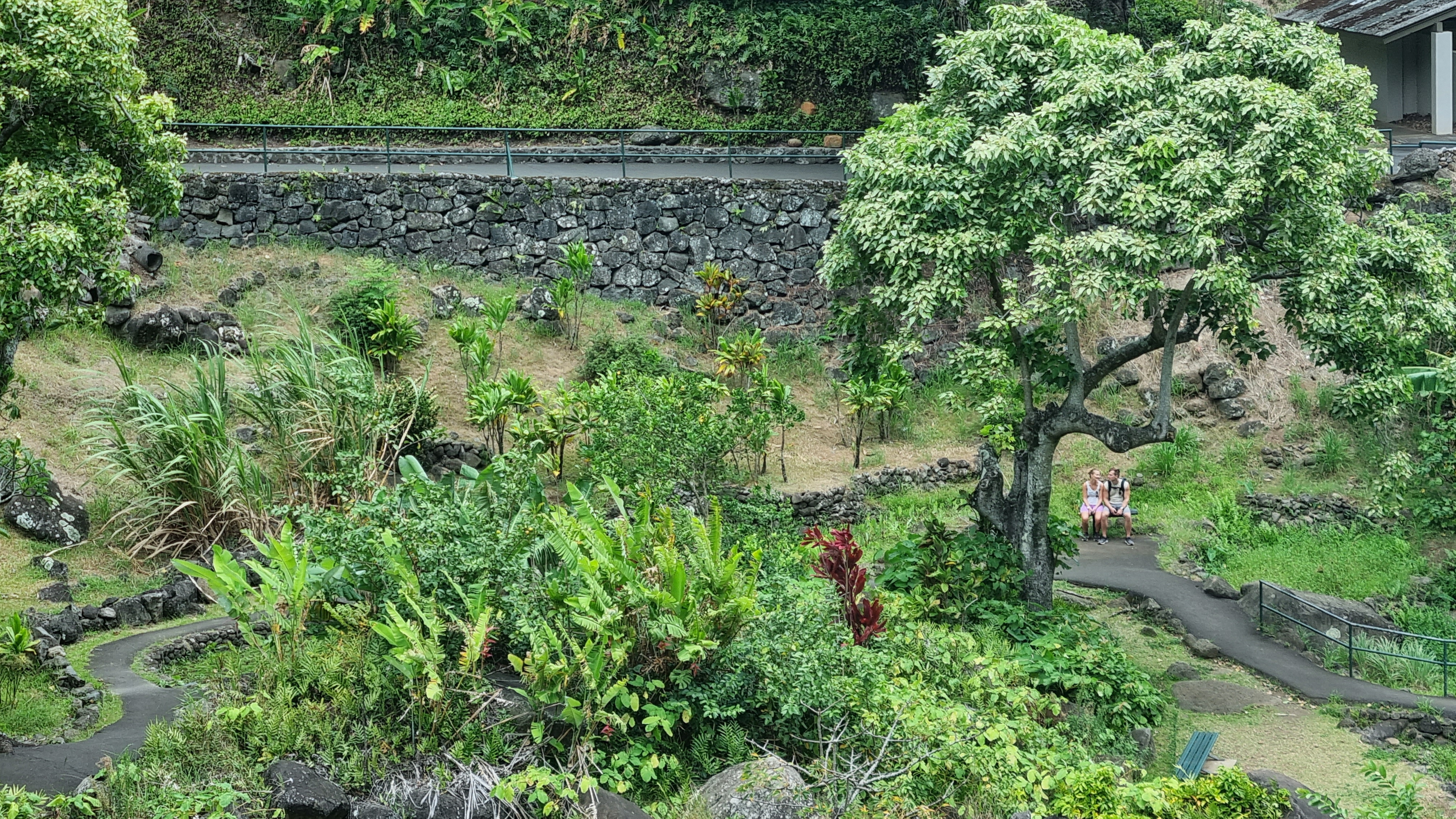 Heute war entspanntes Aufstehen angesagt. Für den Besuch des Iao Valley hatten wir den Timeslot von 10:30 bis 12:00 gebucht. Pünktlich dort eingetroffen, gab es nur ein paar wenige Stufen zu bewältigen, um ‚The Needle‘ zu sehen. Den Wanderweg entlang des Iao River marschierten Stefan und Helga rund 500 Meter entlang. Da die Eindrücke nicht wechselten, gaben es Helga und Stefan bald auf. Jakob und Karin warteten inzwischen auf einer Parkbank im nicht wirklich gepflegten Pflanzengarten.