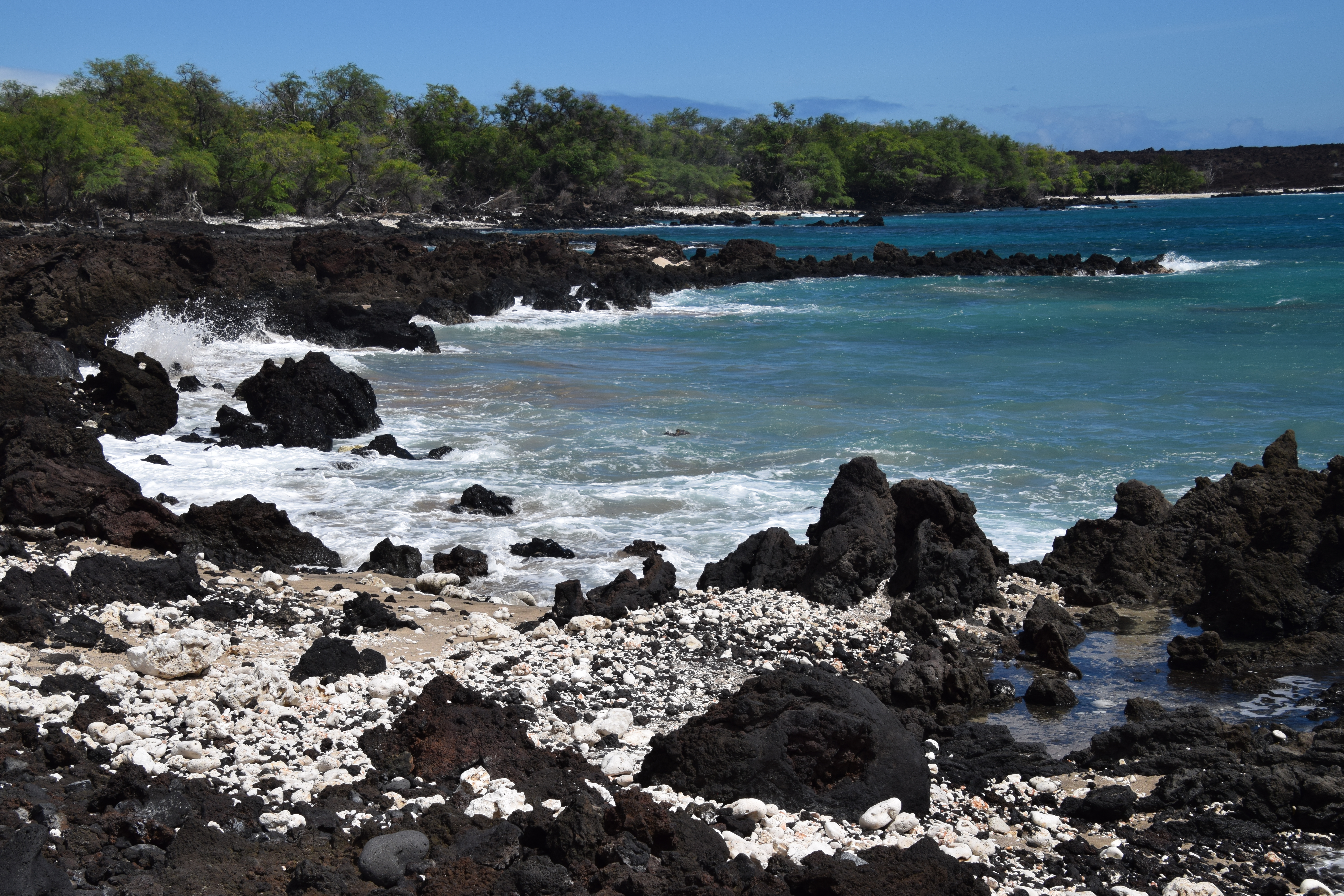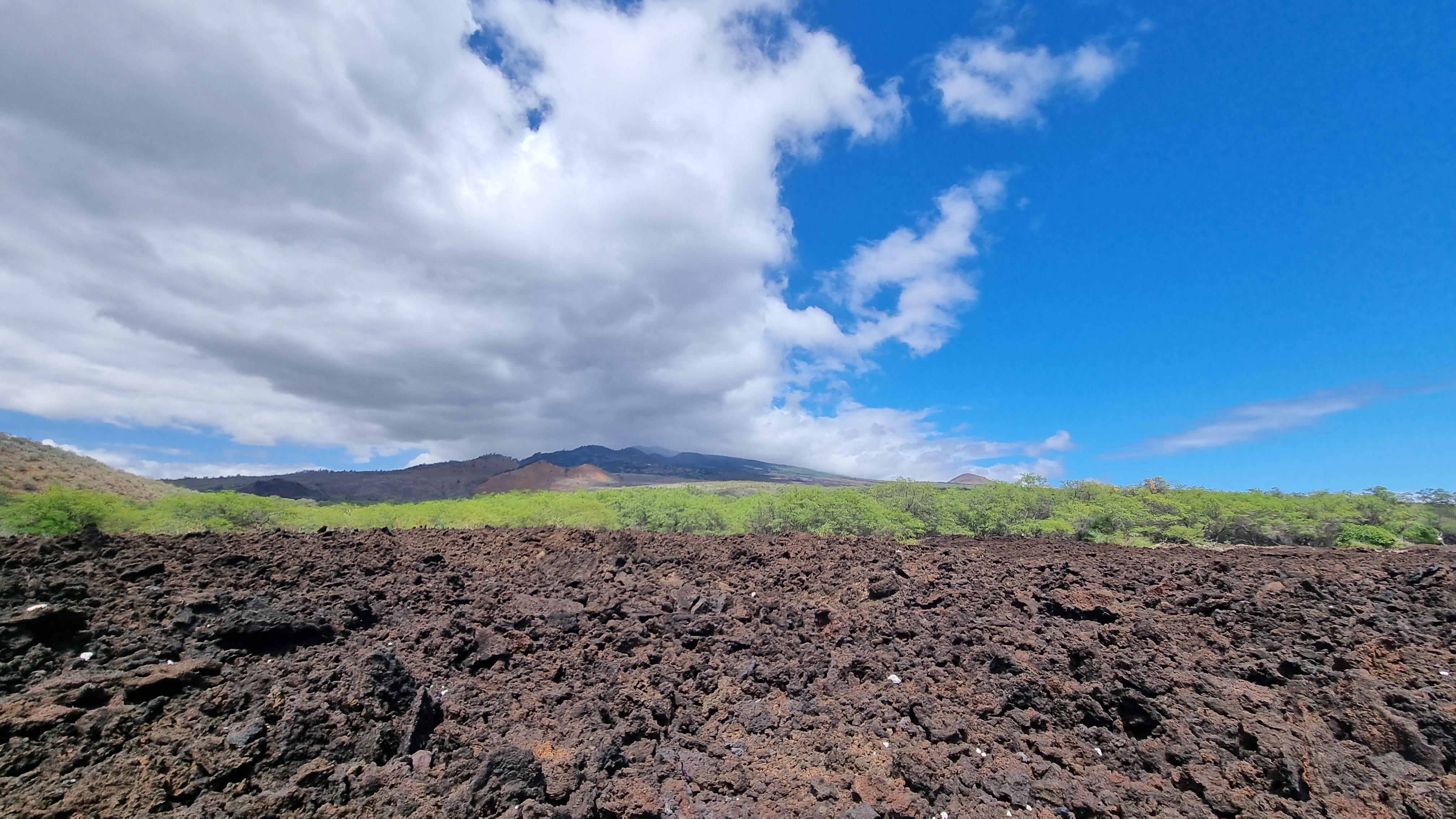 Da aber in unmittelbarer Nähe Heckenschneiden und Rasentrimmen angesagt war, ging es bald Richtung Süden weiter. Die Straße endete in Ke’one’oio – einem Lava-Feld, das bis ins Meer reicht. Da wir diesmal nur mit Flipflops und Schlapfen ausgerüstet waren, kamen wir auf dem eher beschwerlichen Weg nicht sehr weit.