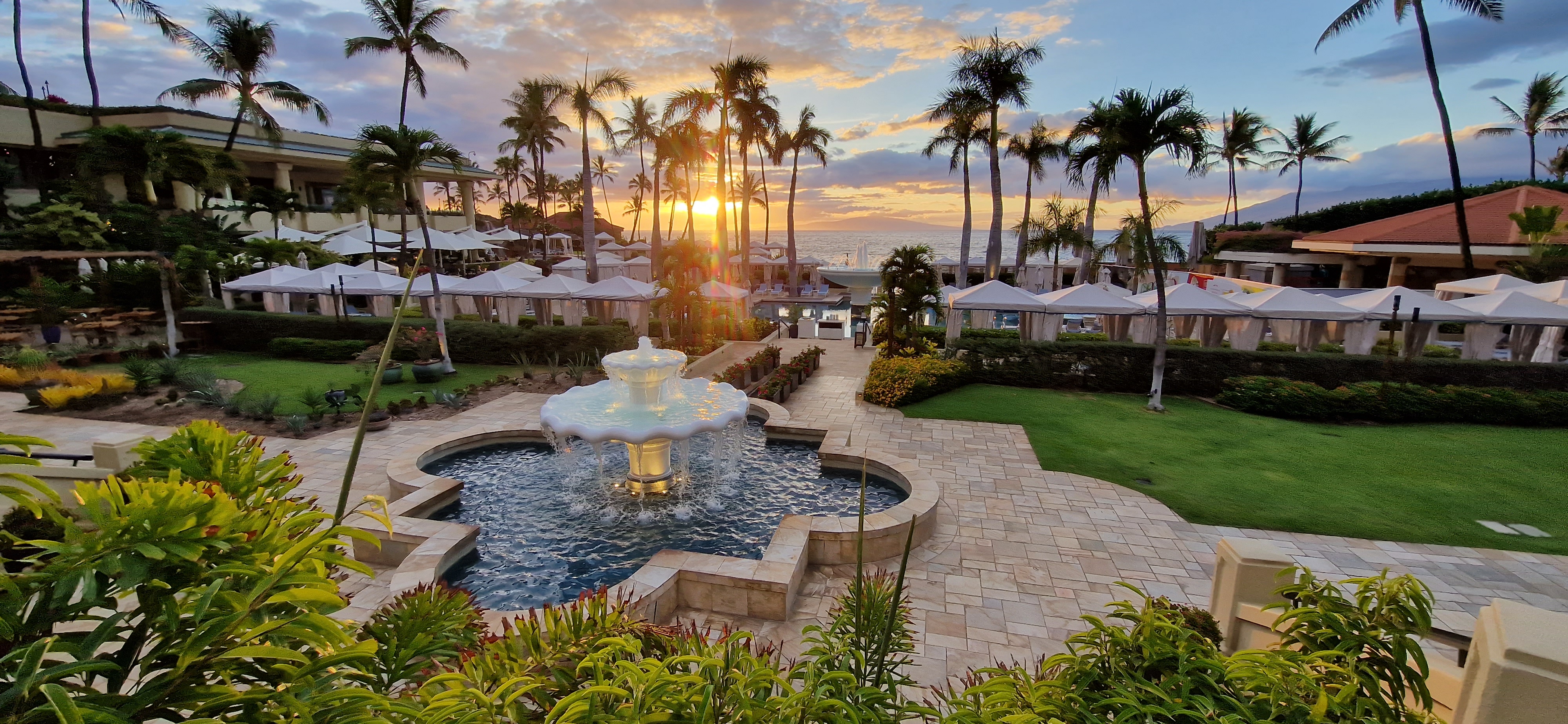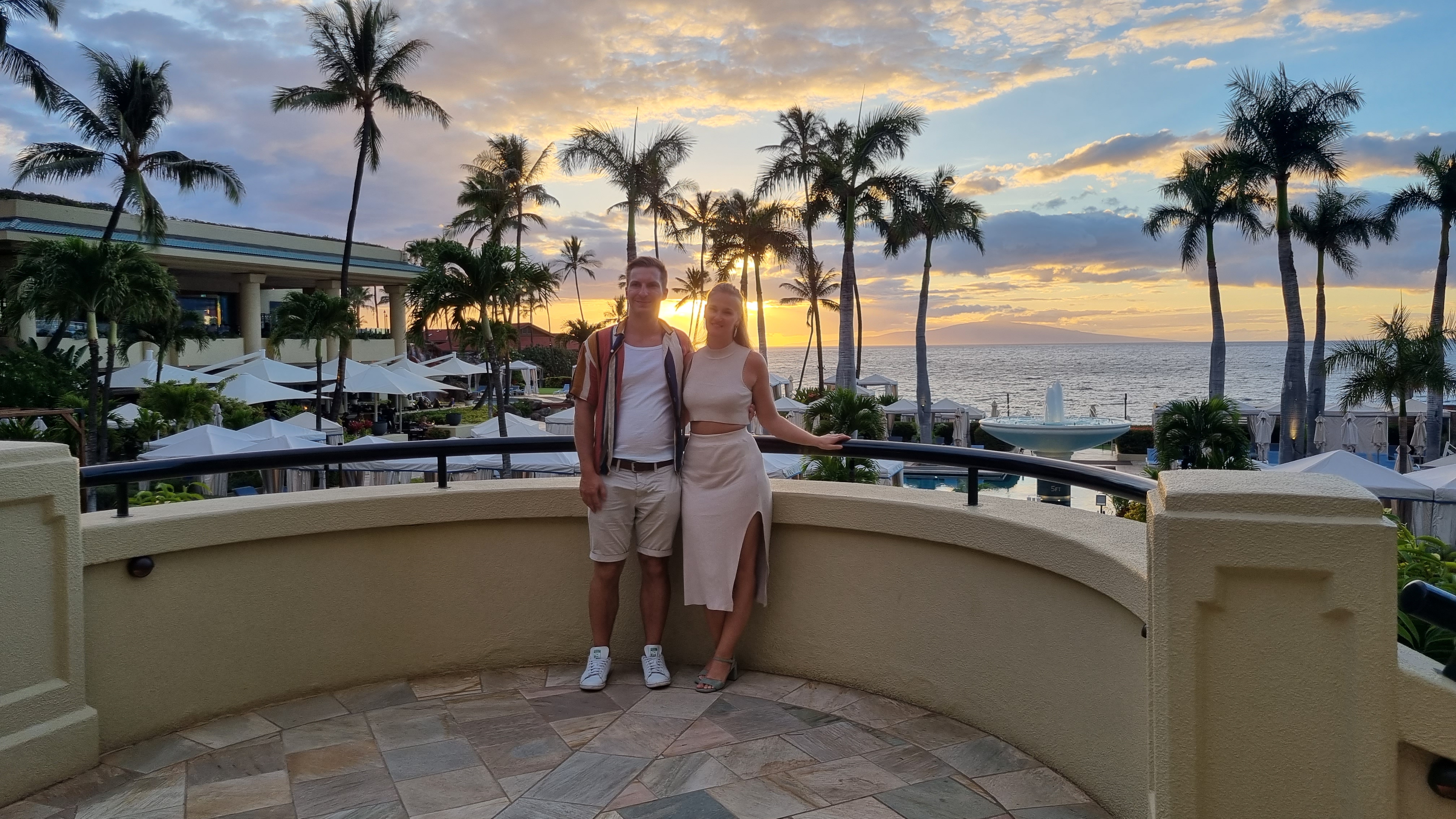 Um 17:00 Uhr ging es wieder zurück Richtung Wailea mit dem Ziel Four Seasons – ein absolutes Muss für Fans von White Lotus. Wir nahmen eine Runde Cocktails in der Lobby Lounge, wo wir auch mit Livemusik und Tanz unterhalten wurden. Karin und Jakob beendeten ihre Cocktails sehr zügig, um sich in der Hotelanlage nach den heißesten Drehorten der Serie umzusehen. Die Lage des Hotels ist tatsächlich phantastisch, was wir nach einer kurzen Runde auf dem Wailea Beach Path bestätigen konnten.