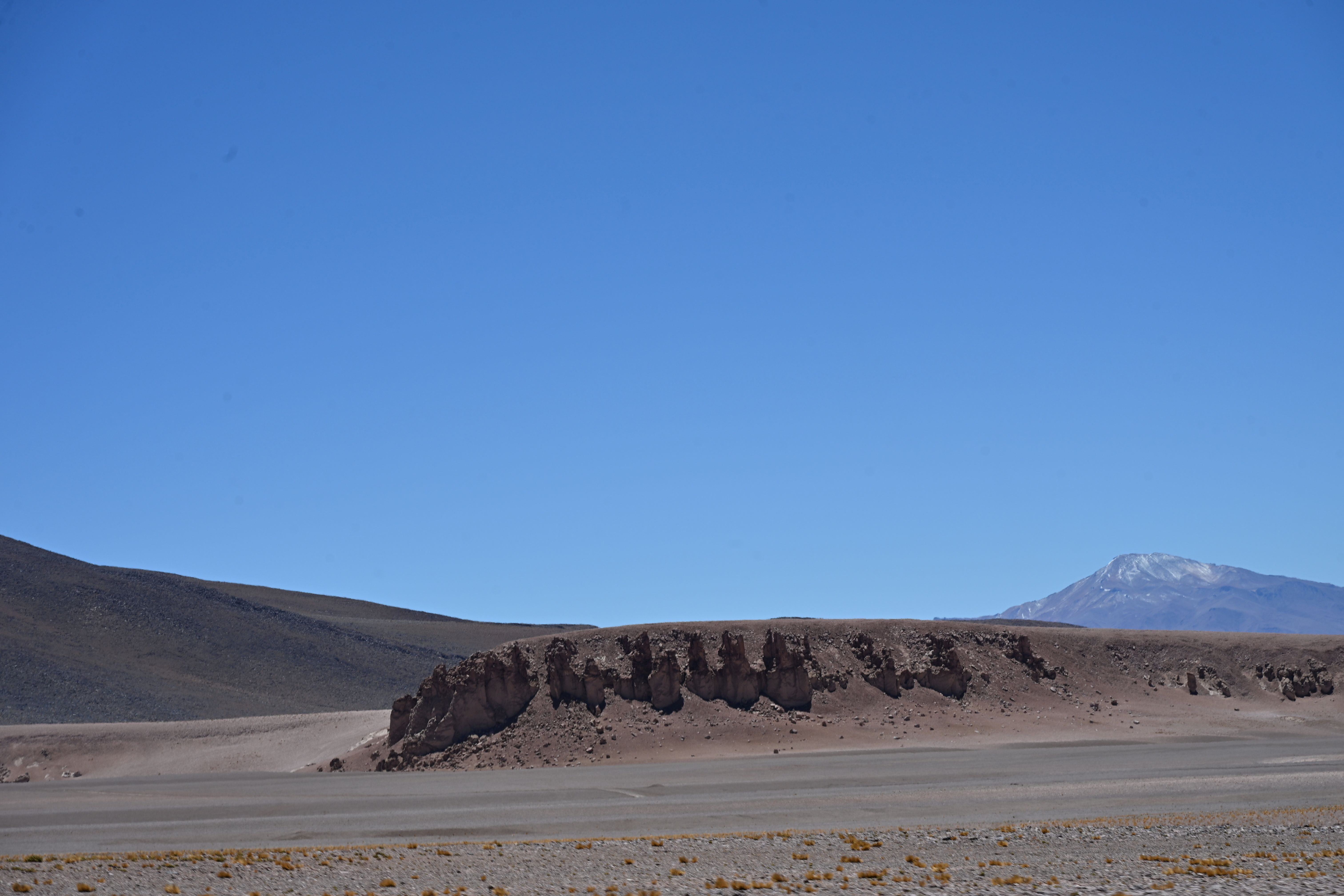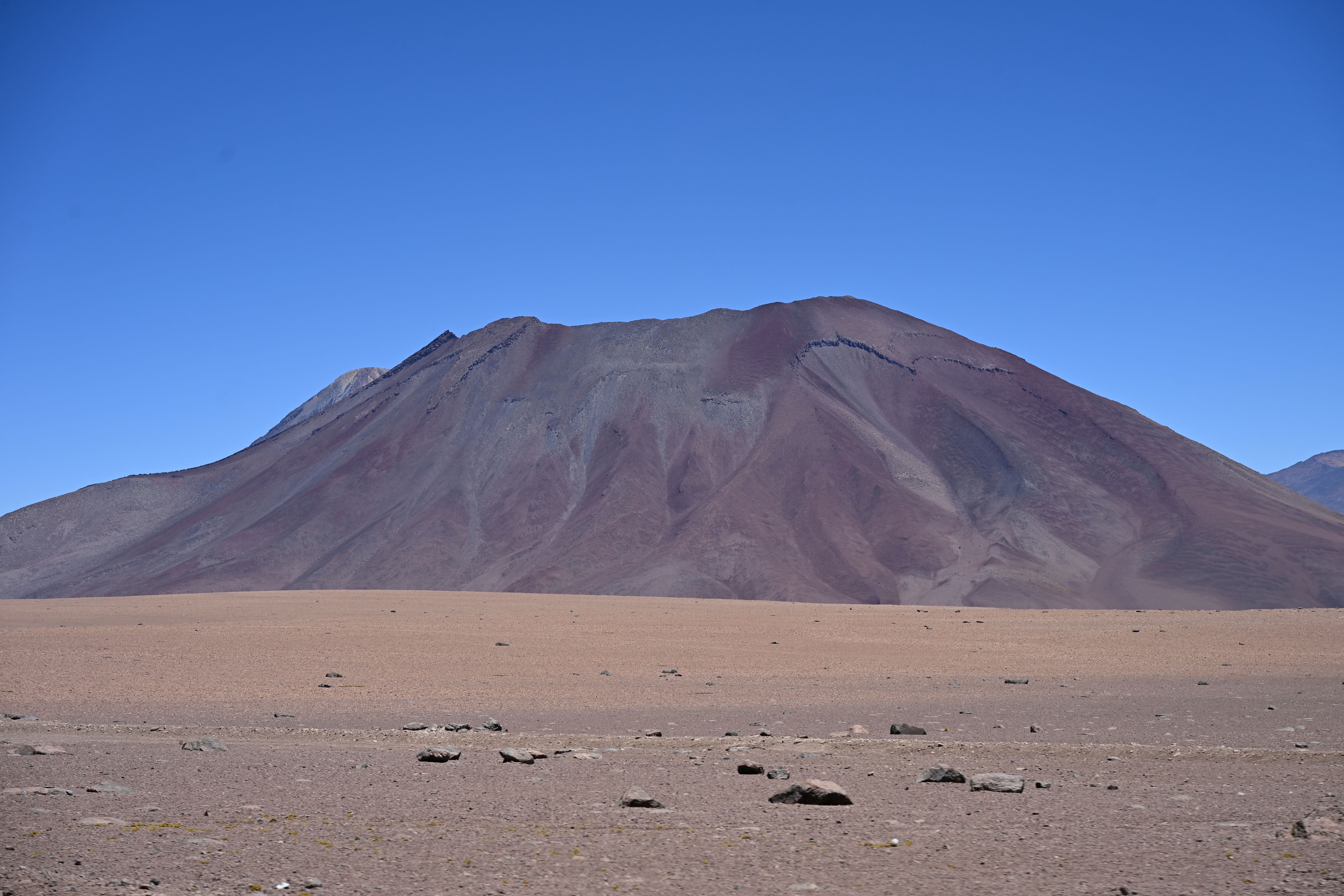 Der nächste Aussichtspunkt war „Salar y Laguna de Tara“ und schließlich dem „Mirador Salar de Loyoques“. Letzterer liegt 20 km vor dem Grenzübertritt Paso Jama (4.200 m ü.M). Blicke auf den Volcan Licancabur (5.920 m) und seinen Nachbarn Juriques knapp vor San Pedro de Atacama bildeten den Abschluss der Tour.
