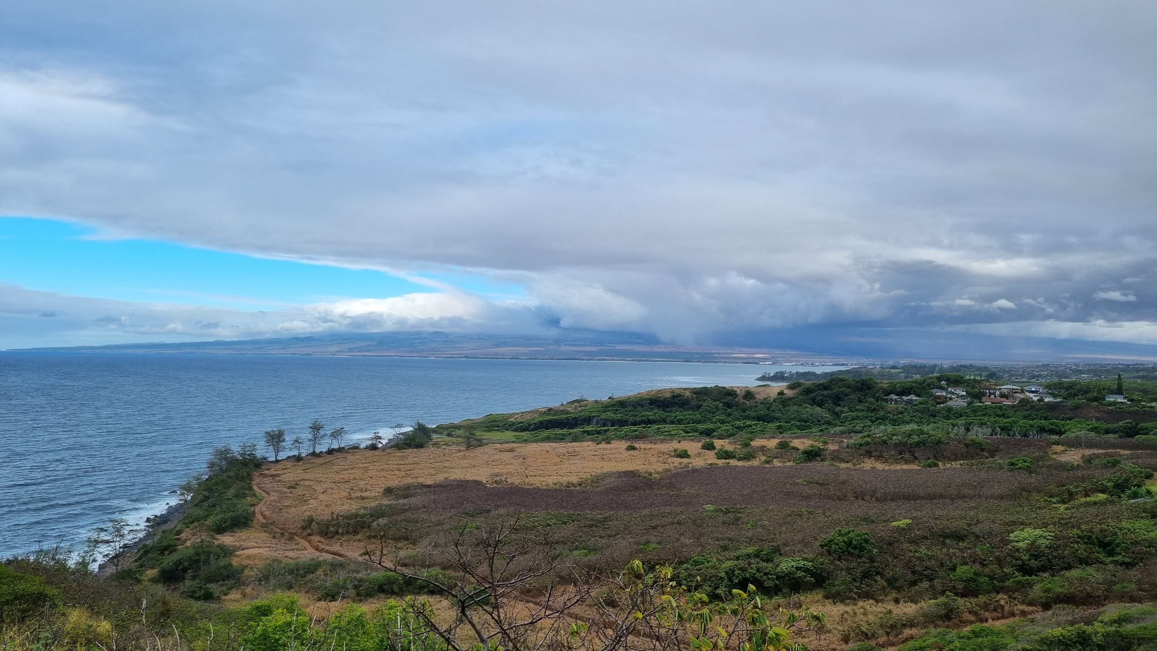 Stefan und Helga fuhren nach dem Flughafen noch die Nordküste von Westmaui bis zum ersten Lookout entlang. Von diesem Lookout hat man einen guten Blick auf ein paar Dünen an der Küste und auf die Landschaft Richtung Paia.