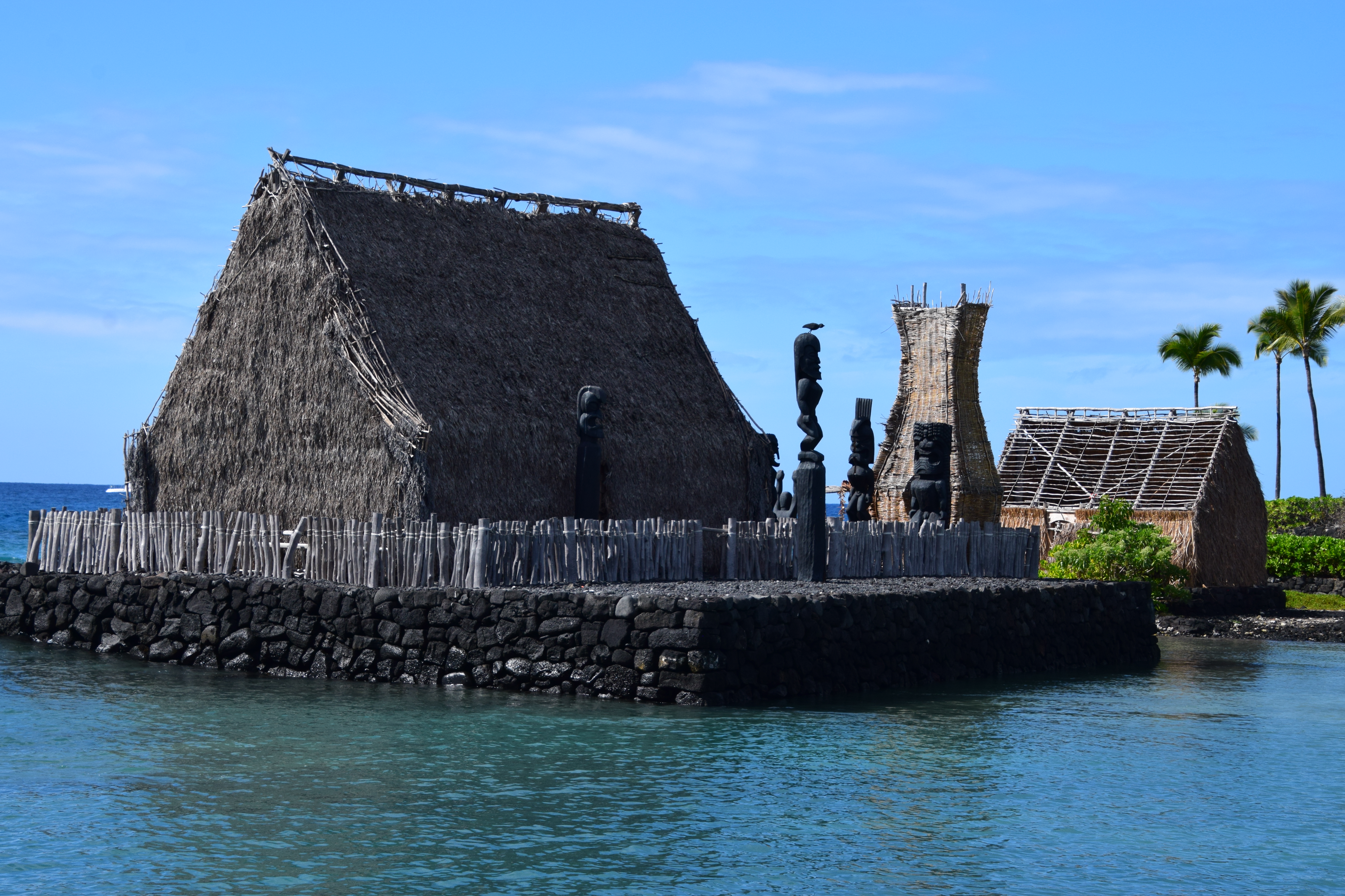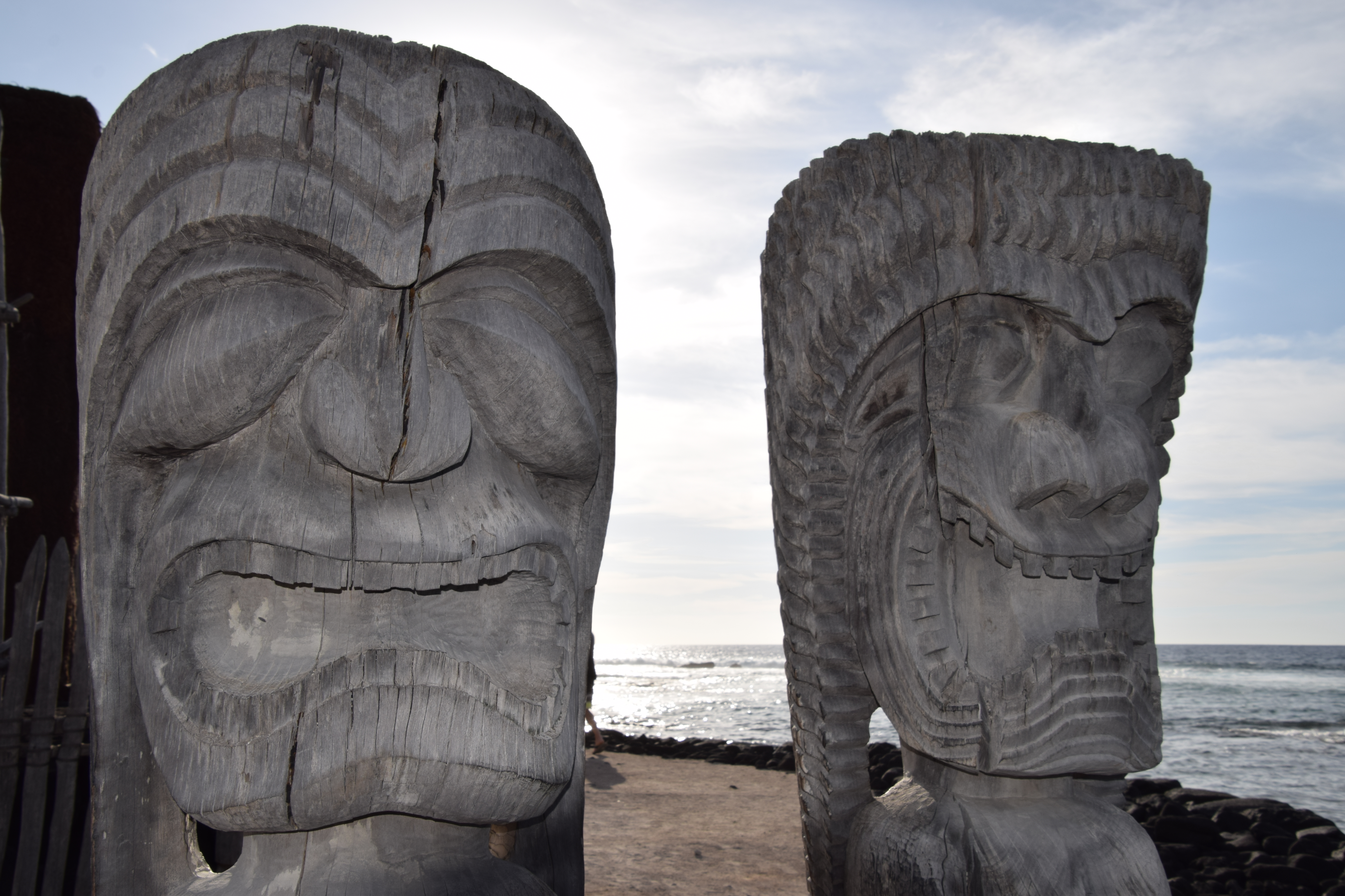 Anschließend folgten wir den Hinweisen zur ‚Painted Church‘, die heute leider geschlossen war. Damit waren wir aber schon dem ‚Pu’uhonua O Honaunau National Historical Park‘ sehr nahe, den wir uns kurz entschlossen ansahen. Die großen hölzernen Skulpturen sind tatsächlich sehenswert.