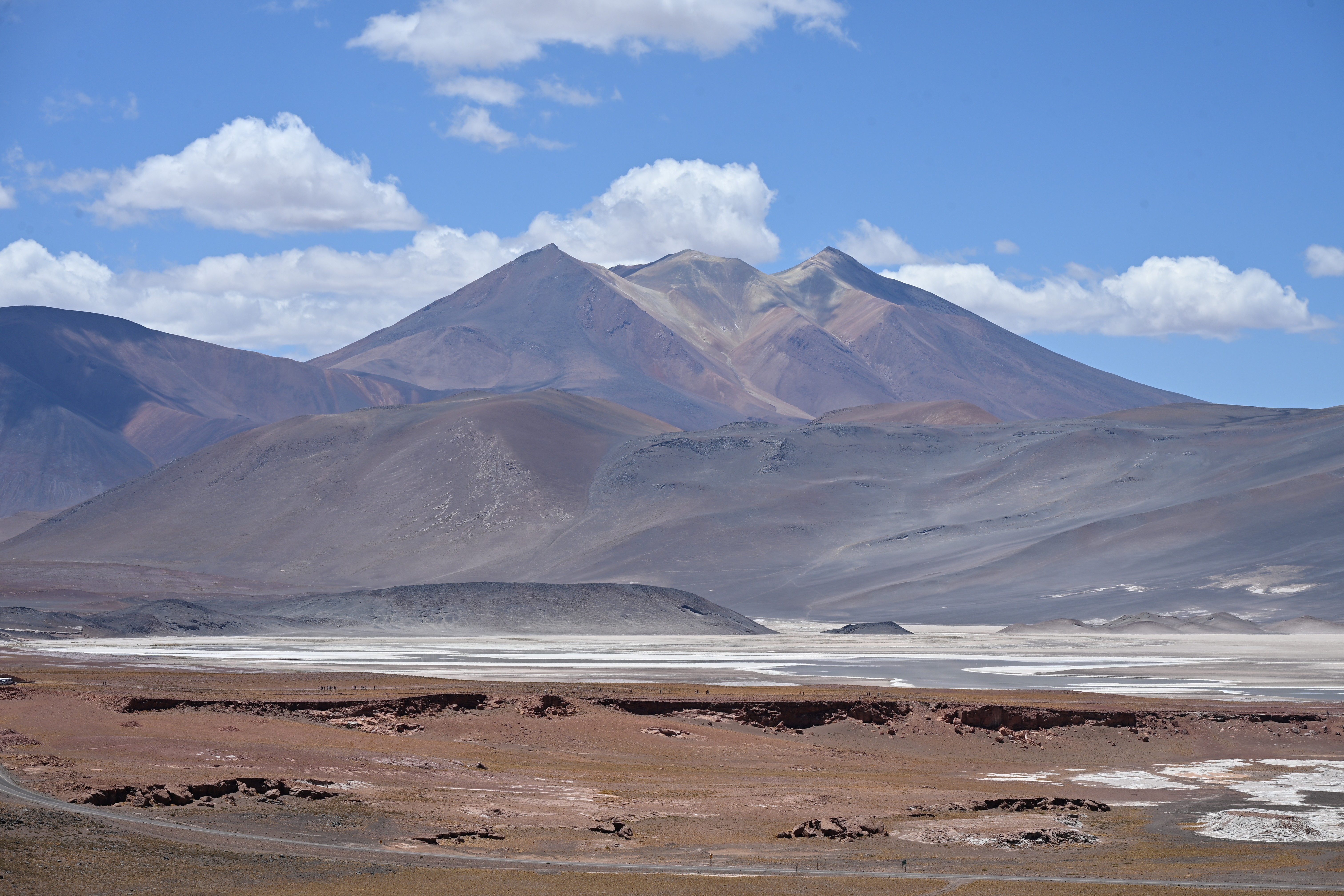 Anschließend ging es die Ruta 23 bis zum Salar de Aguas Calientes, besser bekannt unter piedras rojas. Die Ruta 23 ist eine der Verbindungen von San Pedro de Atacama nach Argentinien und führt über den Paso Sico. Übermorgen werden wir vermutlich die Ruta 27 in Richtung Paso Jama besichtigen. Beide Pässe sind deutlich über 4.000 m ü.M.