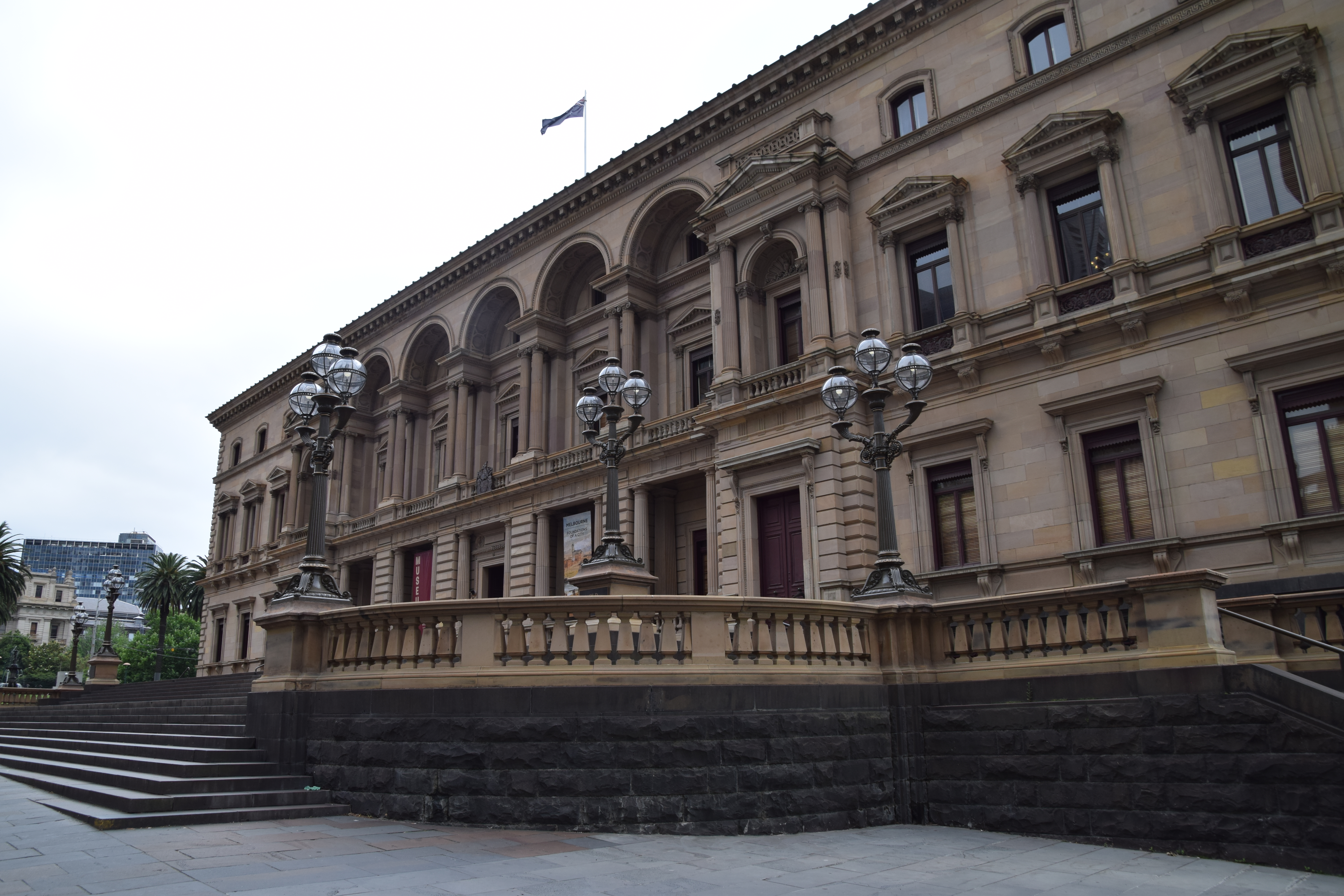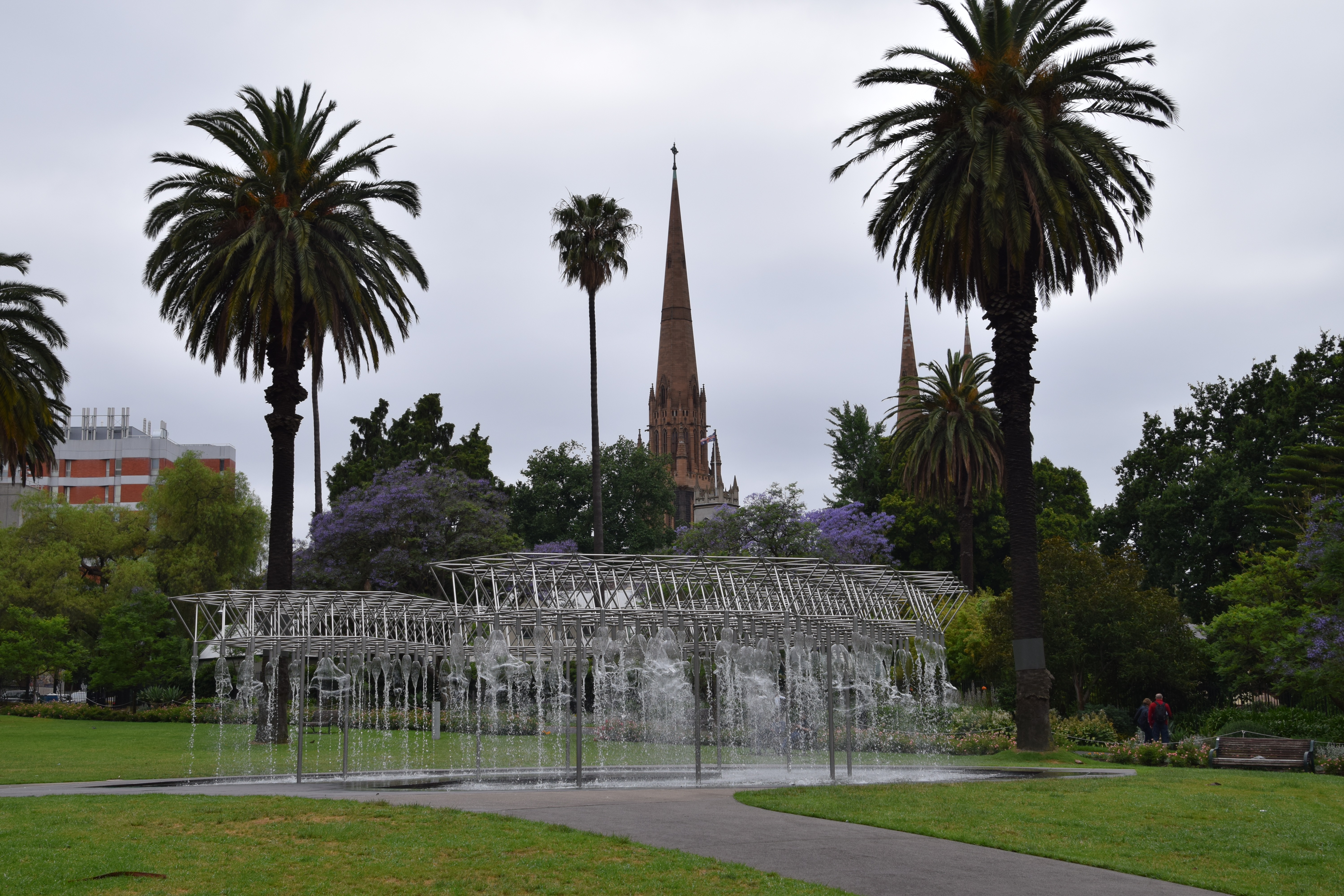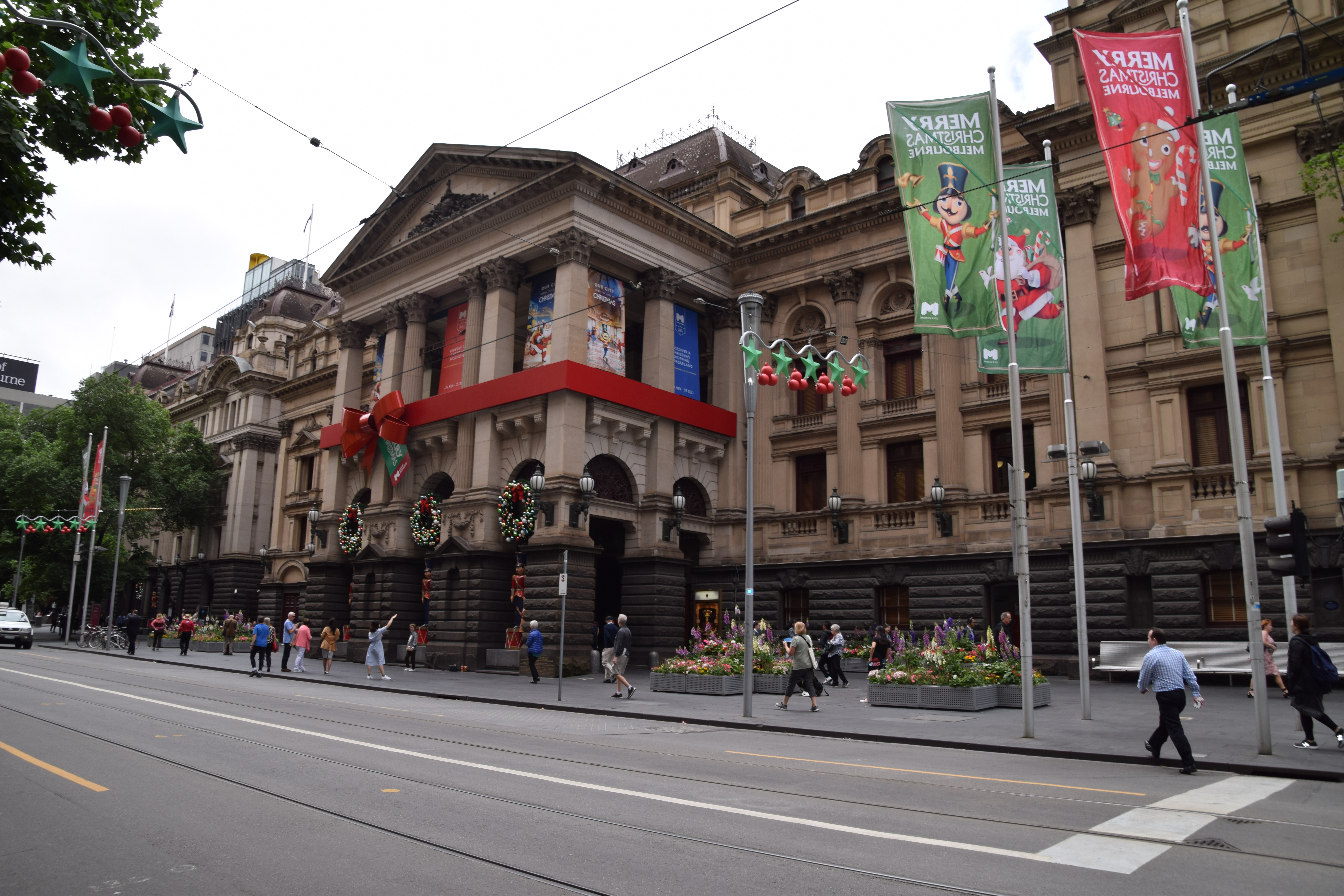 Wir fuhren bis zur Spring Street und sahen uns, allerdings nur von außen, das Royal Exhibition Building und das Melbourne Museum an. Wir sparzierten durch einen kleinen Park zur St. Patrick’s Cathedral, mit Blick auf das Princess Theater, dann zum Parliament House und dem Old Treasury Building Museum. Das Old Treasury Building ist ein neoklassizistischer Ziegelbau und wurde im Führer als eines der schönsten Gebäude Australiens aus dem 19. Jahrhundert  bezeichnet.