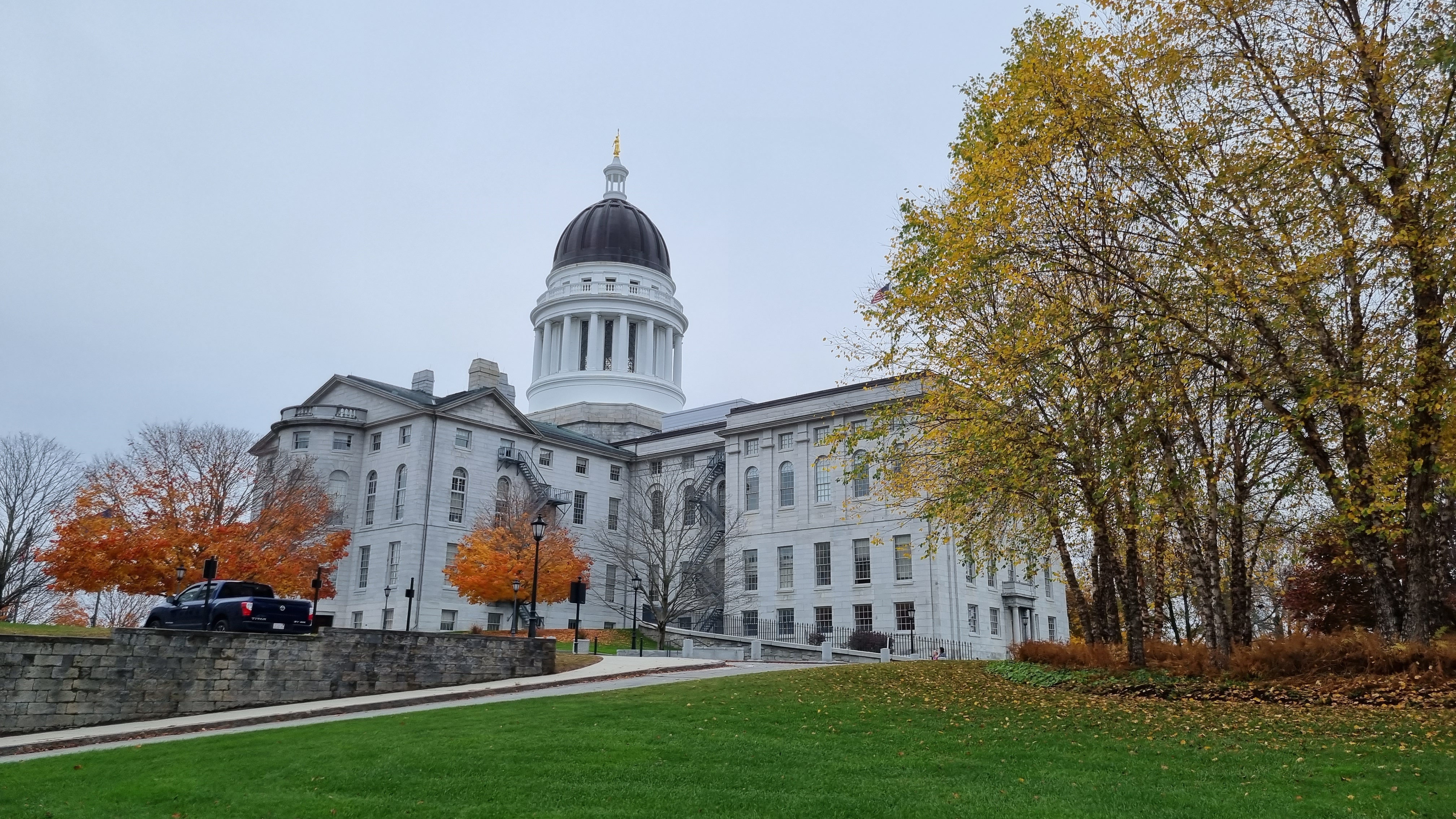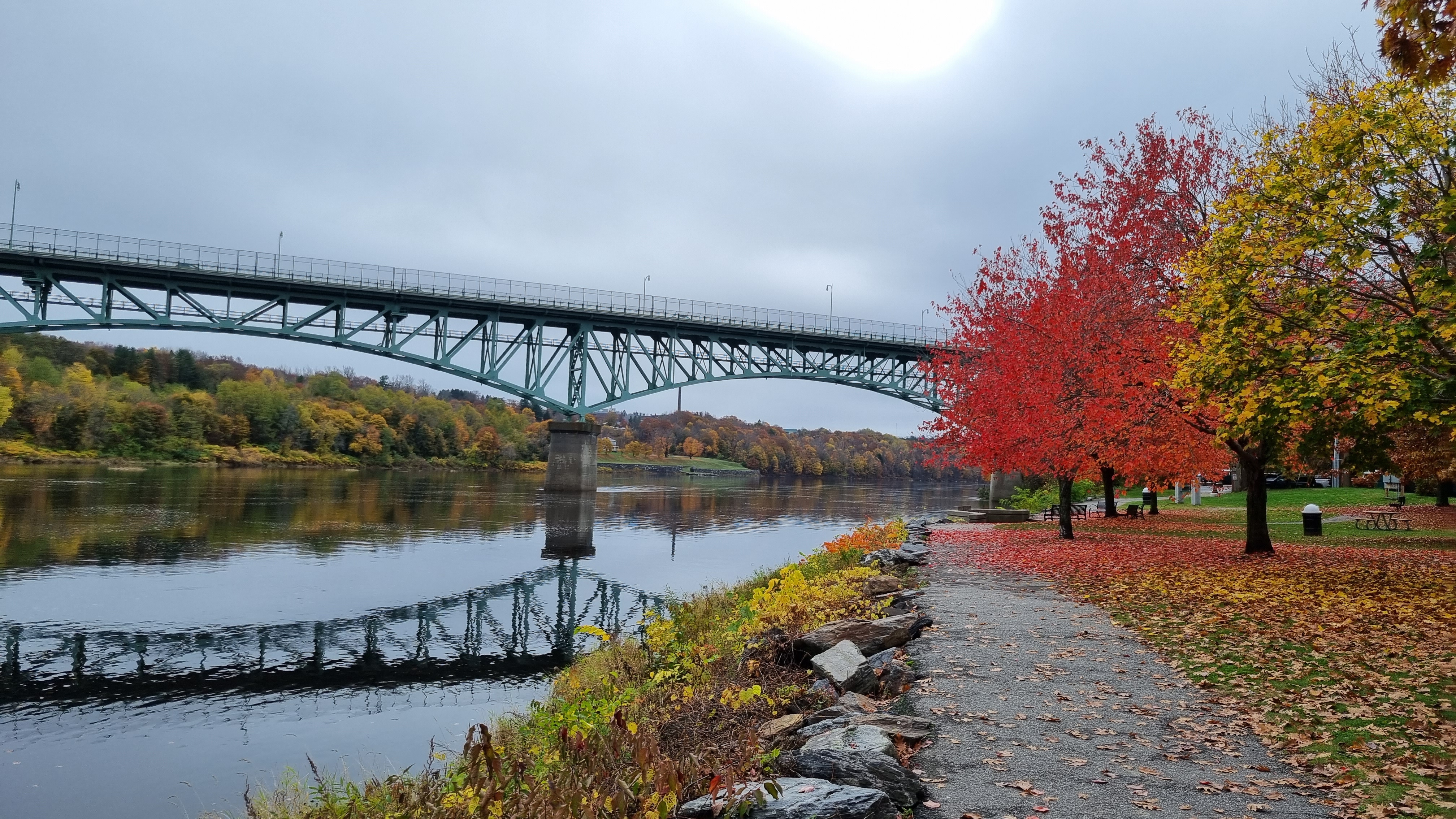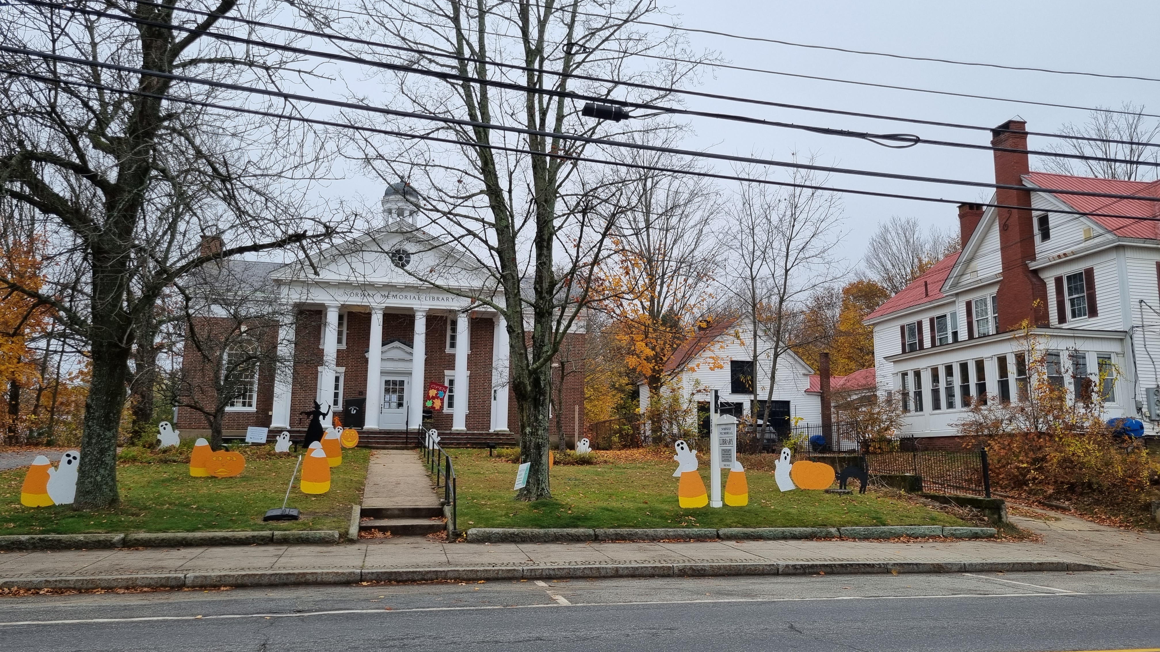 Dann ging es mit kurzen Pausen in Newport und Augusta über Norway nach North Conway. Augusta ist die Hauptstadt von Maine und berühmt für seine Altstadt, das Capitol House und das „Old Fort Western“ aus dem Jahre 1754. Von Norway ging es über eine sehr hügelige Straße mit kurzen Sonnenfenstern zu unserem heutigen Ziel – North Conway. Wenn die Sonne rauskommt, kann man die Farben noch intensiver wahrnehmen. Auch wird überall schon viel für Halloween dekoriert. Der Abschluss bildete ein Burgeressen im Muddy Moose Restaurant.