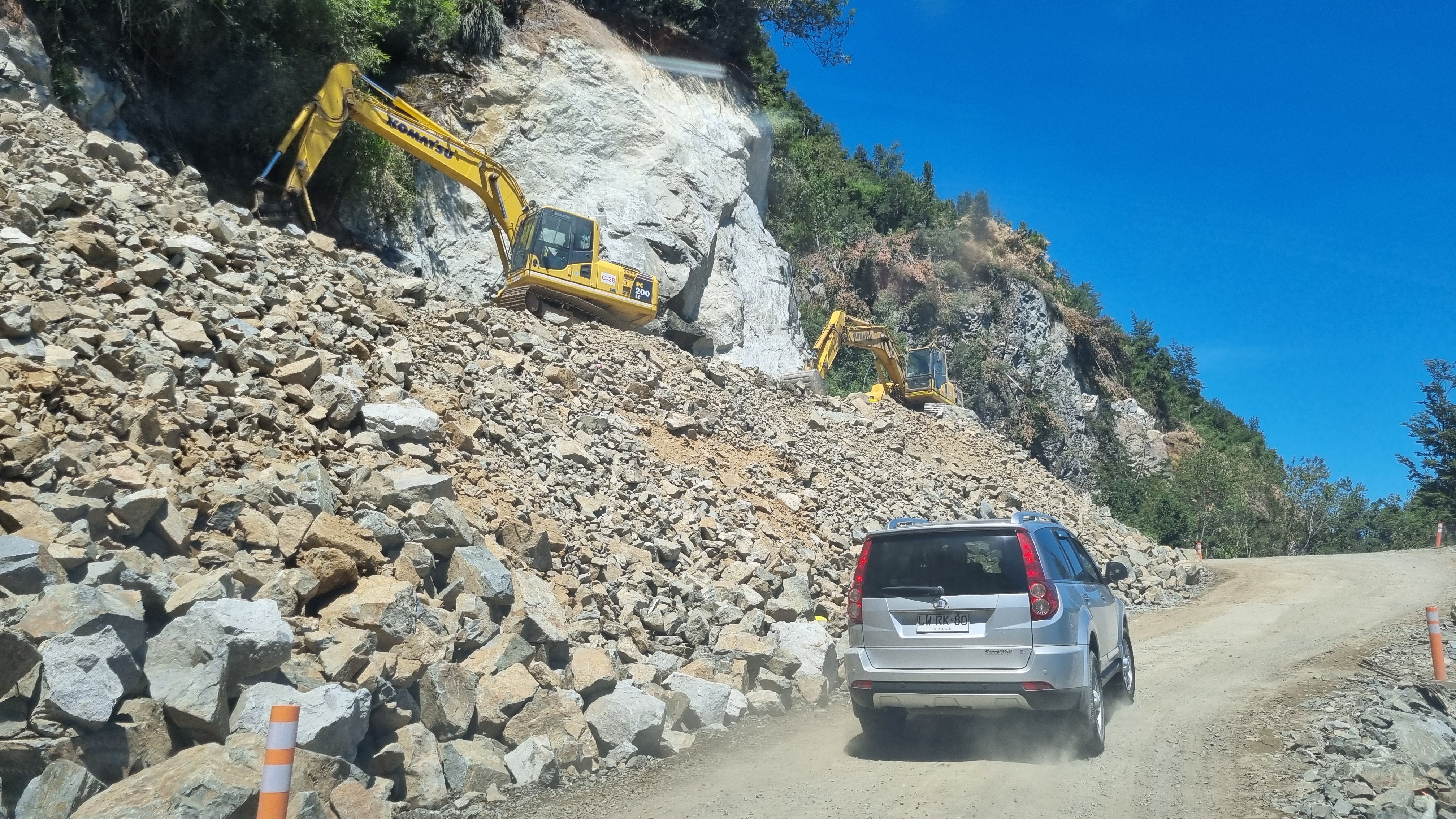 Von den insgesamt 120 km bis zur Fähre waren maximal 70 km asphaltiert. Der Rest waren Schotterstraßen von der härteren Seite. An einer Stelle waren sie auch am Samstag mit schwerem Gerät am Werk und der Weg durch die Baustelle hatte einen gewissen Reiz.