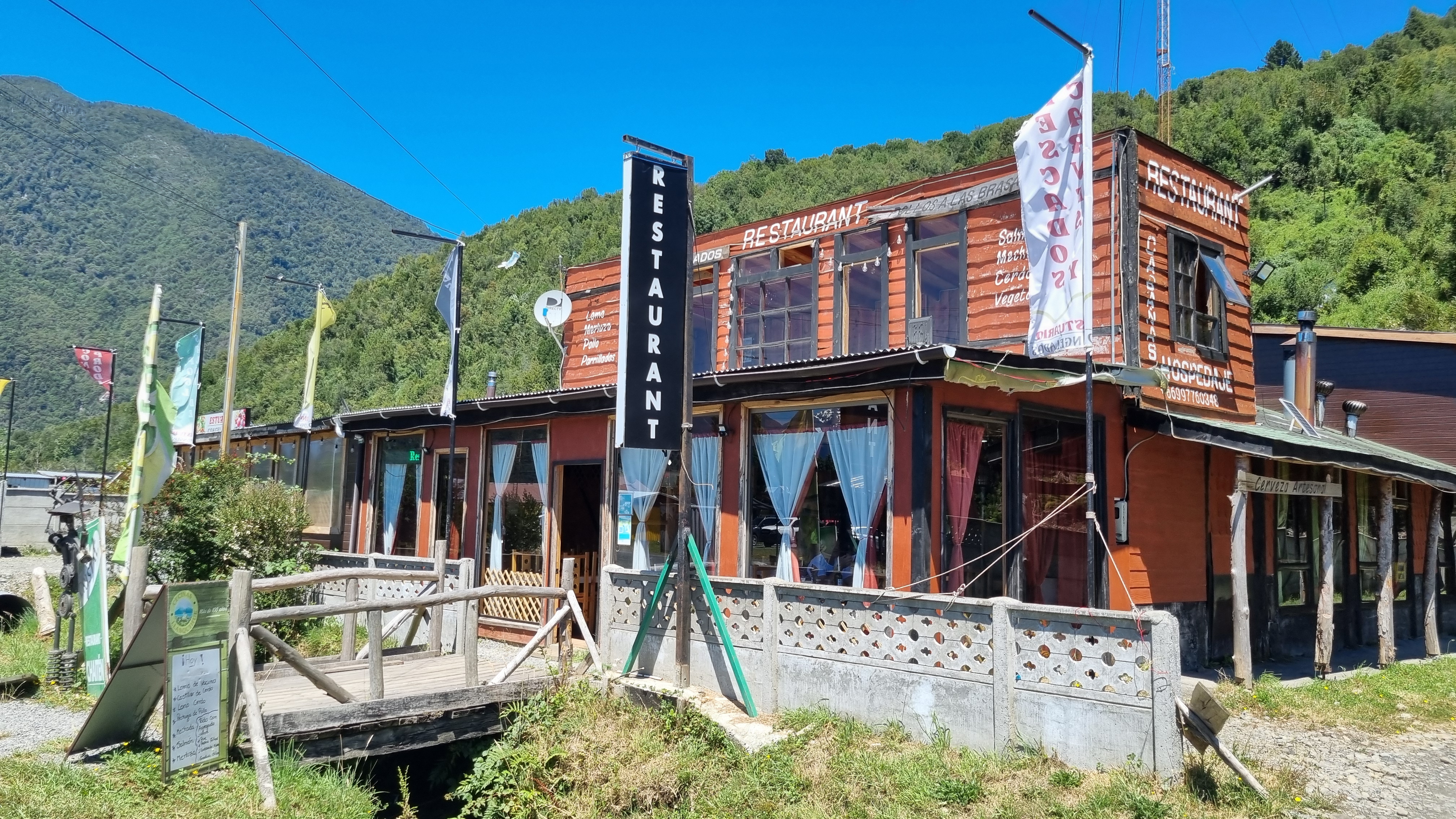 Auf halber Strecke aßen wir im einzigen Restaurant in Puelo zu Mittag. Danach ging es bis zur Fähre über den Fjord „Estero Reloncavi“, den wir meist auf Schotter rund 50 km entlang gefahren waren. Vor der Fährstation sind wir wieder auf die Ruta 7 (Carretera Austral) eingebogen, die wir schon die Wochen zuvor liebgewonnen hatten. Nach der Fähre ging es der Küste entlang, an der sich an einem Samstagnachmittag viele Einheimische tummelten. Der Verkehr war entsprechend. Etwas müde angekommen, nahmen wir im Hotel während des Schreibens noch einen Drink.
