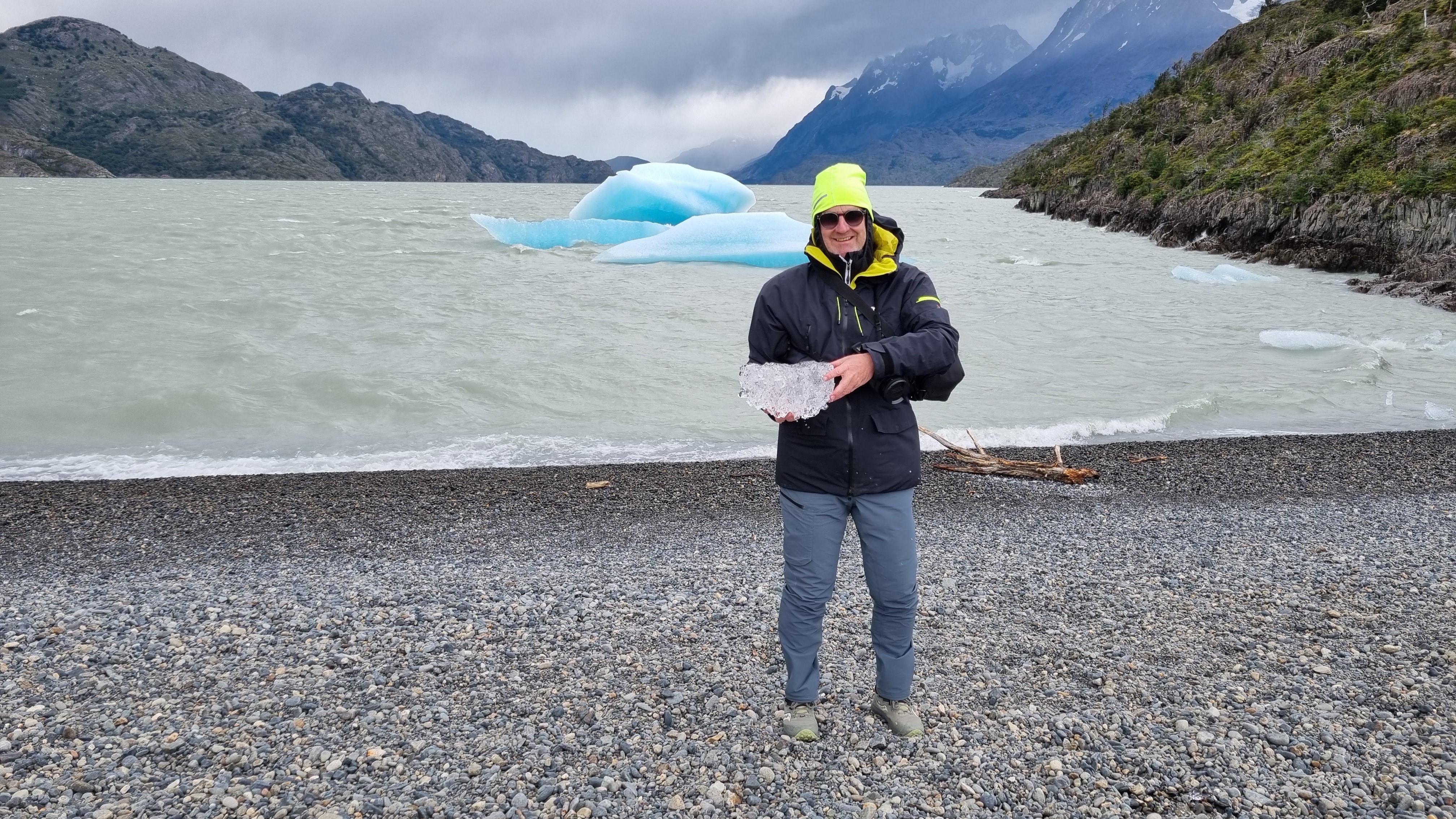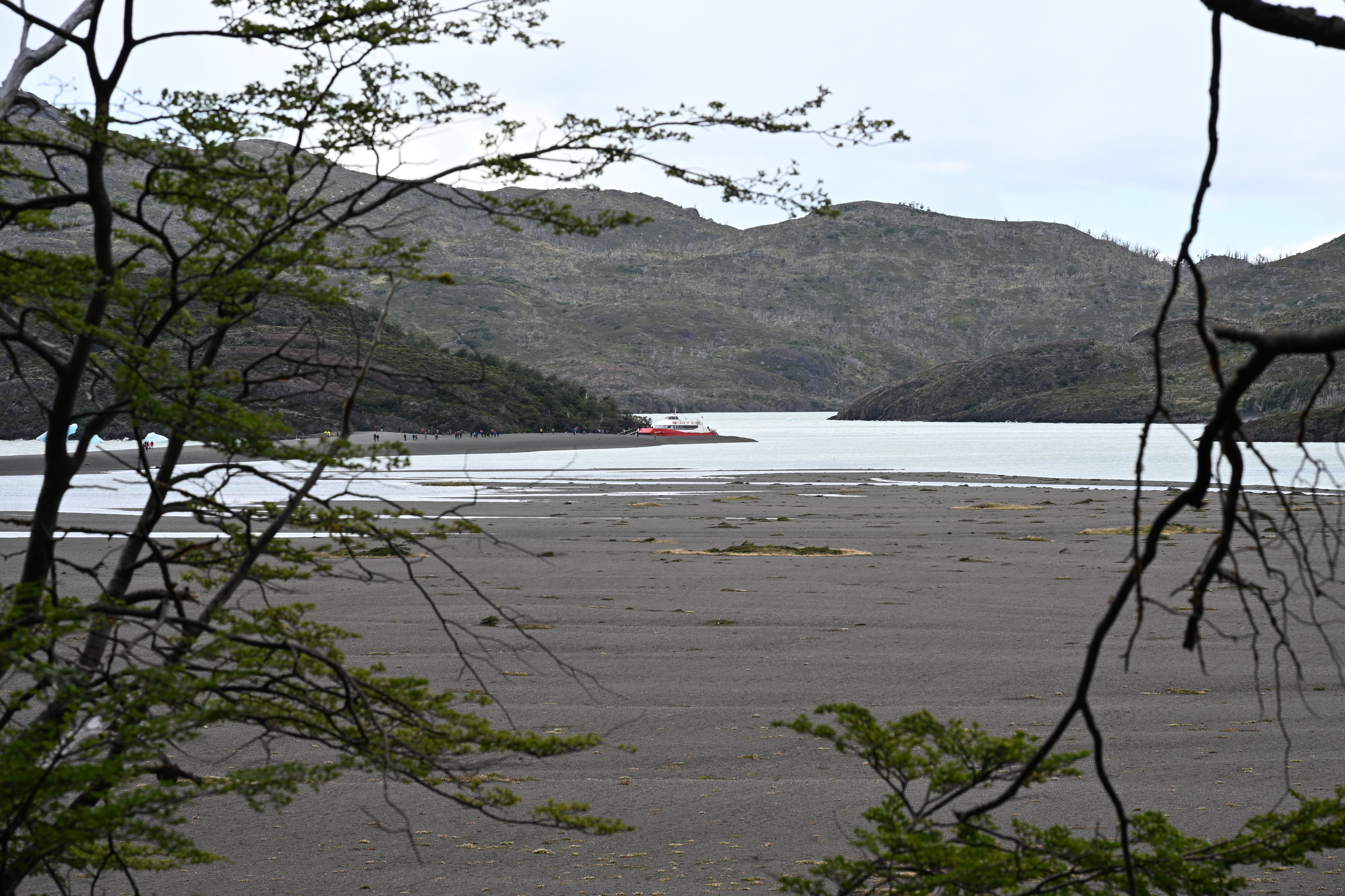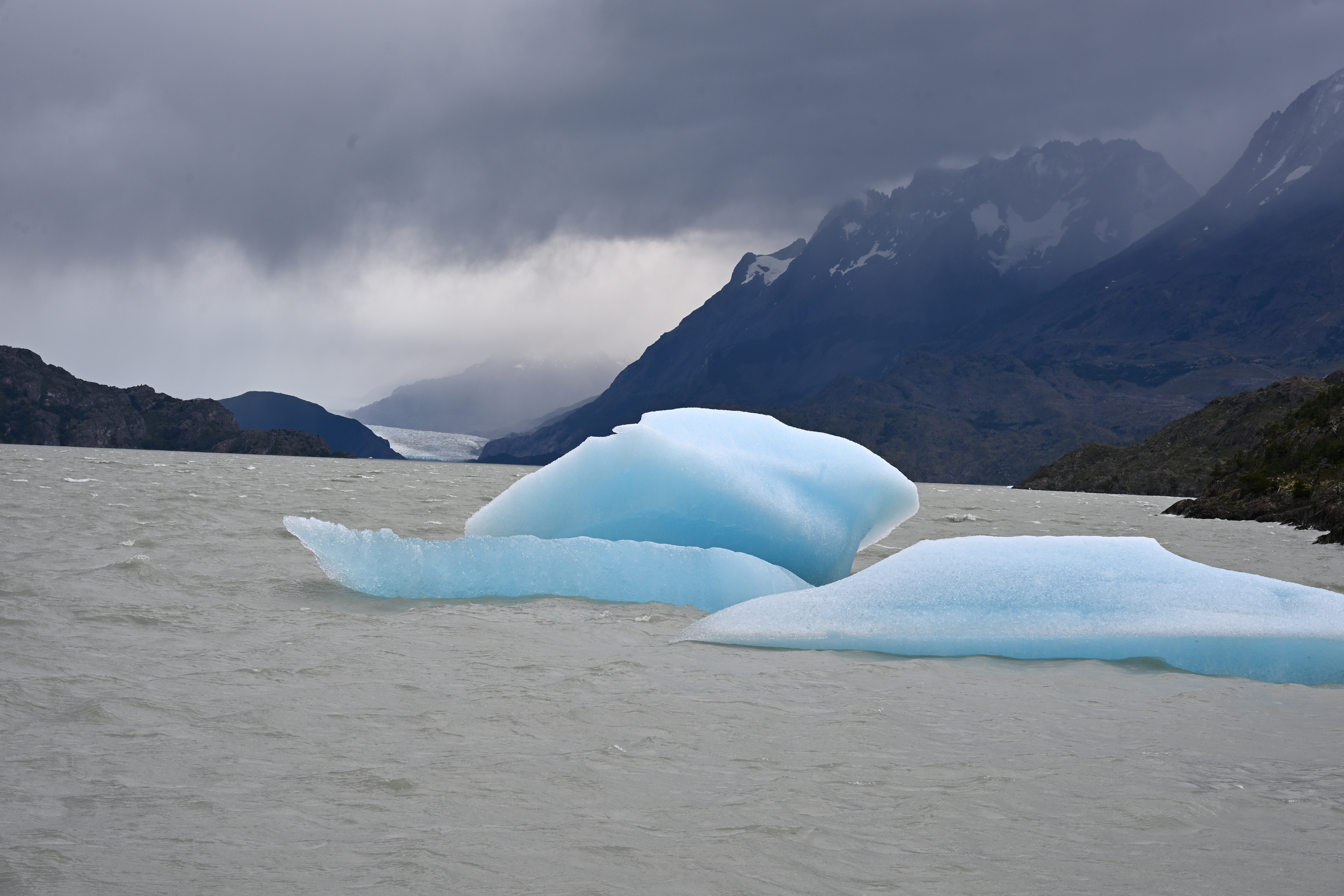 Der Lago Grey ist 16,5 km lang und seine Fläche beträgt rund ein Viertel jener von Graz. Da der Wind in der Regel nach Südosten bläst, treibt es die Gletscherkalbungen an den südlich gelegenen Playa Grey. Von dort starten auch die Bootstouren zum Glacial Grey, der mit zwei Endzungen in den See fließt. Beim Rückweg frischte der Wind etwas auf, sodass der einsetzende Regen waagrecht daherkam und im Gesicht etwas zu beißen anfing. Da sich der Regen stabilisierte, sind wir ohne weiteren Halt zum Hotel zurückgefahren.