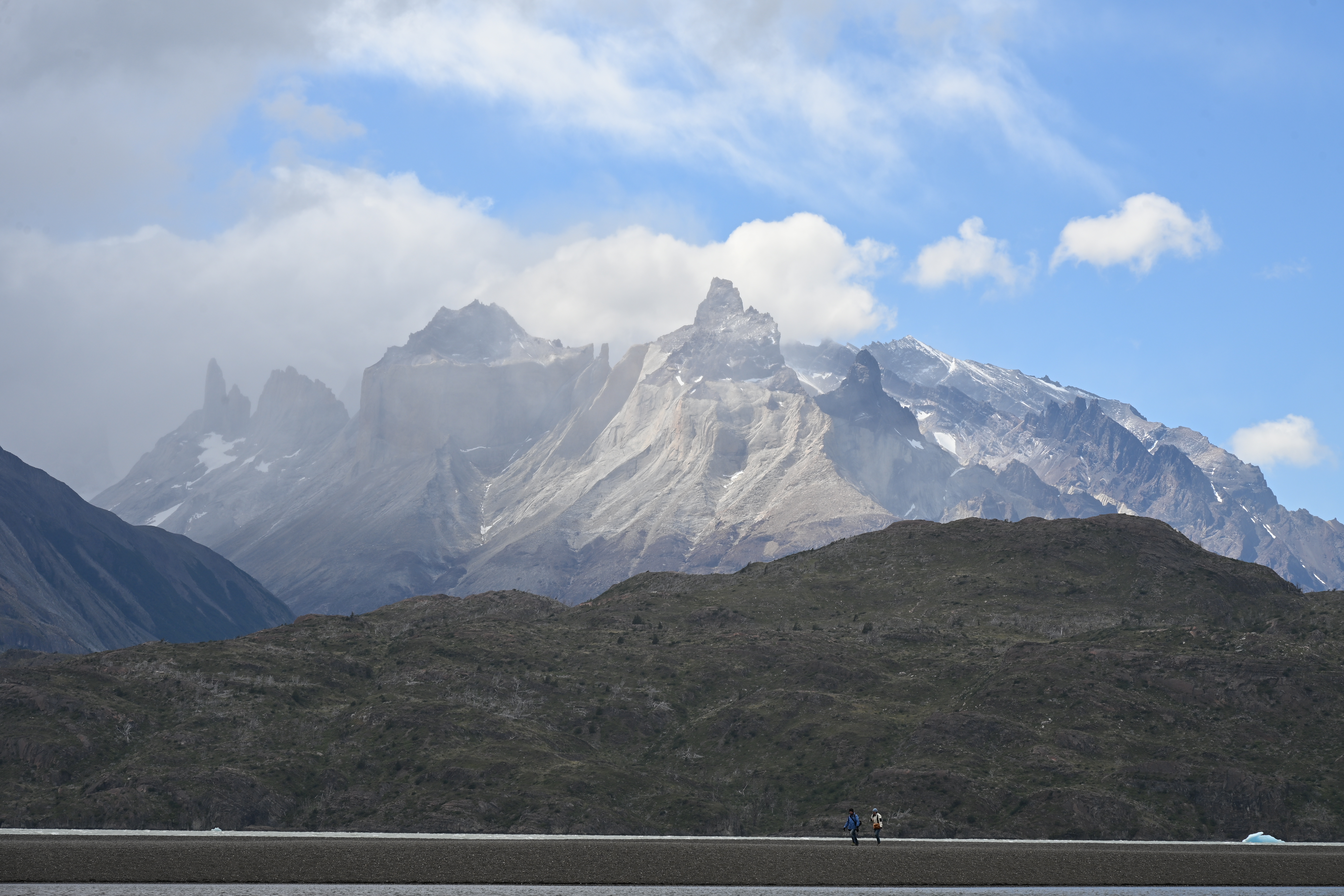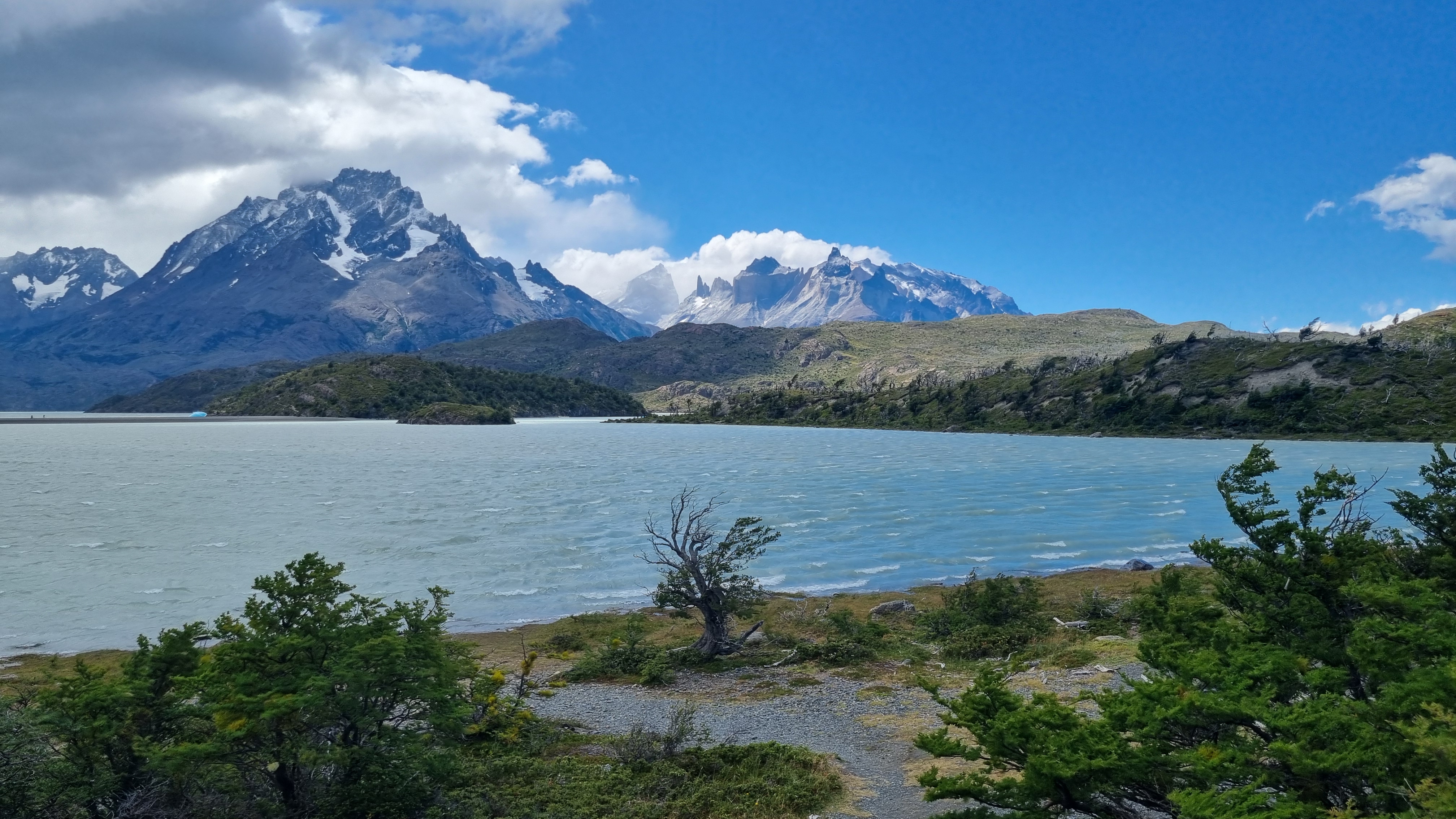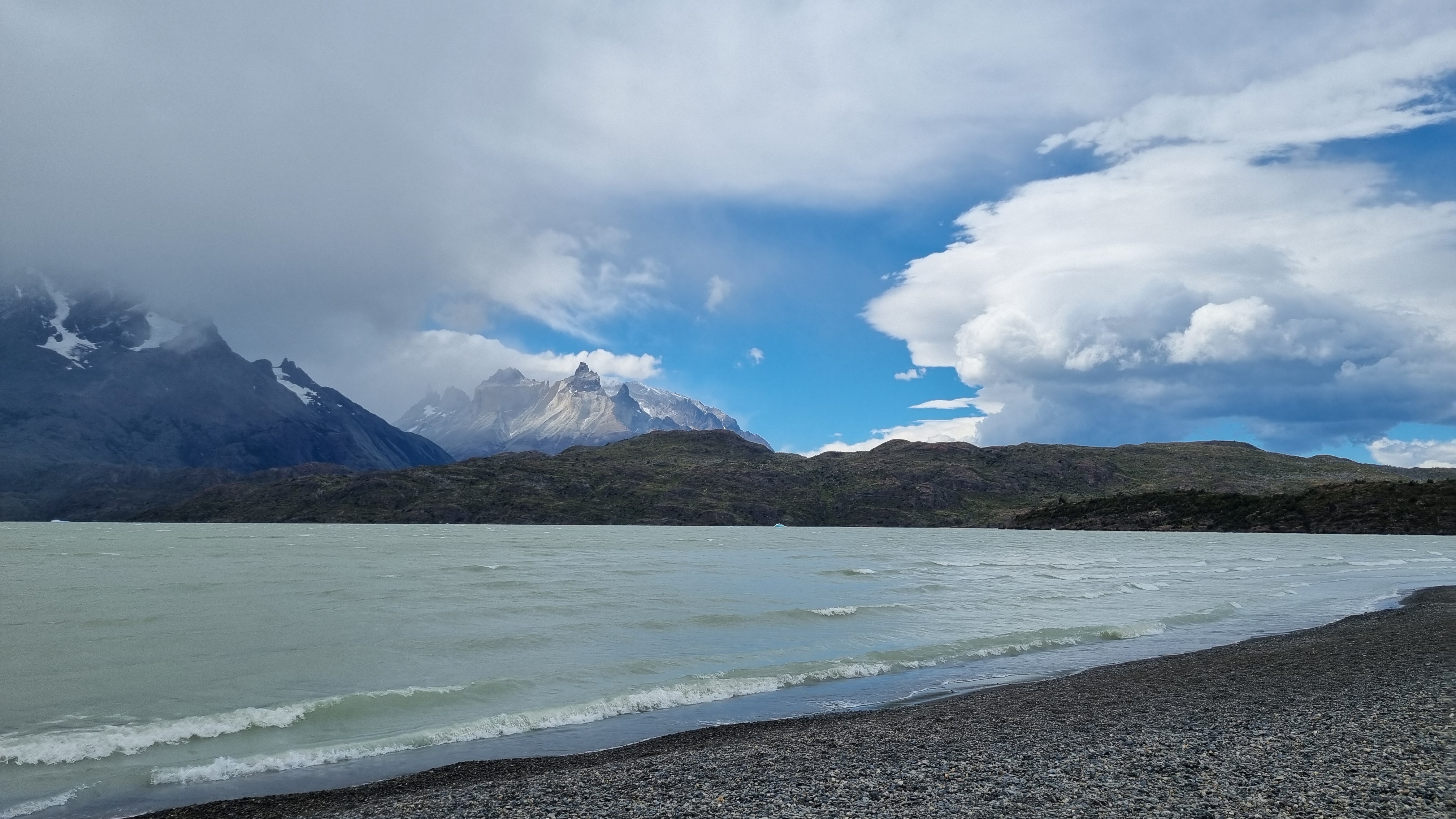 Der Lago Grey ist 16,5 km lang und seine Fläche beträgt rund ein Viertel jener von Graz. Da der Wind in der Regel nach Südosten bläst, treibt es die Gletscherkalbungen an den südlich gelegenen Playa Grey. Von dort starten auch die Bootstouren zum Glacial Grey, der mit zwei Endzungen in den See fließt. Beim Rückweg frischte der Wind etwas auf, sodass der einsetzende Regen waagrecht daherkam und im Gesicht etwas zu beißen anfing. Da sich der Regen stabilisierte, sind wir ohne weiteren Halt zum Hotel zurückgefahren.