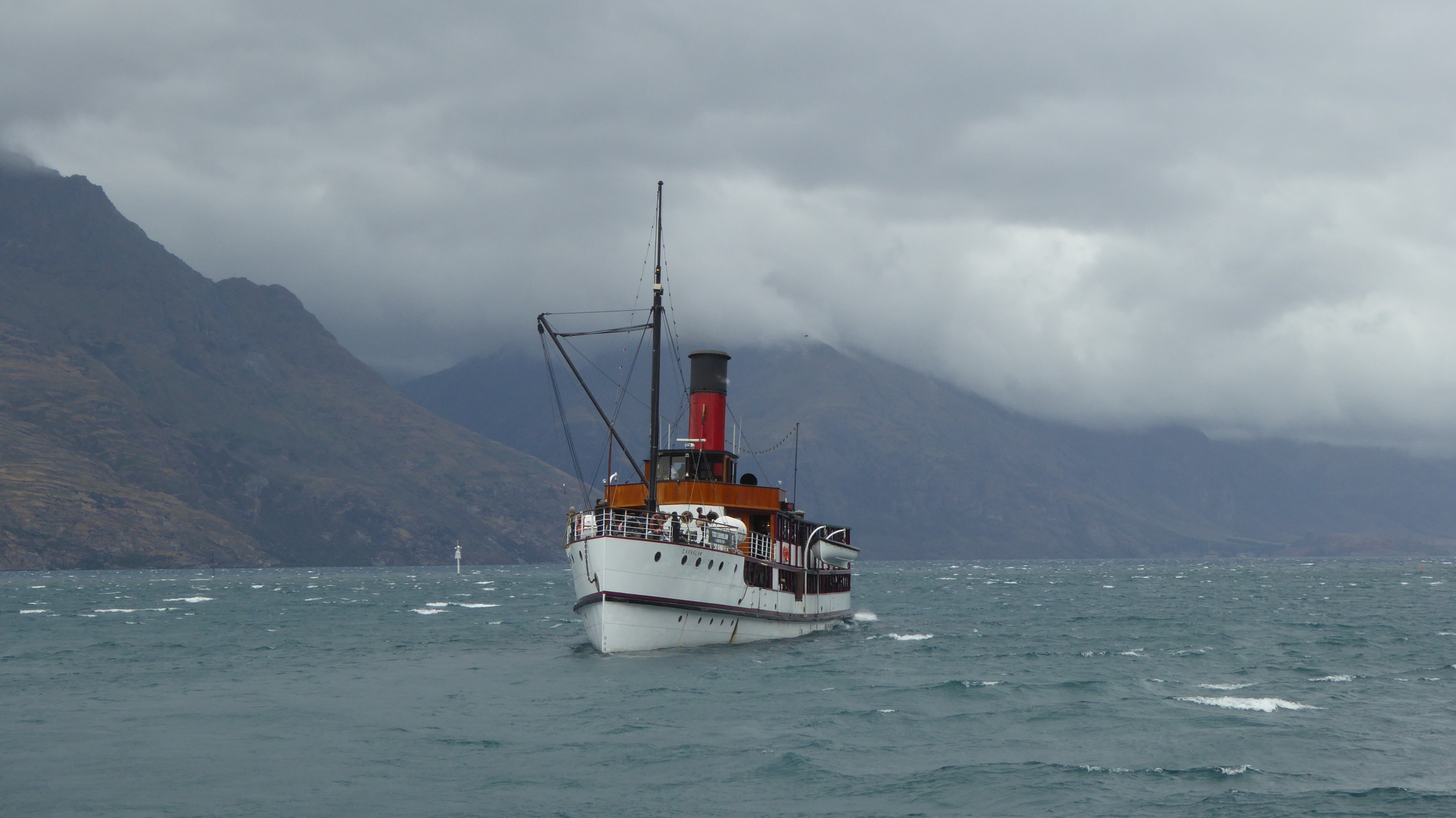 Heute Vormittag ging Helga in den Ort, um ein wenig in den Geschäften zu gustieren. Aber bis auf ein paar Souvenir- und Lebensmittelgeschäften hatte um 9:30 Uhr noch nichts offen (Öffnungszeiten bei vielen Geschäften erst ab 11 Uhr). Da zudem der Wind sehr stark war und es auch nieselte, war für Helga mit dem Gustieren bald Schluss. Die Attraktionen sind hier Ausflugs- und Jetboote, um auf dem See herumzufahren. Am Nachmittag kam aber das schöne, aber nun etwas kühlere Wetter zurück.