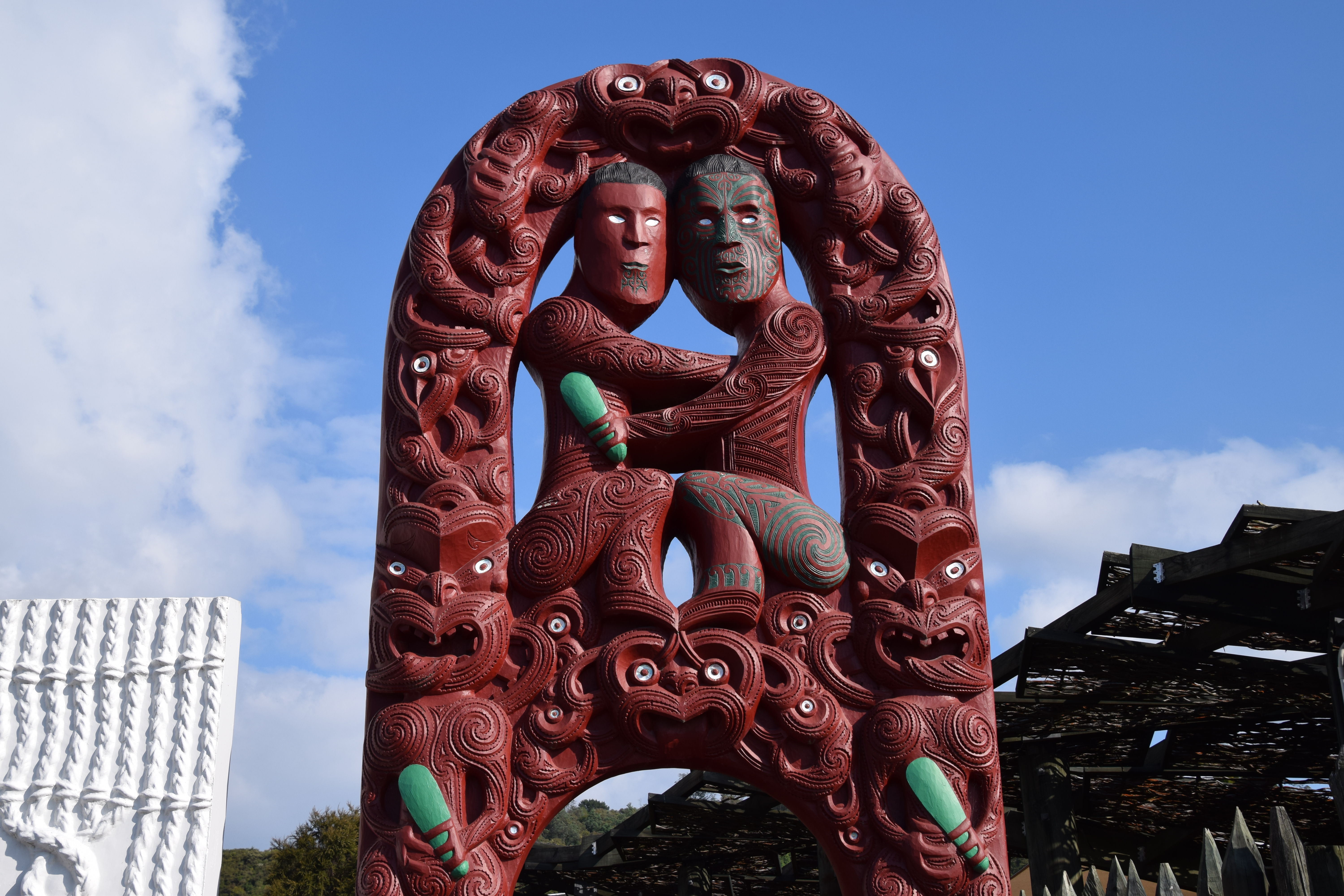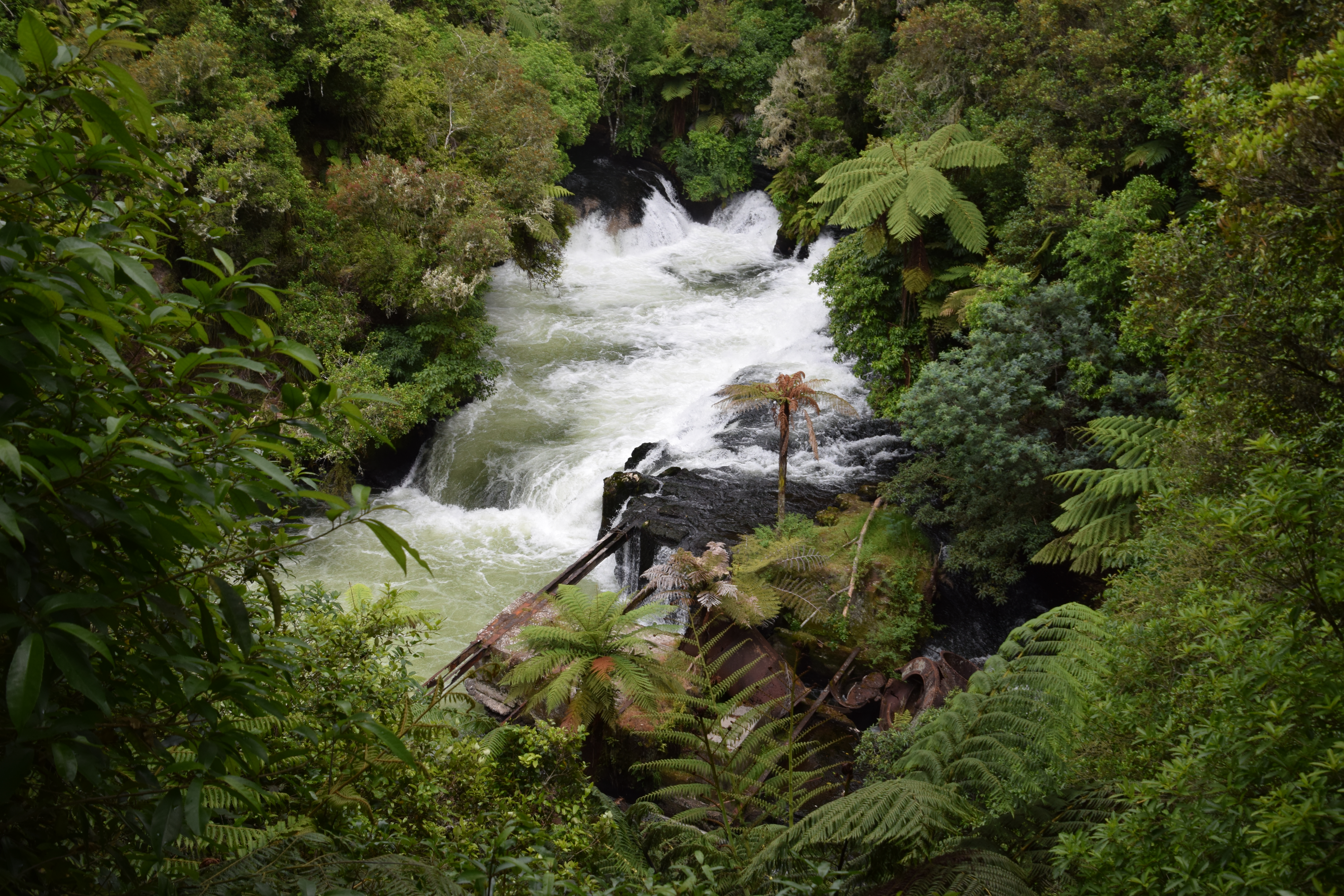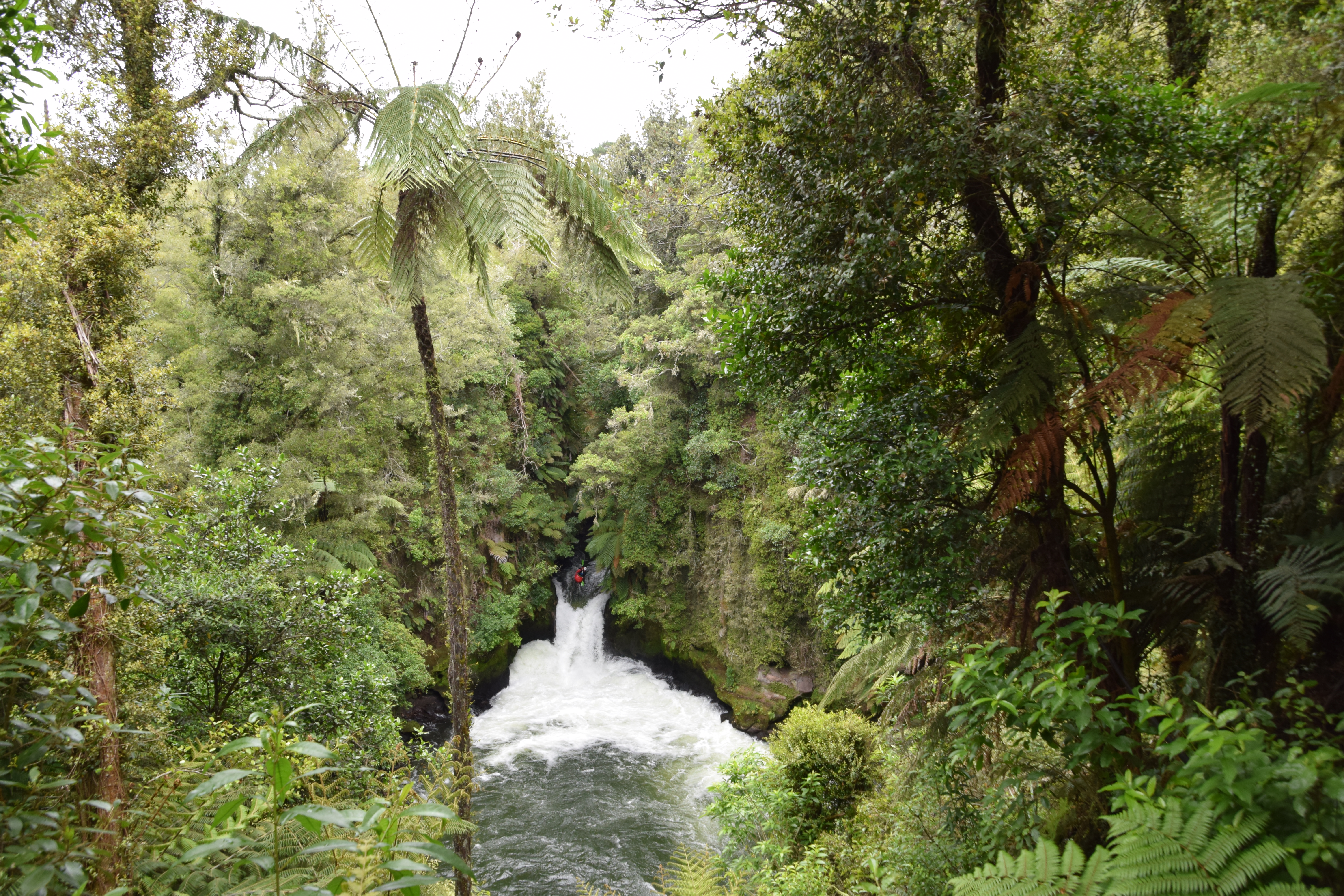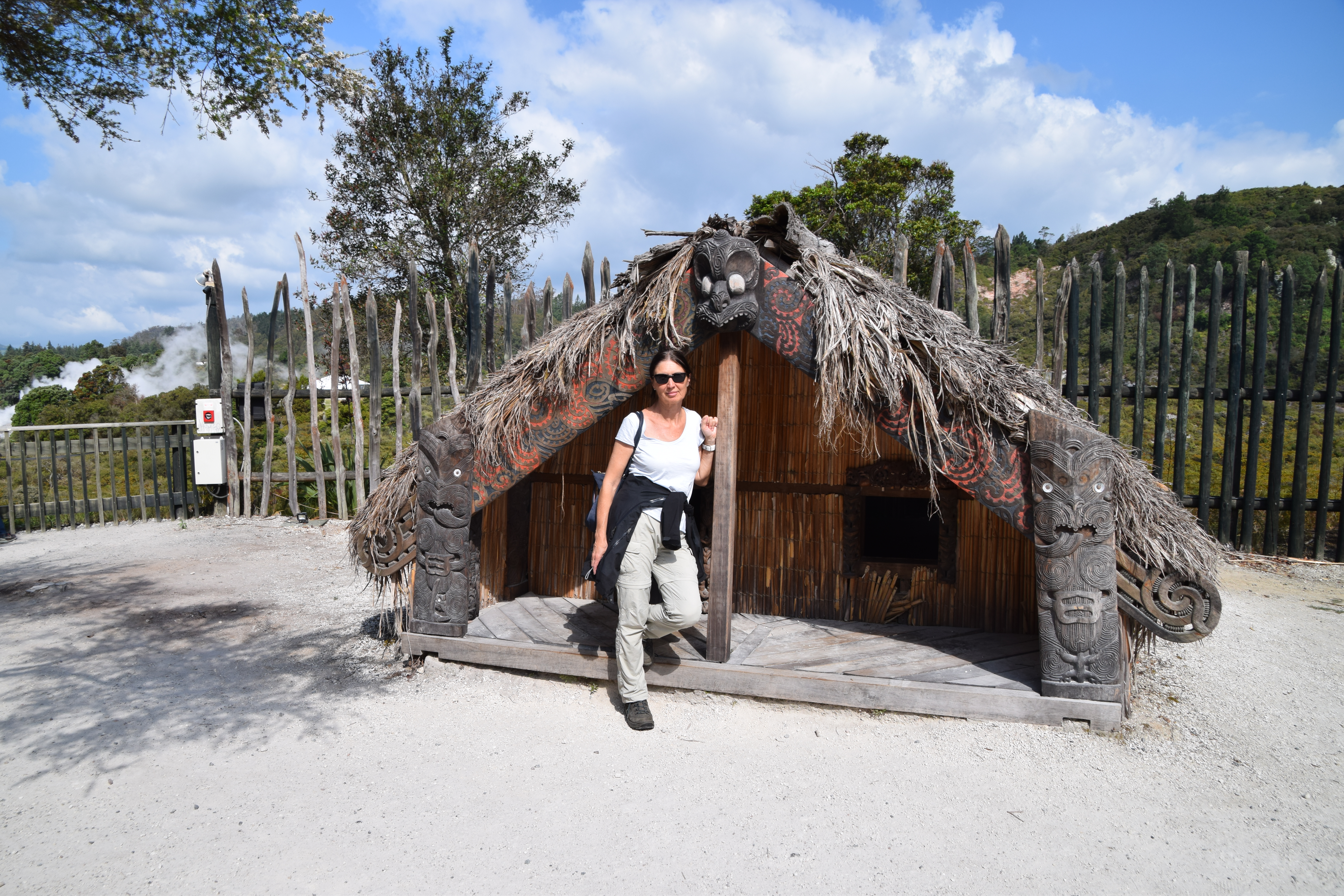 Auf dem Weg nach Rotorua hielten wir dann bei den Okere Falls und marschierten die diversen Aussichtspunkte ab. In Rotorua, dem Touristenzentrum der Nordinsel und in jedem Reiseprospekt als Zwischenstopp enthalten, bezogen wir zunächst unser Quartier, bevor wir Te Puia besuchten. Für 56 NZD pro Person bekommt man eine „leichte“ Einführung in die hiesige Vulkanwelt, mit einem aktiven Geysir und einigen Mud-Pools, sowie ein paar Maori-Bauten. Interessant wäre für uns der Kiwi (Vogel) gewesen, den man ebenfalls sehen sollte. War aber nur ein dunkler Raum (ein Witz). Wenn man den Yellowstone NP oder Island besucht hat, dann ist das alles wenig beeindruckend und sehr teuer. Wir sahen uns alles an und waren bereits nach einer Stunde fertig.
