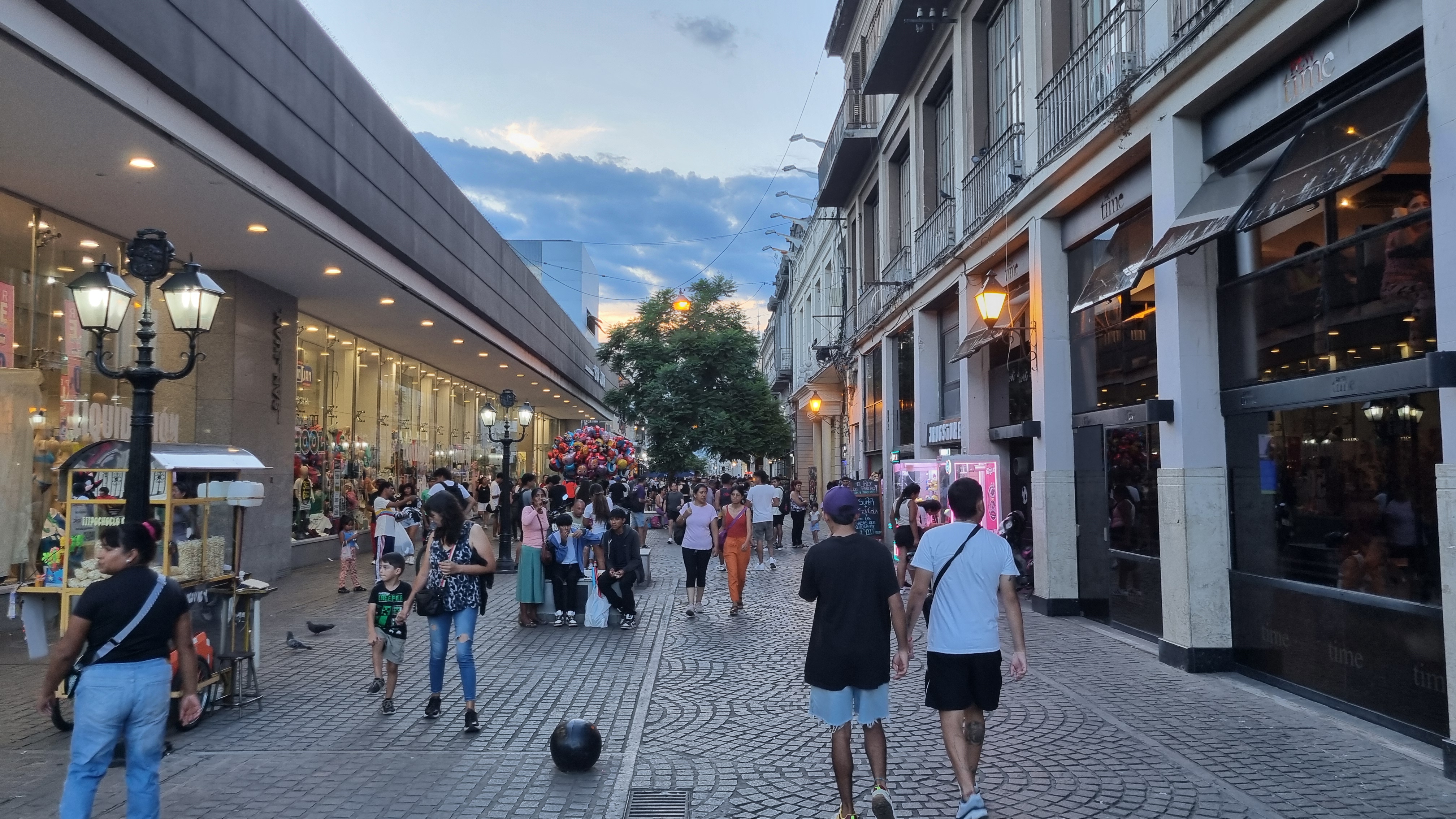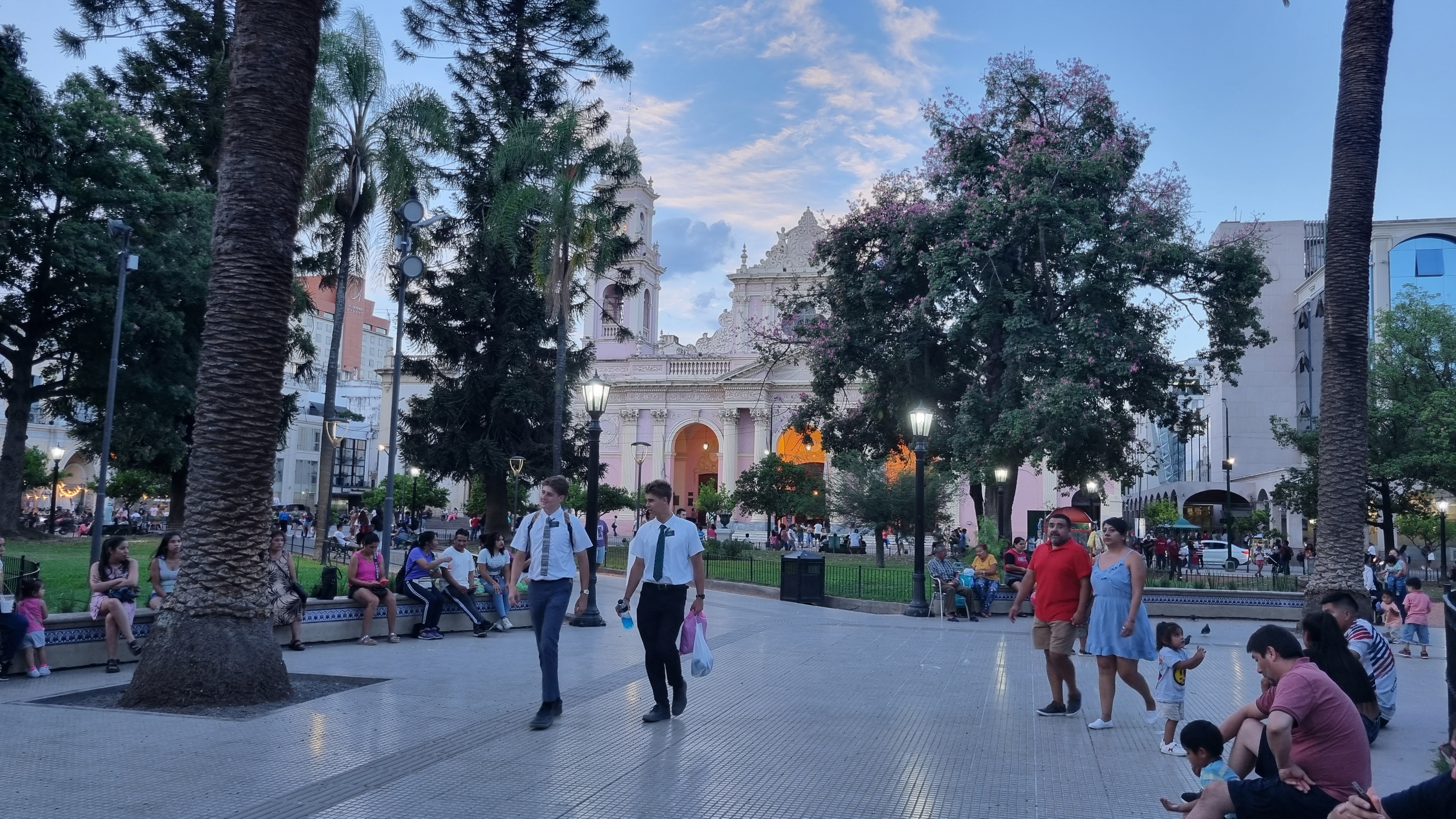 Zum Mittagessen ging es in ein nah gelegenes Hotel, das ein sehr gut bewertetes Restaurant hat. Das Essen war ok, aber nicht außergewöhnlich. Nach einer kurzen Nachmittagsrast stürzten wir uns in das Geschäftsleben im Zentrum. Am späten Nachmittag schien jedermann unterwegs. Helga erstand eine leichte Hose und Stefan füllte seine argentinische SIM-Karte auf. Abschließend genehmigten wir uns am Plaza 9 de Julio noch je einen Drink. Auf und um den Platz gab es allerlei Aufführungen von diversen Straßenkünstlern. Wir hatten 4 verschiedene musikalische Untermalungen. Auf der Caféterrasse spielten sie volkstümliche Musik, links von uns wurde Michael Jackson imitiert, rechts von uns wurde norte soy getanzt und direkt vor uns flötete eine argentinischer Nachkomme von Gheorghe Zamfir.
