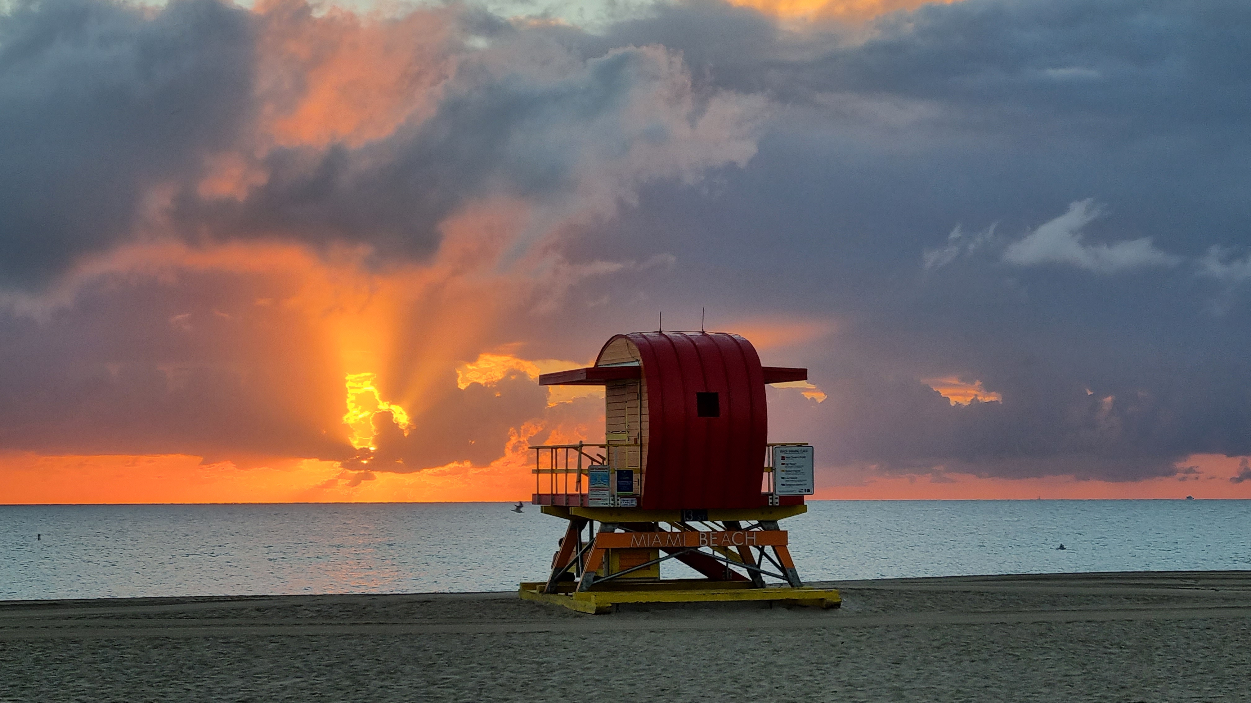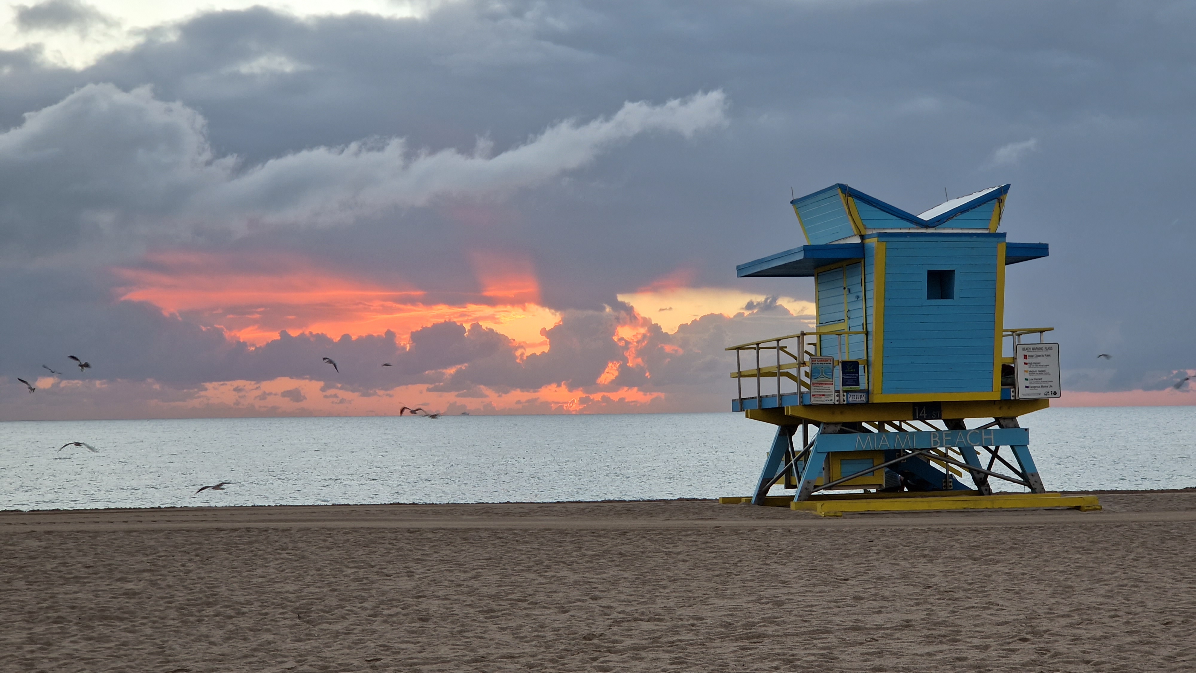 Da das Wetter perfekt angesagt war, begannen wir unseren letzten Tag bei Sonnenaufgang am South Beach. Entgegen der Vorhersage war es aber sehr wolkig. Zumindest sahen wir, wie in der Früh der Strand ähnlich einer Schipiste präpariert wird.