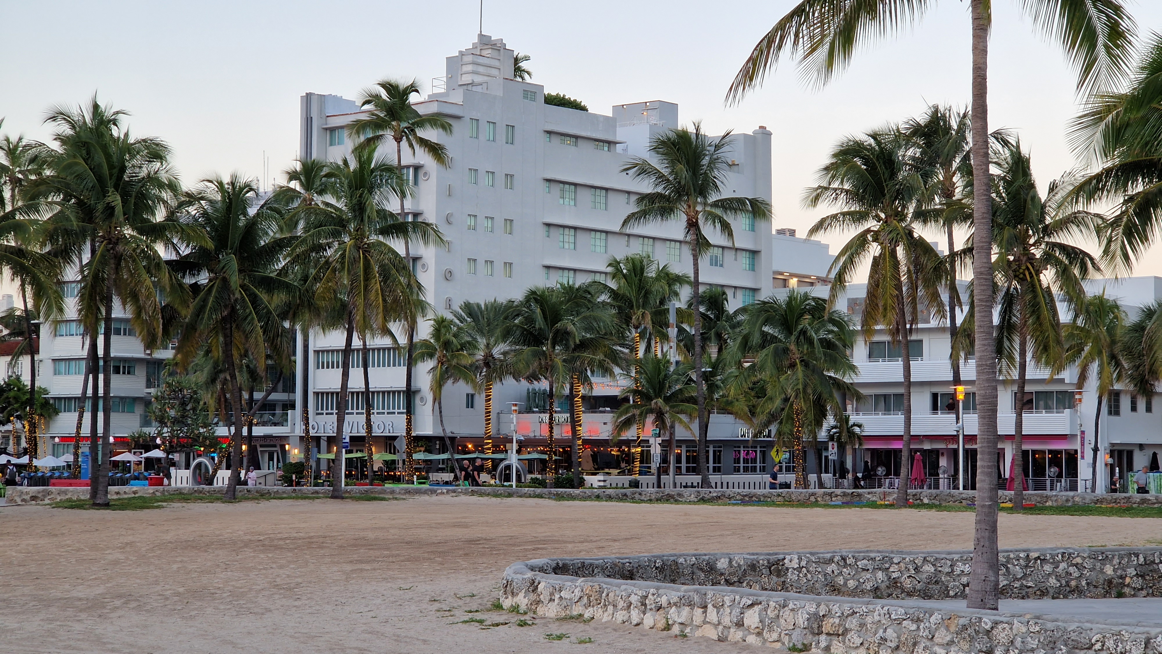 Wir wechselten auf das Pool-Deck am Dach unseres Hotels, das als einziges Hotel in der Umgebung das Aufspannen der Schirme gestattete. Am Pool-Deck des benachbarten und 4-mal so teuren The Betsy Hotel war es beispielsweise nicht erlaubt.