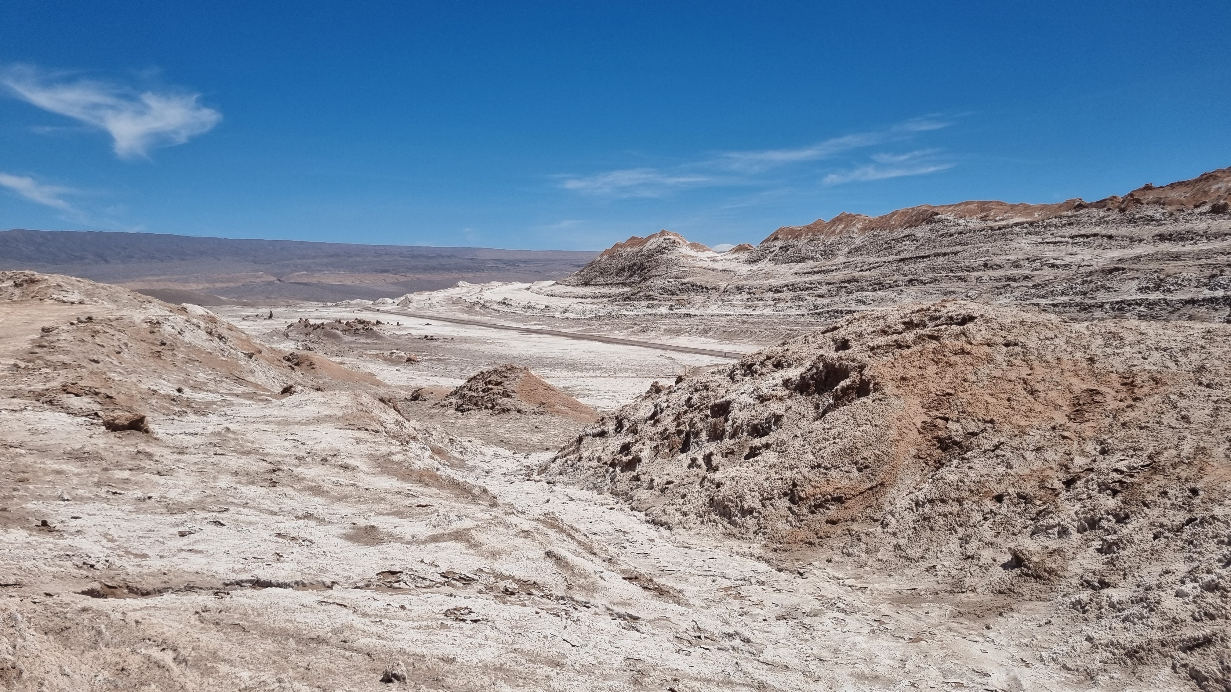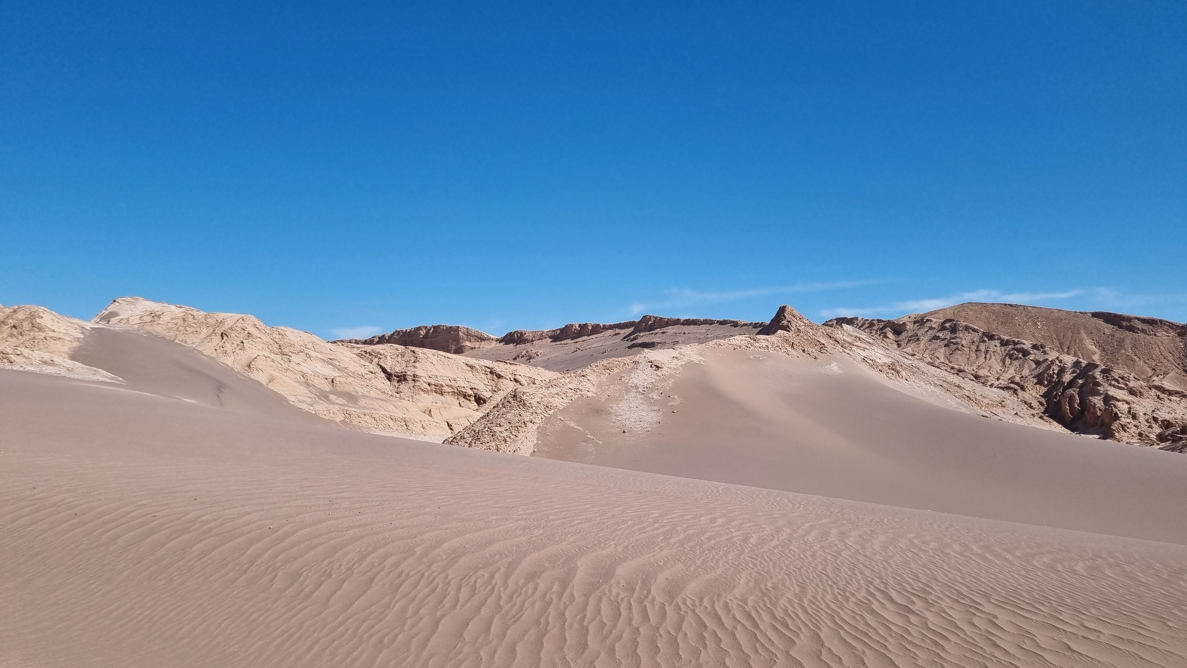 Nach Ausschlafen und gemütlichem Frühstück machten wir uns auf den Weg ins „Valle de la Luna“. Den Eintritt zum Besuch der „Mondlandschaft“ konnten wir vor Ort mittels Kreditkarte bezahlen. In der Früh hatte es noch angenehme 16 Grad. Mit mäßigem Wind war es auch in der Sonne noch angenehm. Es gab insgesamt vier Aussichtspunkte mit Wanderwegen von maximal 1 Stunde: eine große Düne, eine Felsformation „Anfiteatro“, Salzminen und die „Tres Marias“ (Skulpturen, die der Regen aus den Sedimentfelsen formt – durch Auswaschen von Gibs und Halit).