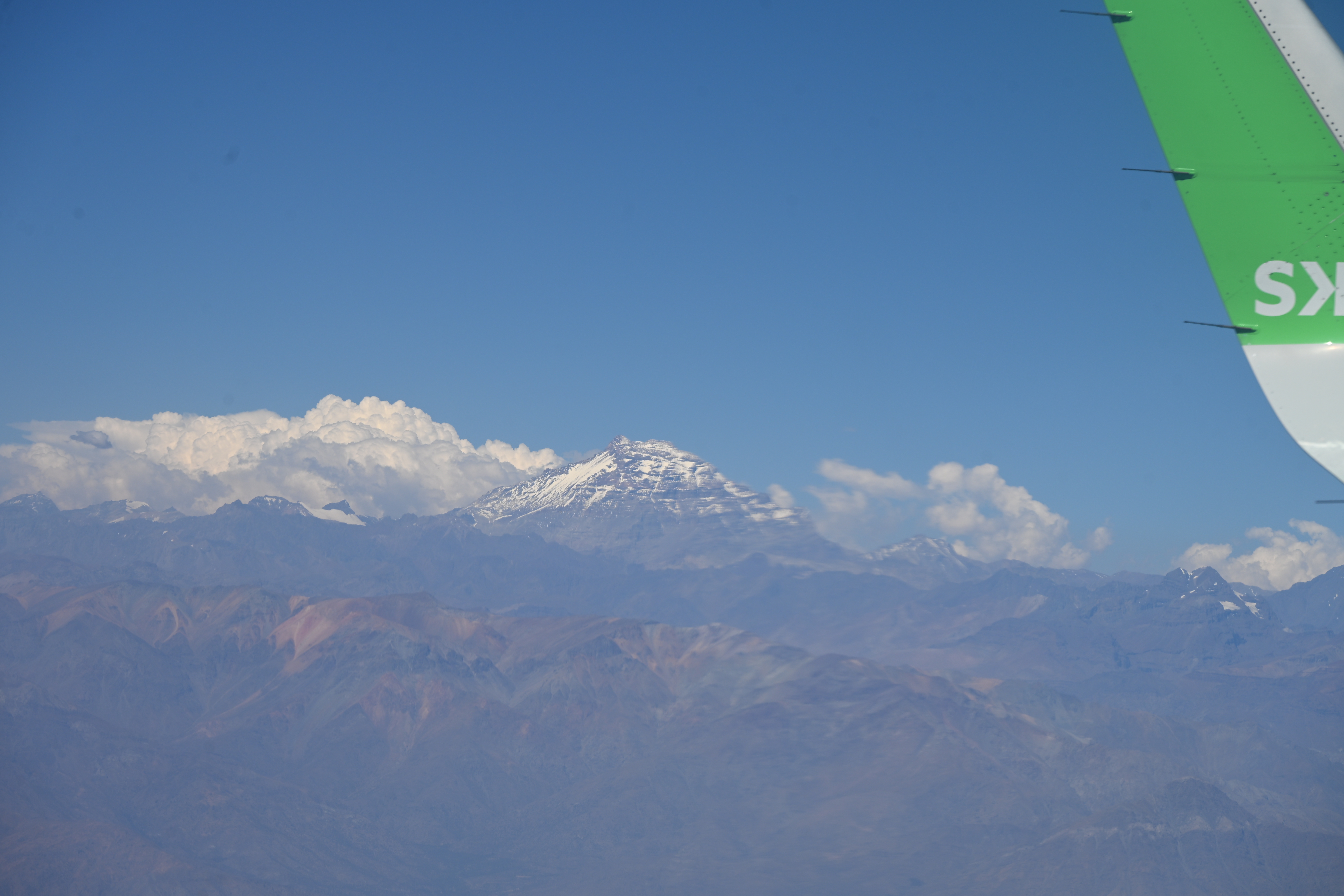 Mit dem Subaru haben wir in 5 Tagen 1.119 km zurückgelegt. Der Verbrauch betrug 8,1 l/100km. Der Flug von Calama nach Santiago de Chile verlief ruhig. Stefan fotografierte den Acongagua, den höchsten Berg Amerikas. Er liegt in der Provinz Mendoza in Argentinien. Der höchste Berg Chile Ojos del Salado, etwas weiter nördlich, war leider hinter Wolken versteckt.