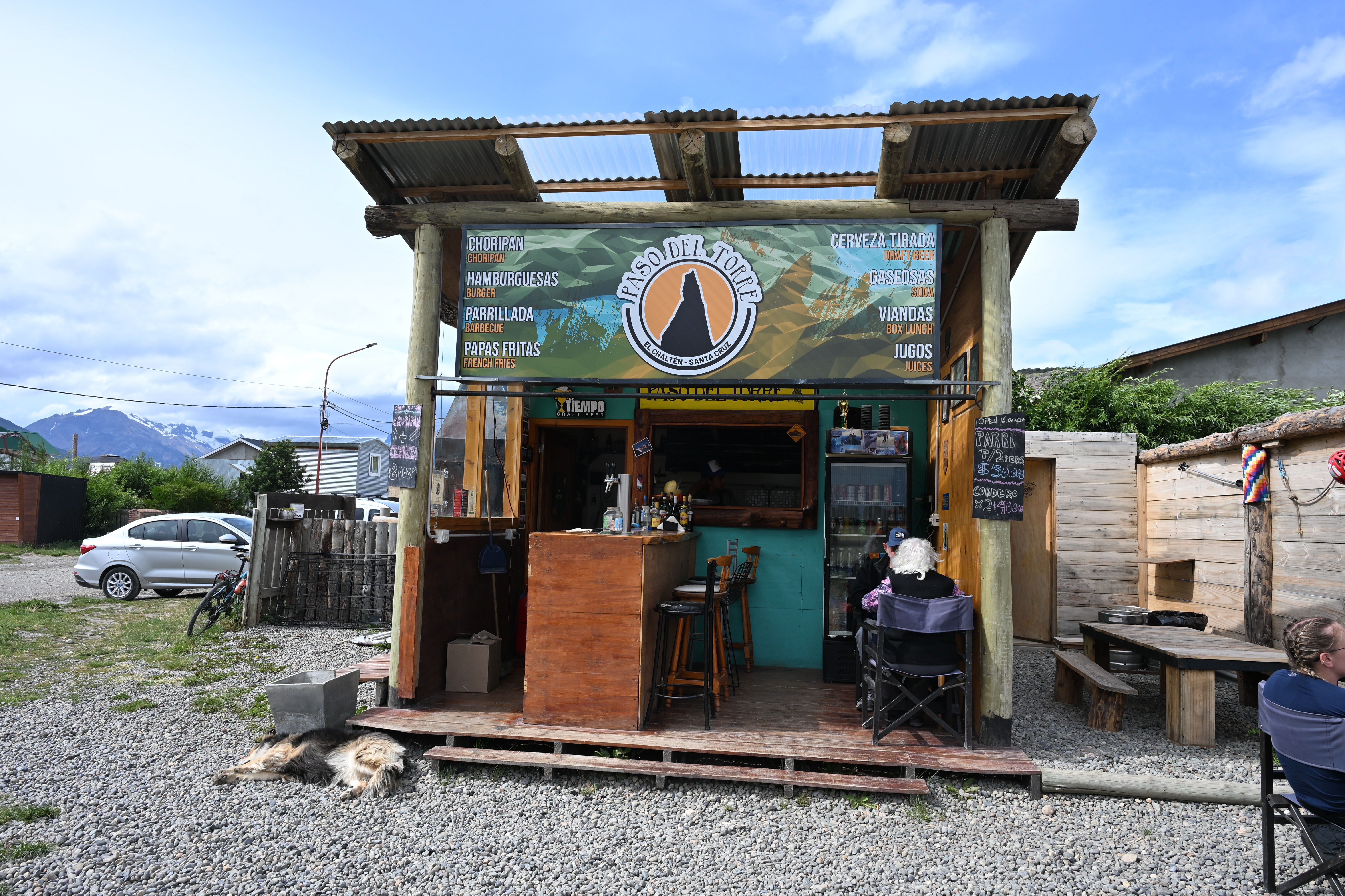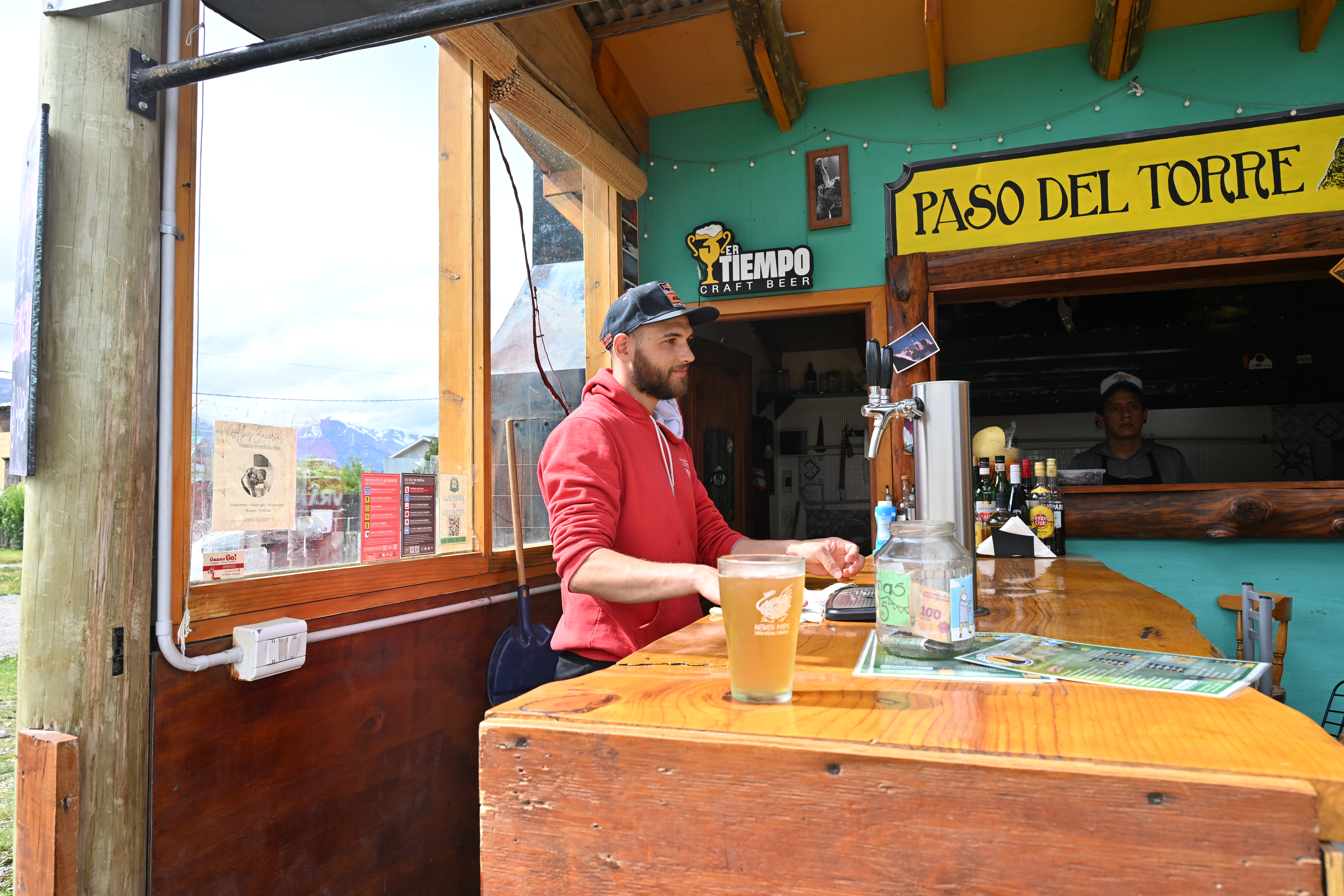 Der Wind am Rand der Laguna war enorm. Die Videos sind daher nur laut und bieten optisch wenig. In der 5 km langen Ebene zwischen den Endmuränen war es fast windstill und sonnig. Hin und wieder spürte man ein paar vom Cerro Torre gewehte Regentropfen. Im Ort selbst begrüßte Stefan nach wenigen Metern das Paso del Torre mit einem frisch gezapften Bier. So müssen Wanderwege angelegt werden! Die restlichen Meter zum Hotel waren dafür schwierig, da der angekündigte Sturm schon gut unterwegs war und ich, wie immer, Gegenwind, diesmal garniert mit Staub, hatte.