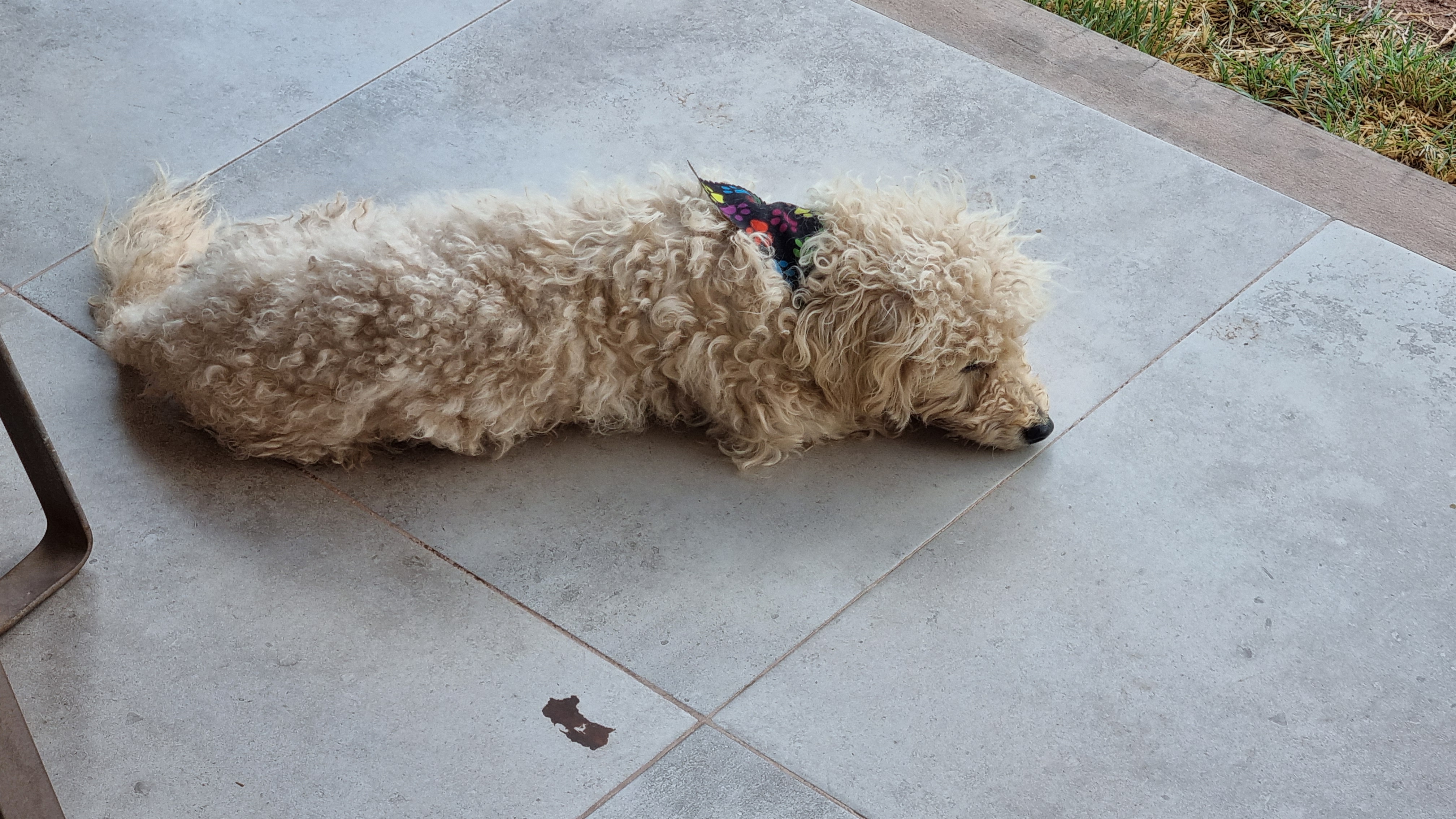 Nach dem Frühstück bekamen wir noch einen netten Besuch. Der kleine, sehr freundliche Hund (es gibt grundsätzlich keine unfreundlichen Hunde in Argentinien oder Chile) genehmigte sich nach der Begrüßung ein kleines Nickerchen auf unserer Terrasse. Sobald man in auch nur anschaute, wedelte er mit dem Schwanz. Um 9 Uhr starteten wir in unsere letzte größere Etappe nach Mendoza.