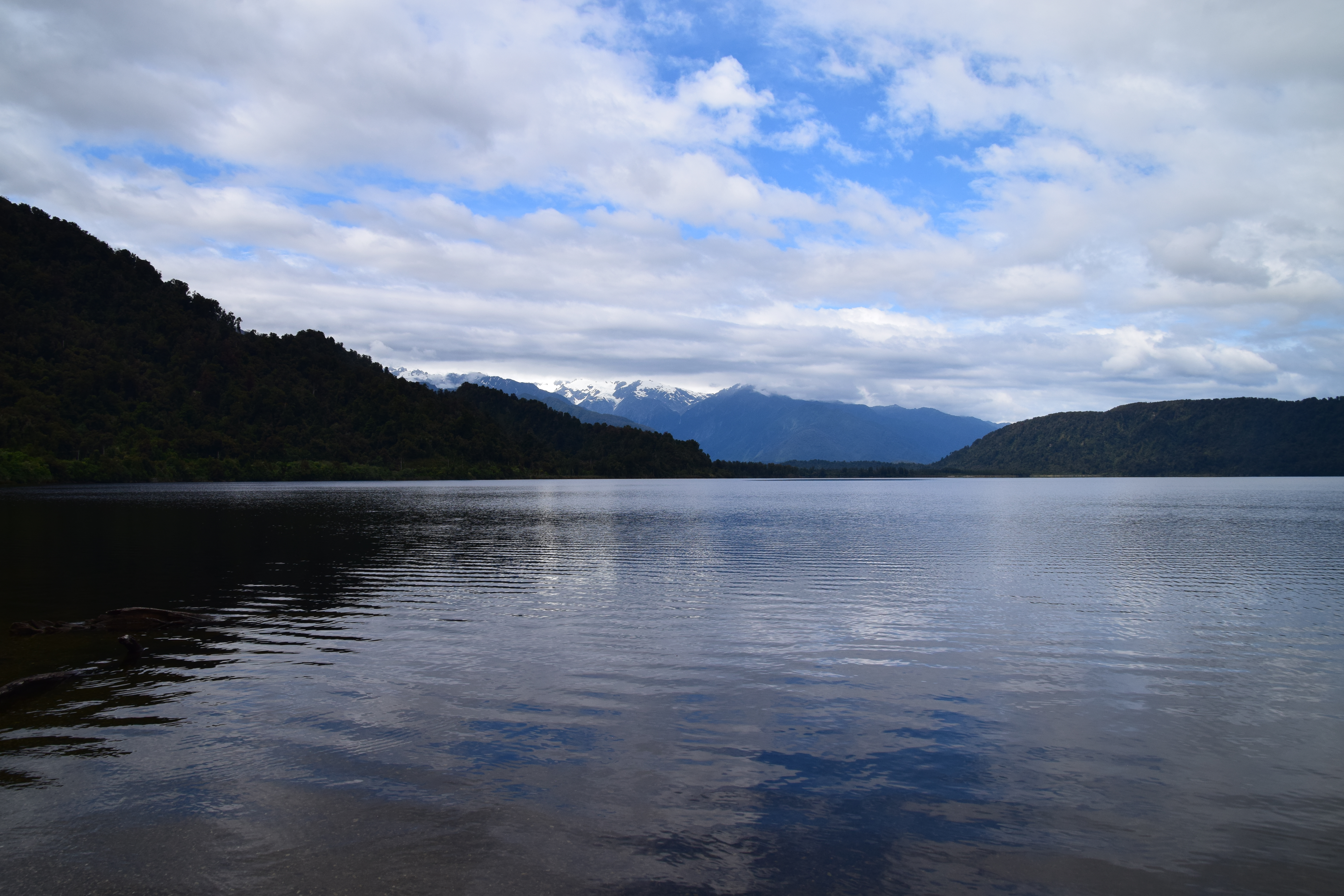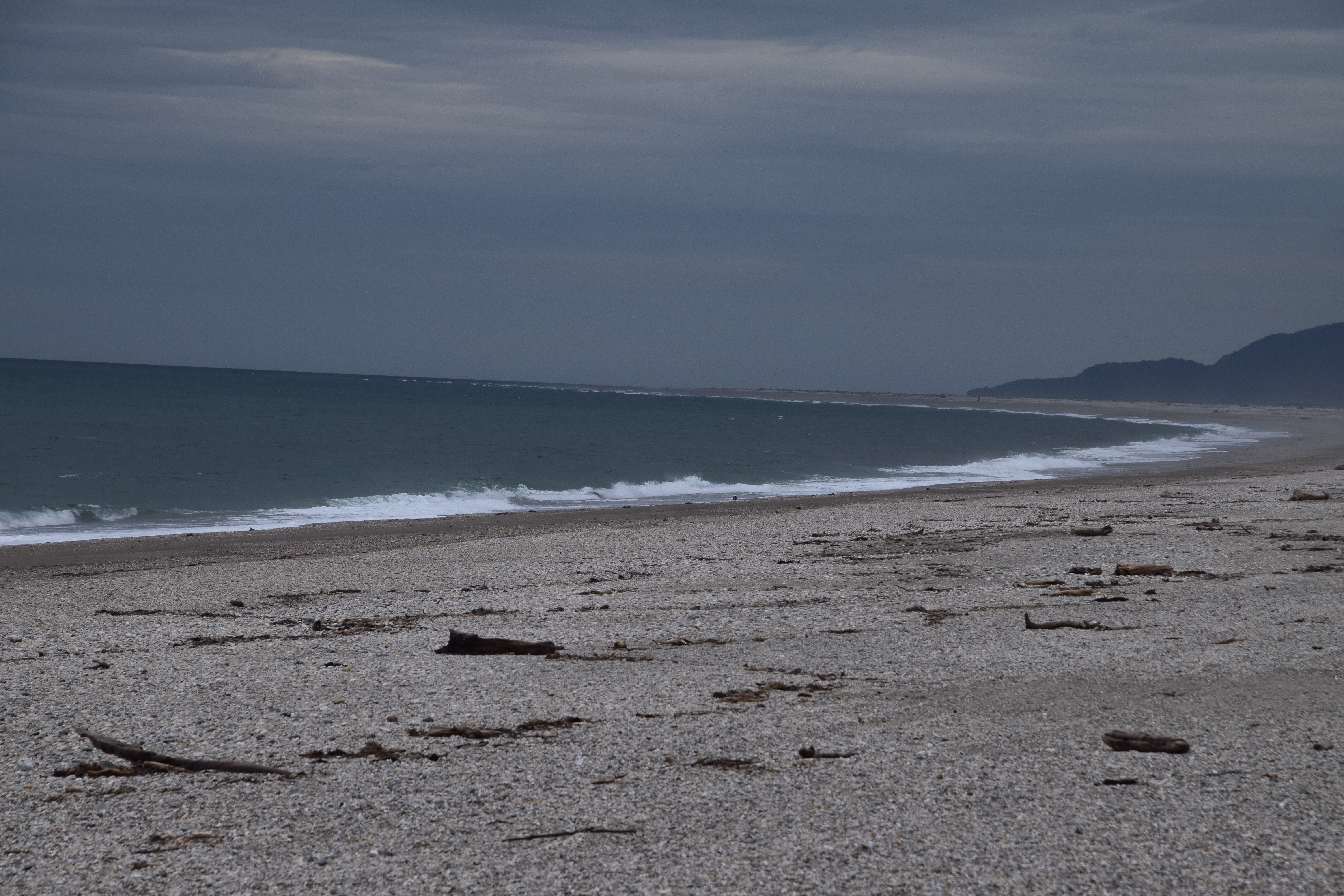 Auf dem Weg zu unserem heutigen Etappenziel in Haast lag noch der Lake Moeraki, der für seine weißen Kraniche berühmt sein soll. Es begann gerade zu regnen und einen geeigneten Parkplatz mit Blick auf den See fanden wir auch nicht. Es gibt noch einen 1,5 Stunden Trail zum Meer, wo es eine Pinguin-Kolonie geben soll. Wir vermuteten, dass sich die Tiere bei diesem Wetter sicher wieder verstecken und ließen es bleiben. Vor dem Abendessen machten wir noch einen Abstecher zum Haast Beach, wo am kilometerlangen Strand ein einsamer Angler sein Abendessen zu fangen versuchte.