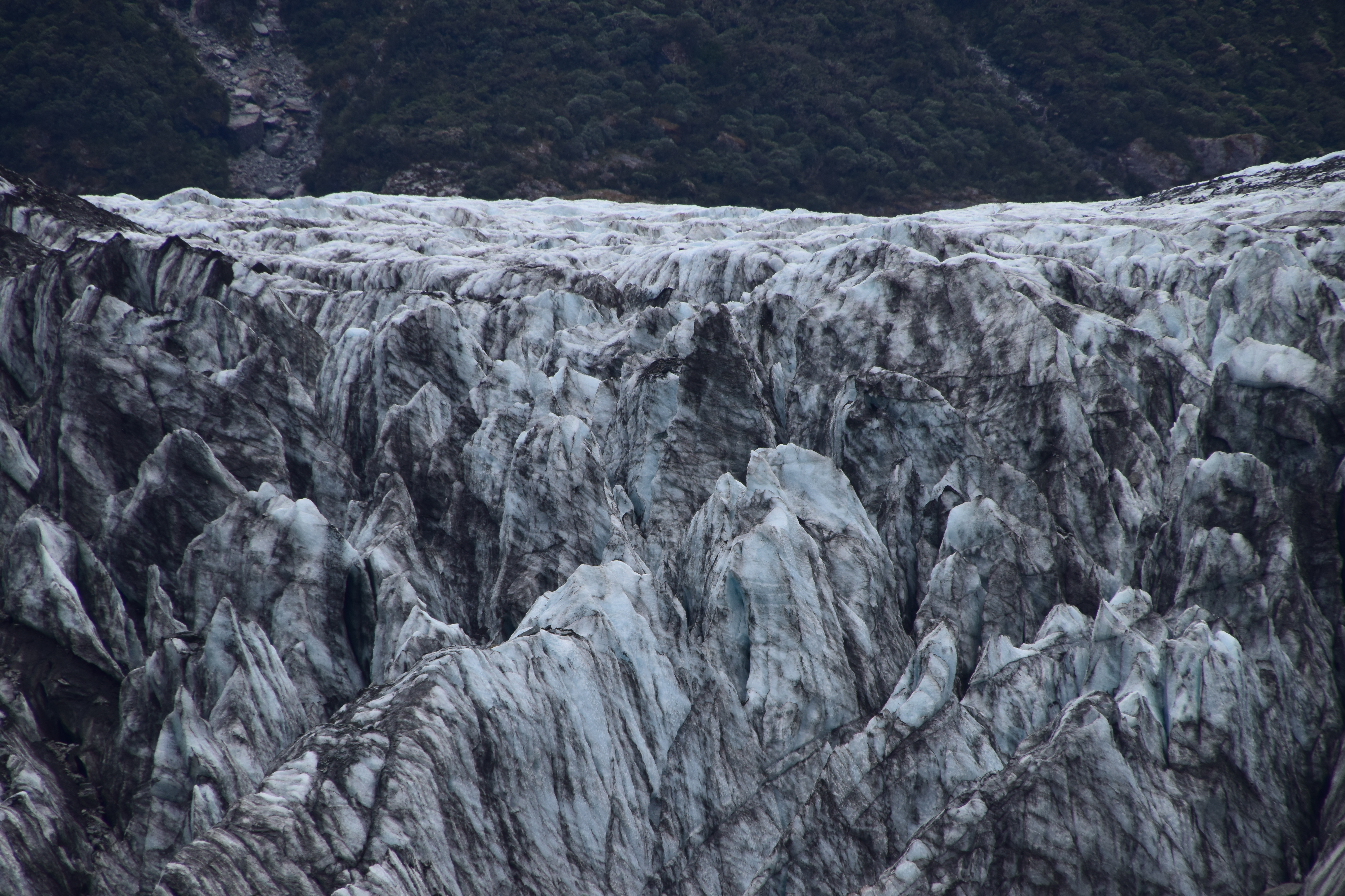 In Fox Glacier (Ort) fuhren wir zuerst zum Lake Matheson, um dort eine kleine Wanderung zu machen; dieser See bietet einen sehr schönen Blick auf die Berge (bei entsprechendem Wetter soll es auch eine Spiegelung des Mount Cook geben). Im Ort gönnten wir uns eine kleine Pause bei Fish&Chips, bevor wir dann die 1-stündige Wanderung zum Fox Glacier Terminal Face machten. Laut der tagesaktuellen Angabe zu Beginn des Walks kommt man bis auf 450 Meter an den Gletscher heran. Entgegen unseren Erfahrungen aus Norwegen, sind die Gletscherendzungen aber sehr grau bis schwarz, da sie von Steinen und Staub bedeckt sind.